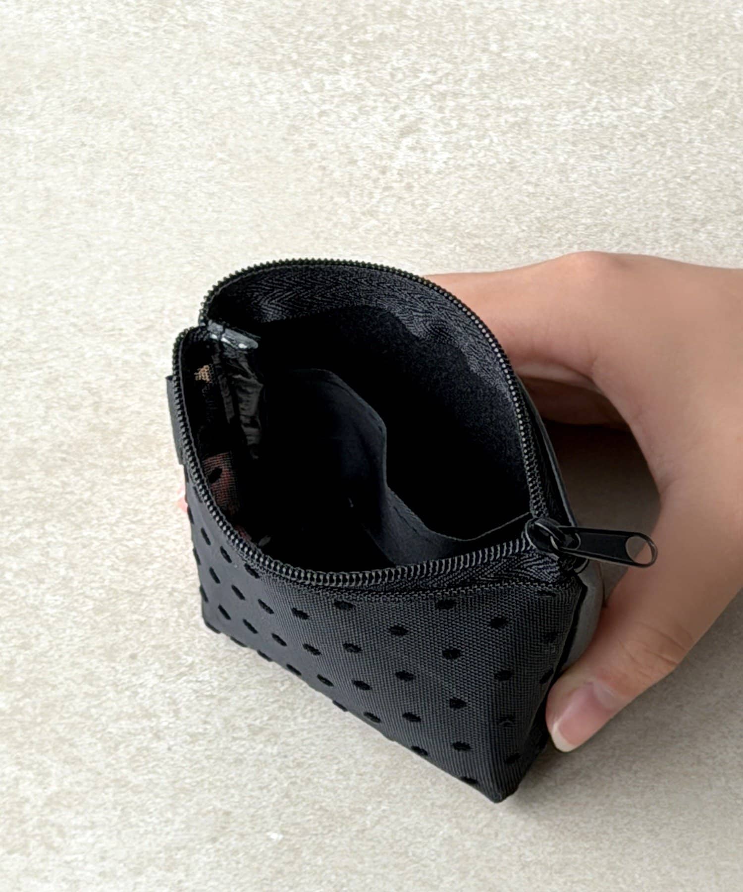 ●メッシュ素材で見やすく、中の物が迷子になりにくい◎