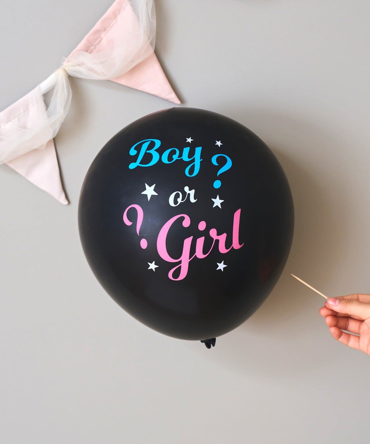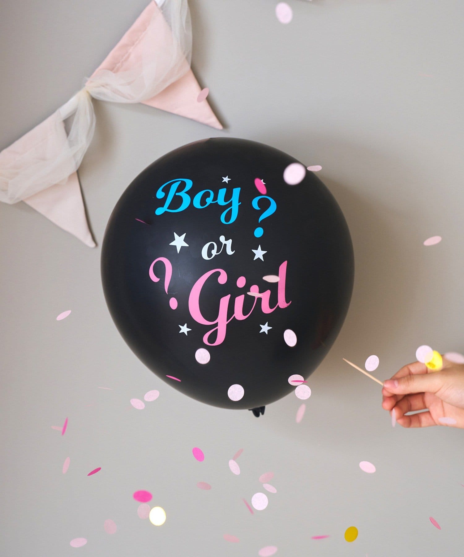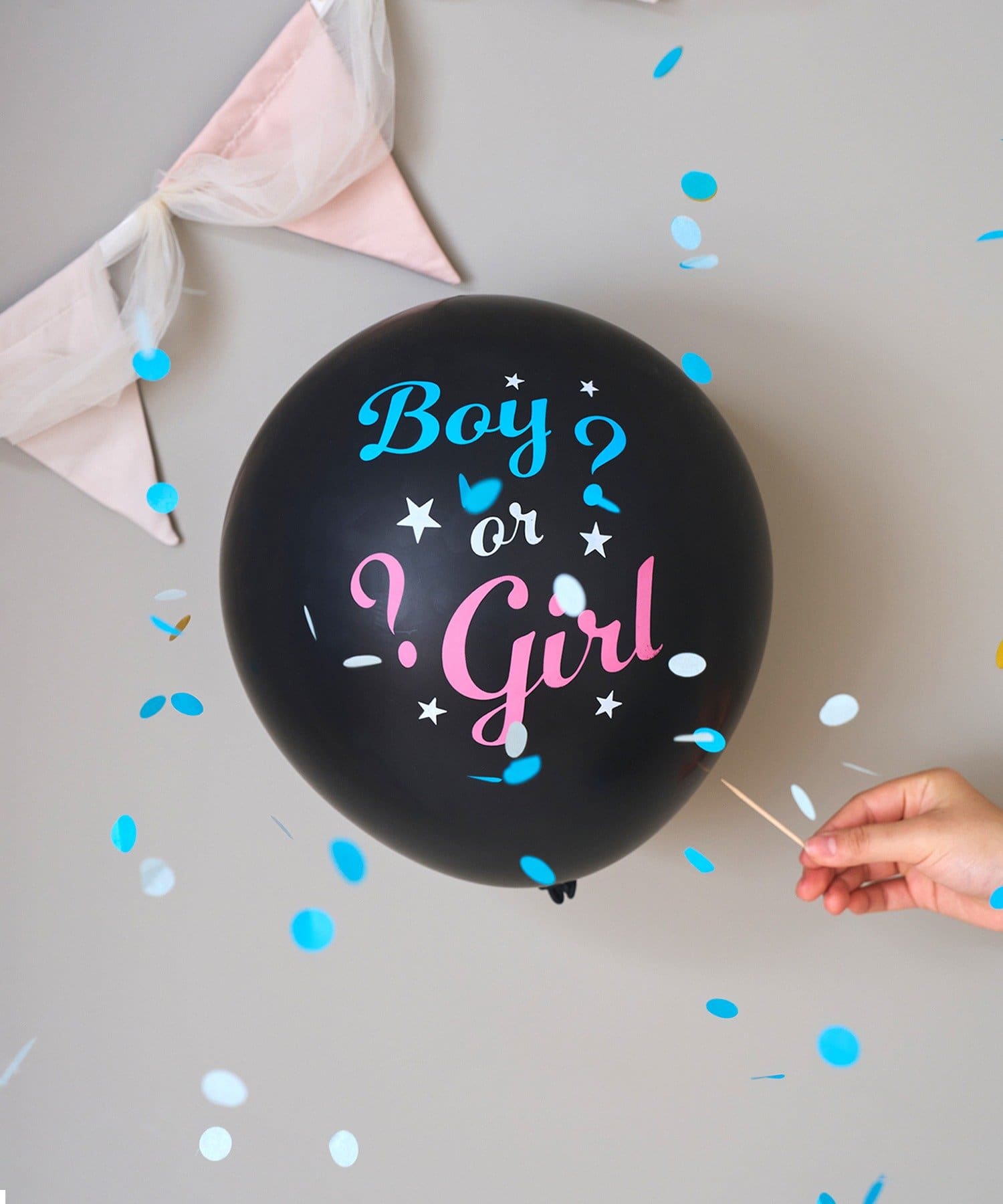●中から出る紙吹雪の色で、赤ちゃんが男の子か女の子かを楽しくサプライズ発表できるバルーンです。