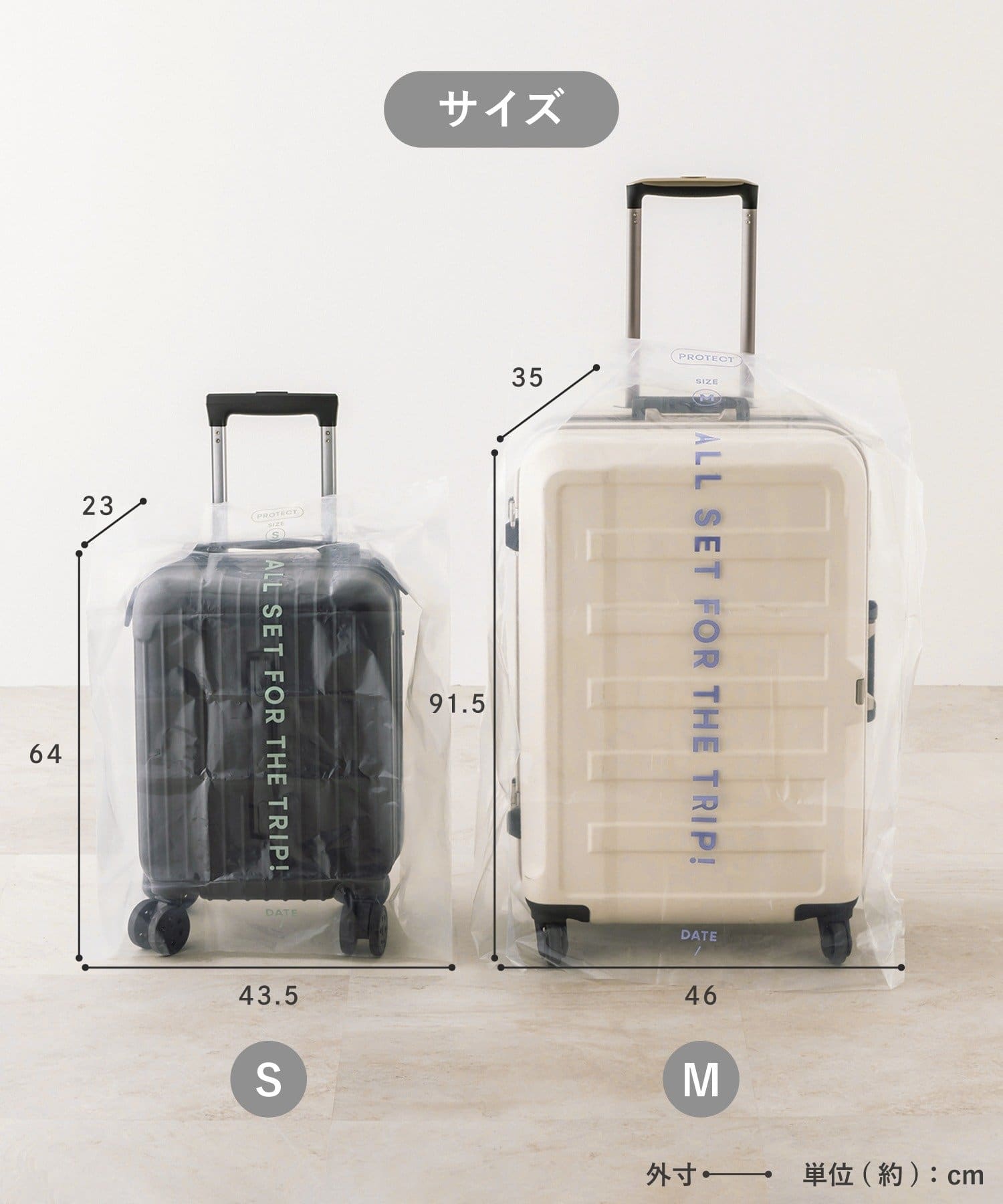 ●S・Mサイズがそれぞれ1枚入った2枚セットでスーツケースのサイズに合わせてご使用いただけます。