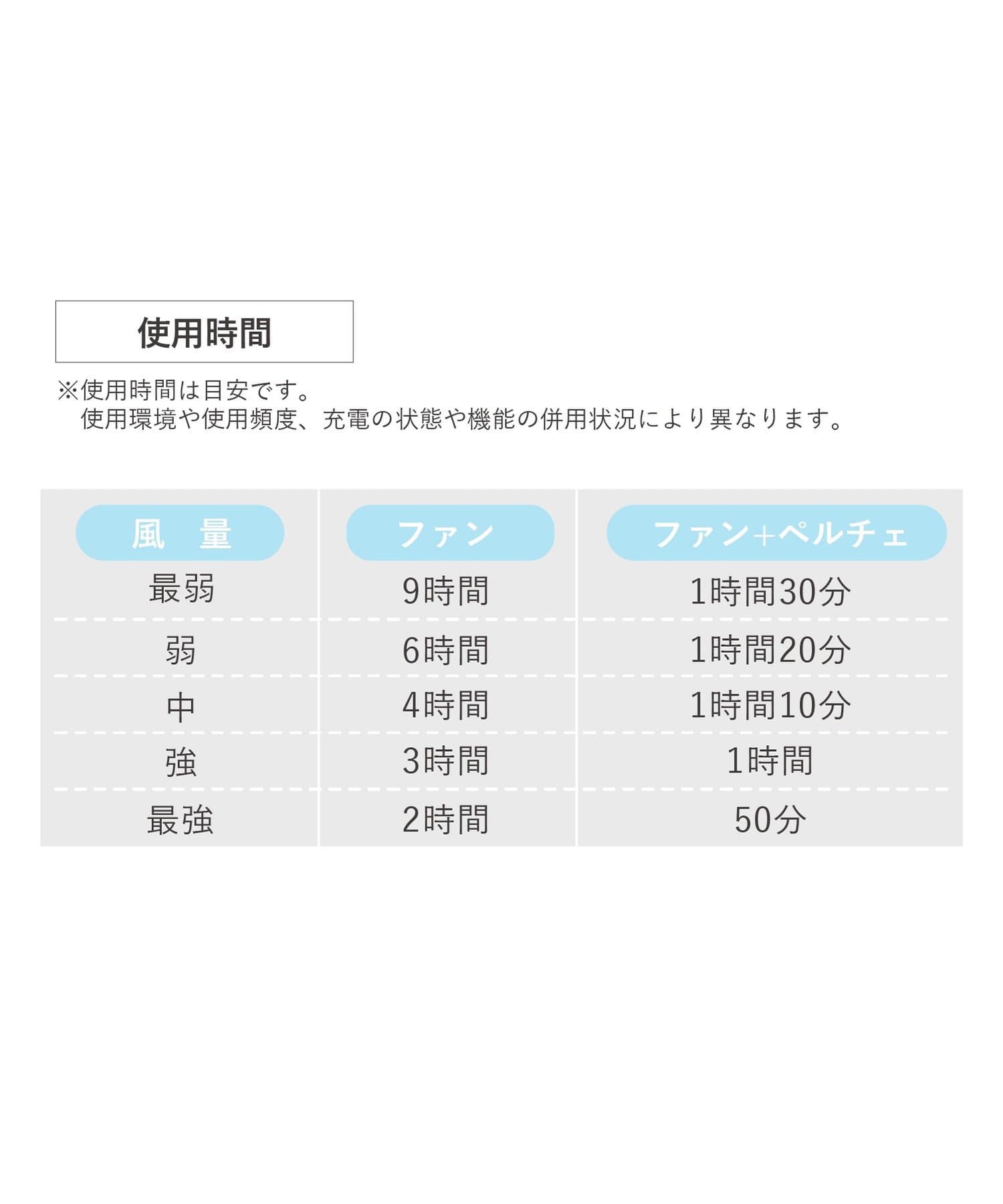 最強:約50分(※使用時間は目安です。使用環境や使用頻度、充電の状態や機能の併用状況により異なります)