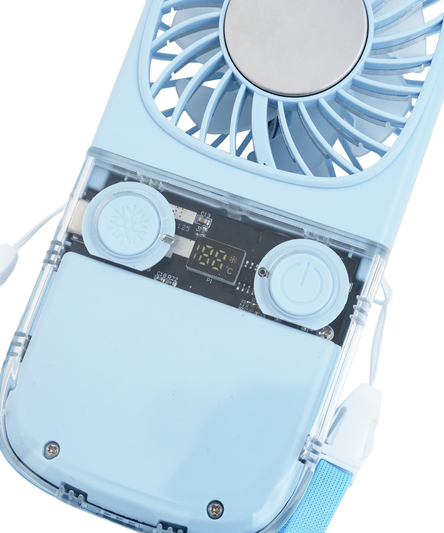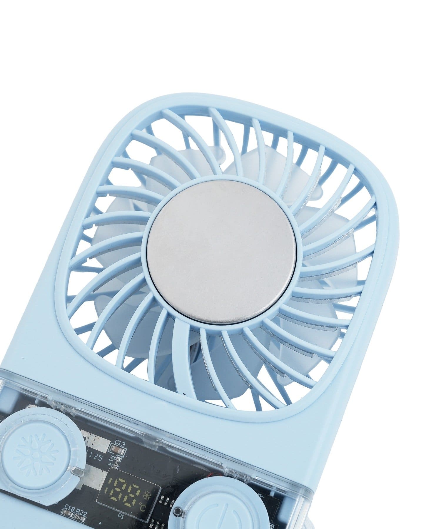 ●風を送るだけでなく、中央のプレートがひんやり冷たくなる「冷却機能」を搭載したファン。