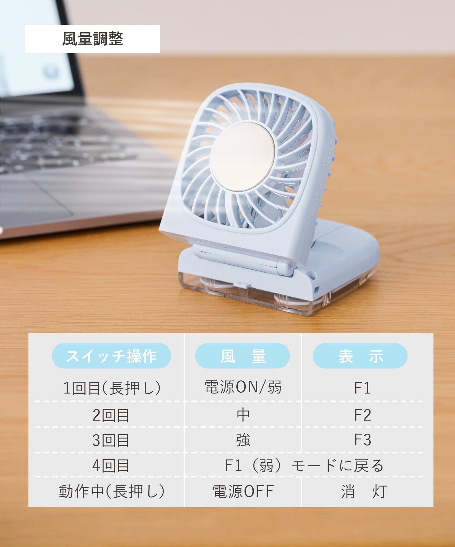 風量:3段階(F1(弱)、F2(中)、F3(強))