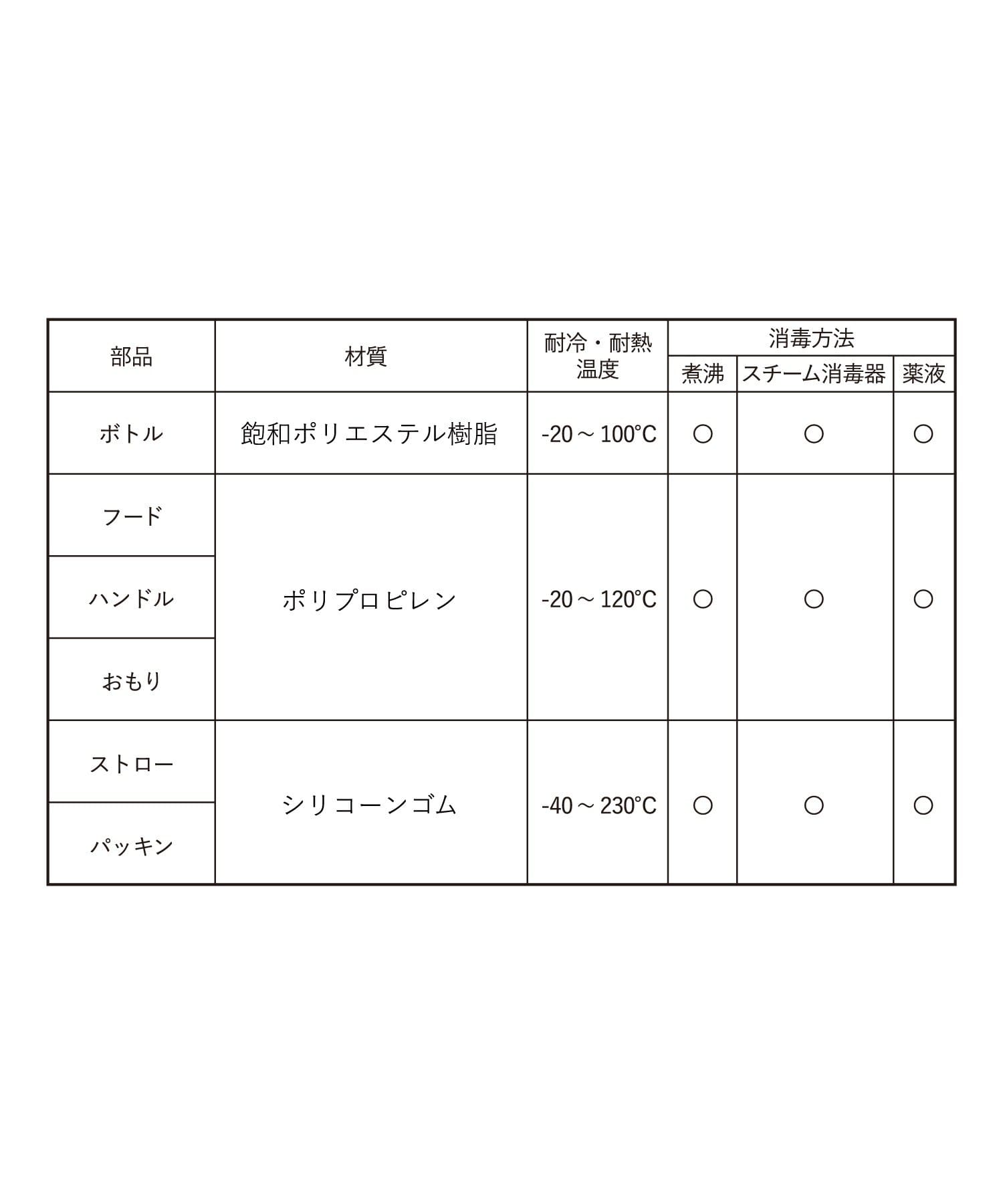 ●熱湯・煮沸消毒の際は、耐熱温度以上に熱がかかることはお避けください。
