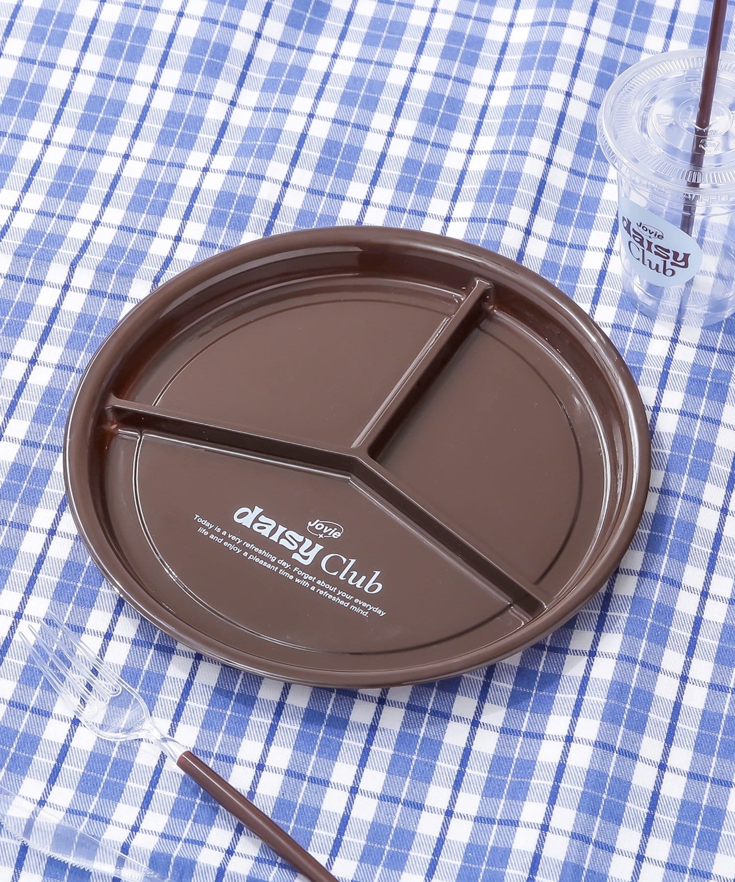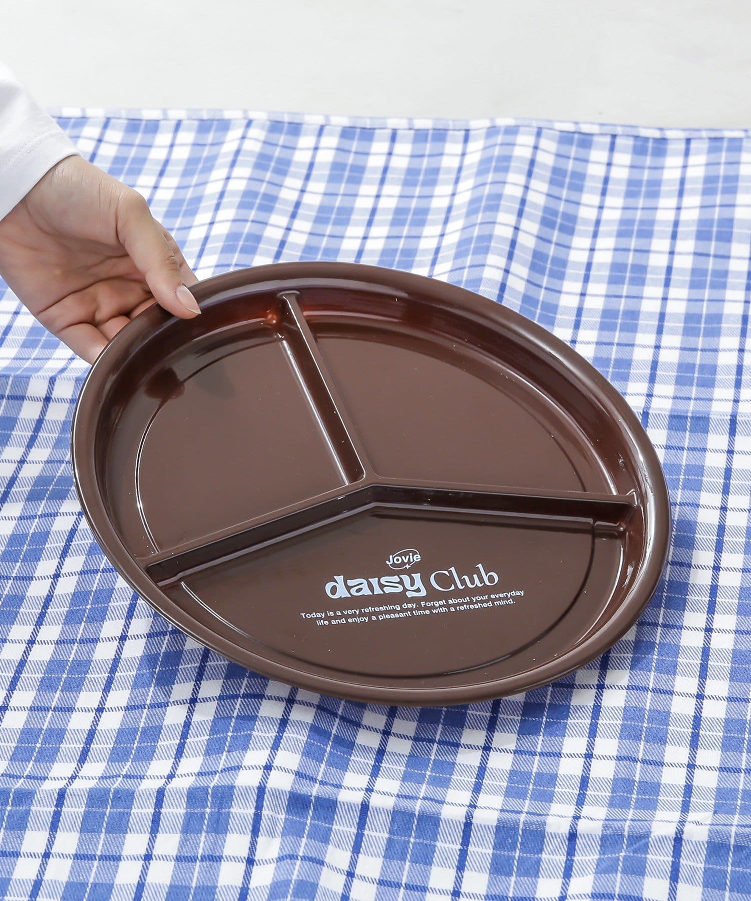 ●軽くて扱いやすいプラスチック製の仕切り付きラウンドプレート。