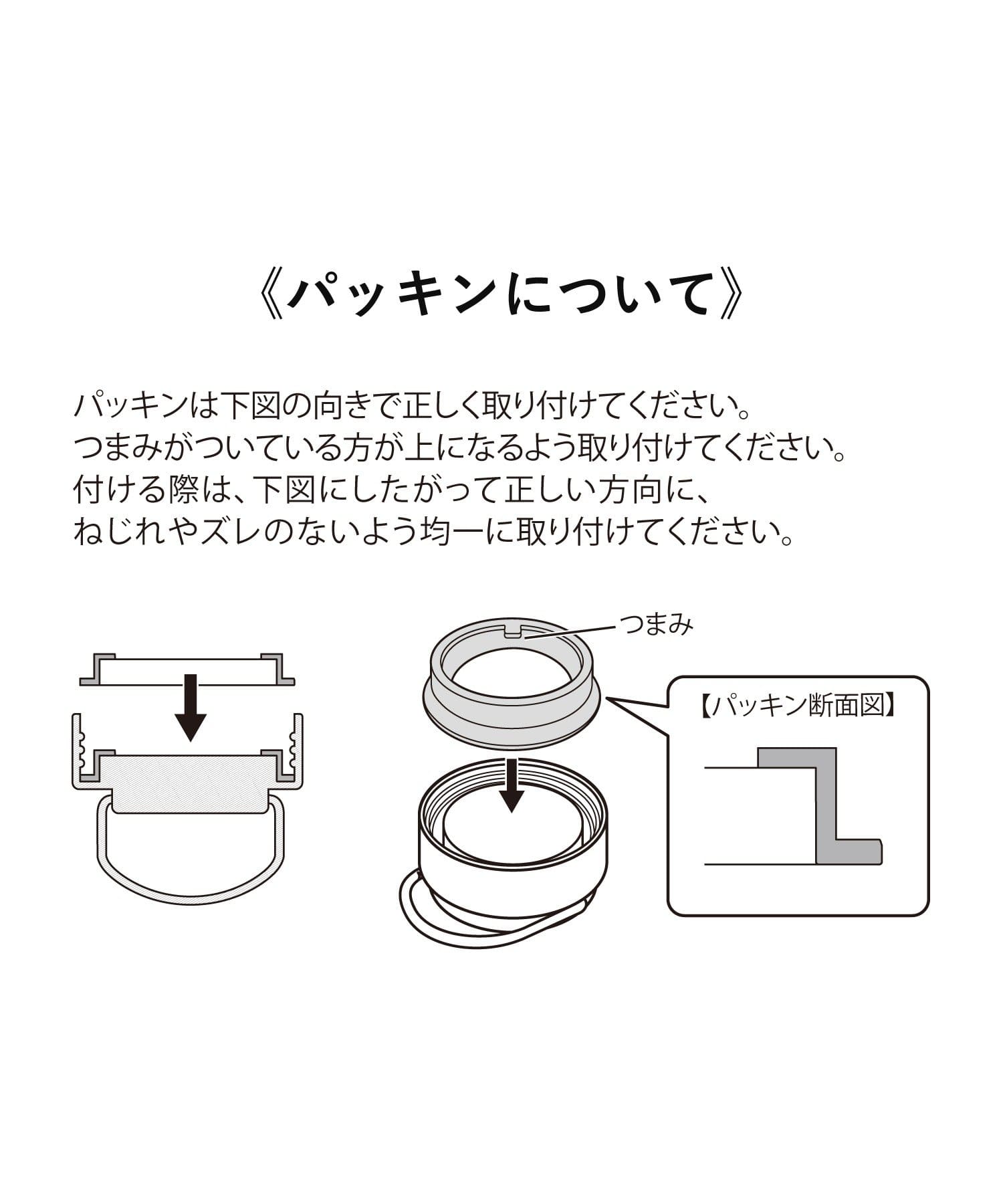 ●使用する際は、必ずパッキンが正しく取り付けられていることを確認してください。正しく取り付けられていないと、漏れの原因になります。
