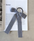 • 3COINS(スリーコインズ) ギンガムチェックロングリボンポニー