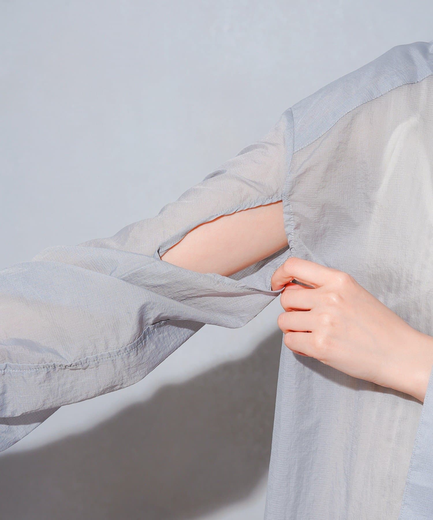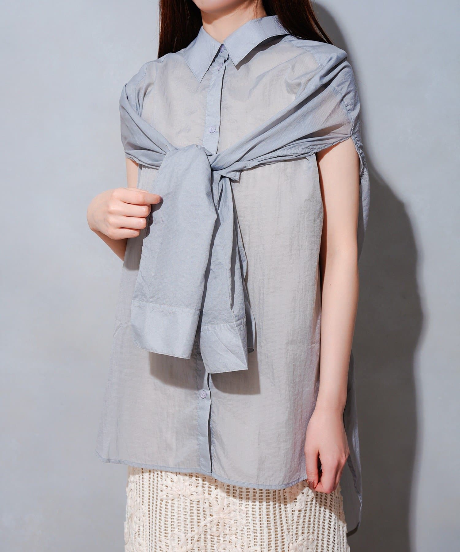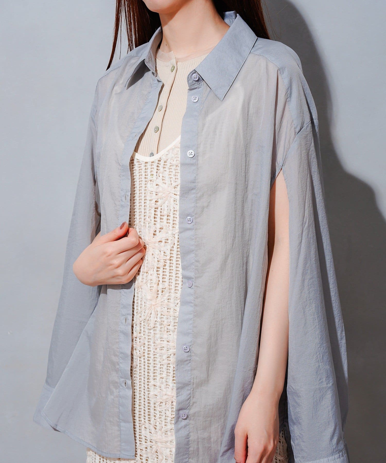 ●2way袖で、コーデやシーンに合わせて着こなしを楽しめるシアーシャツです。