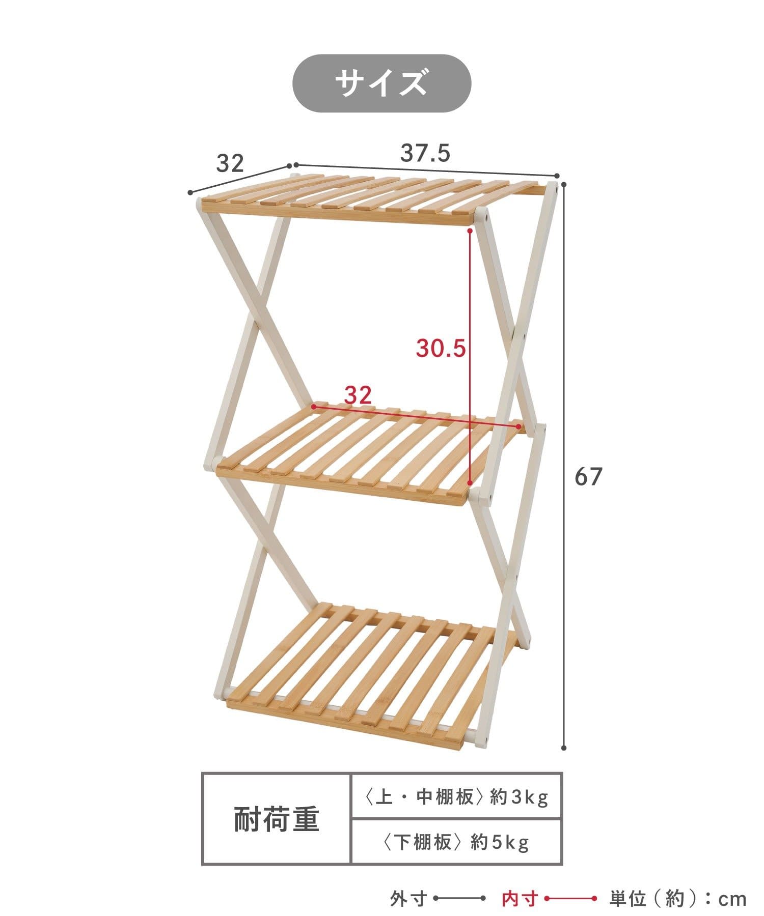 ●工具が不要で、簡単に組み立てられる3段ラックです。