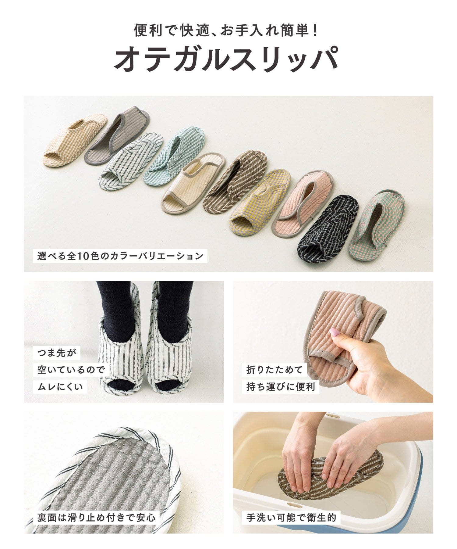 ●加工工程や素材の特性上、使用や時間の経過とともに、滑り止め部分が変色する場合があります。また、着用や洗濯を繰り返すことにより、剥がれやひび割れが生じることがあります。