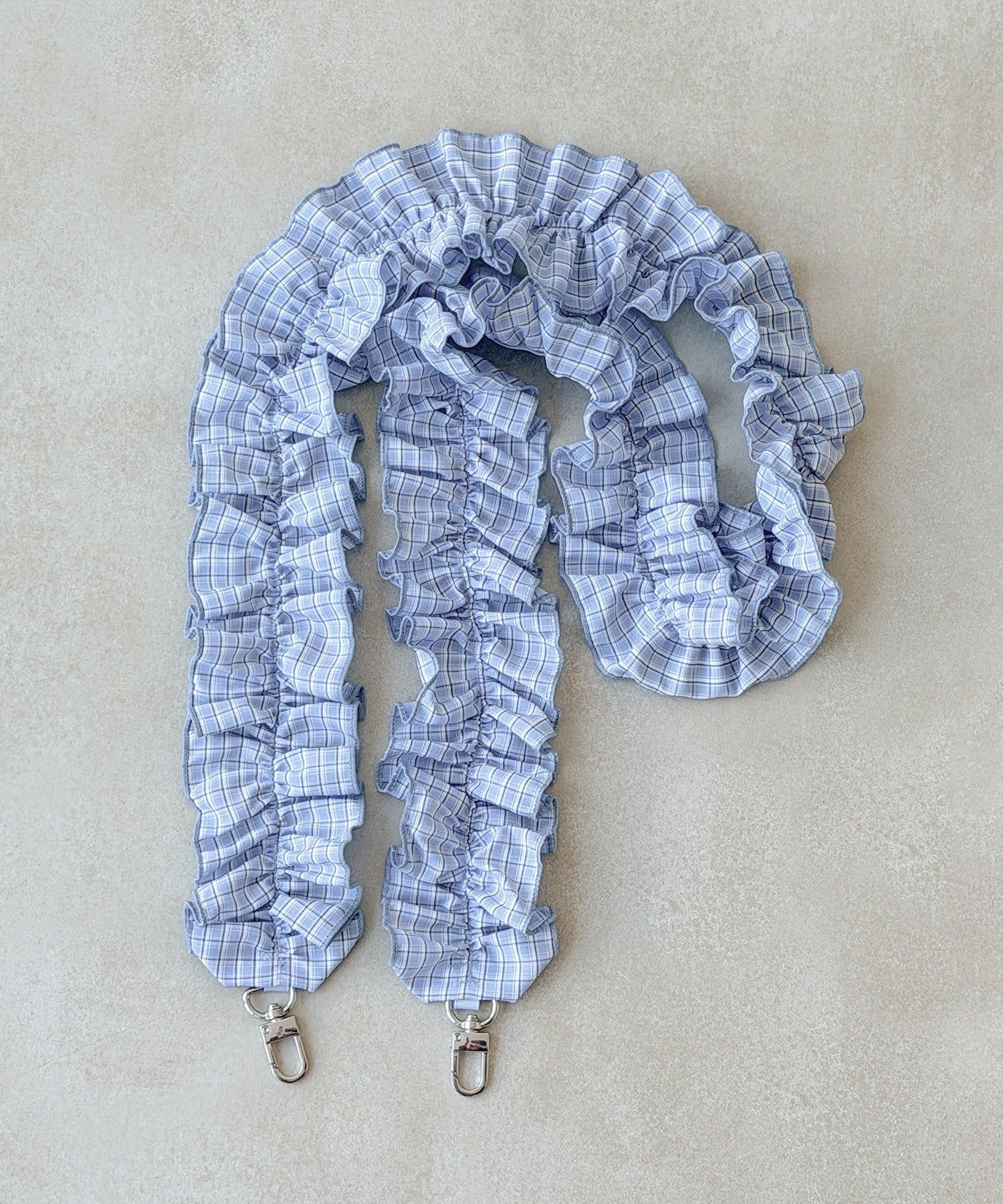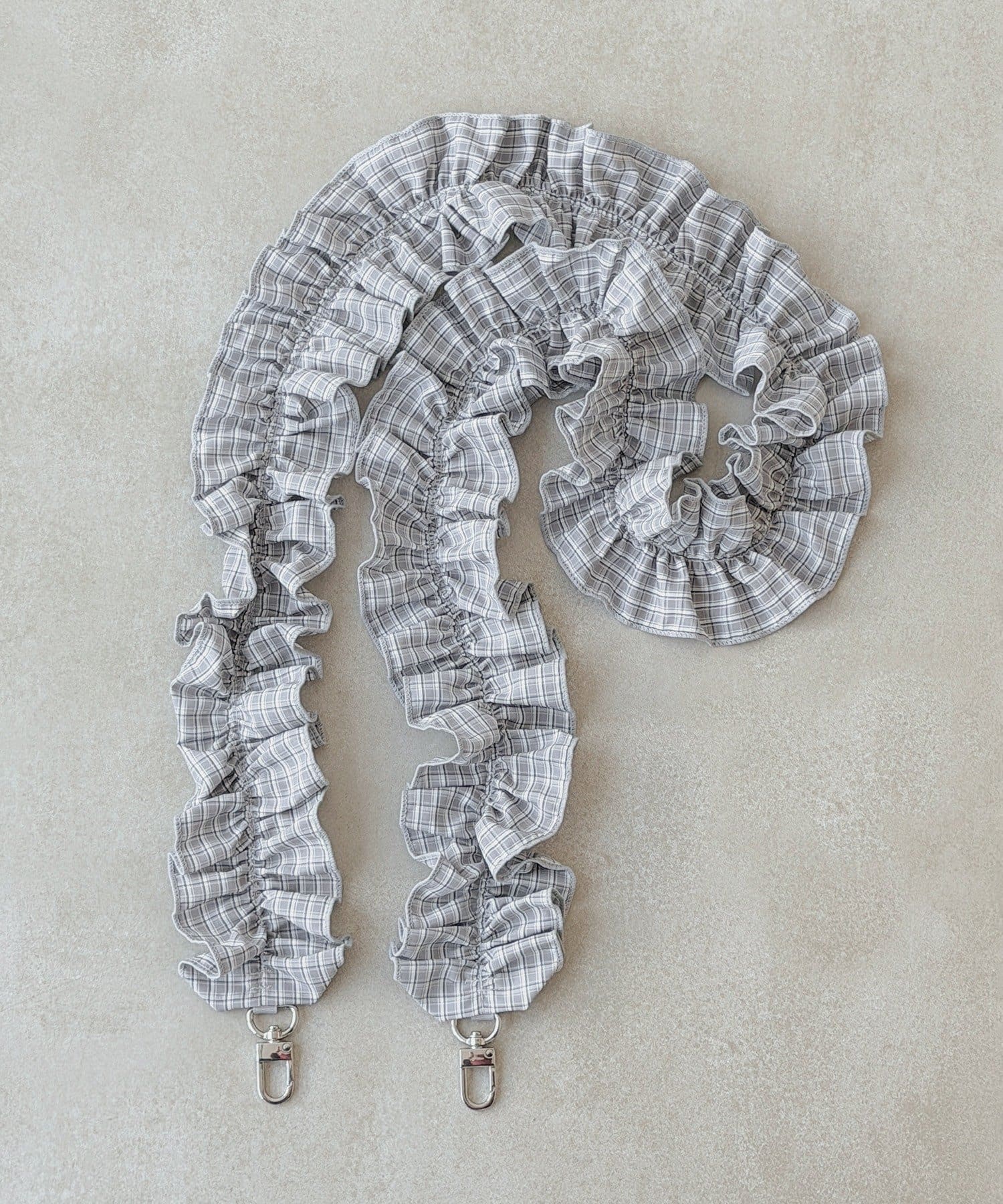 ●目を引くフリルが可愛いチェック柄のスマホショルダーです。
