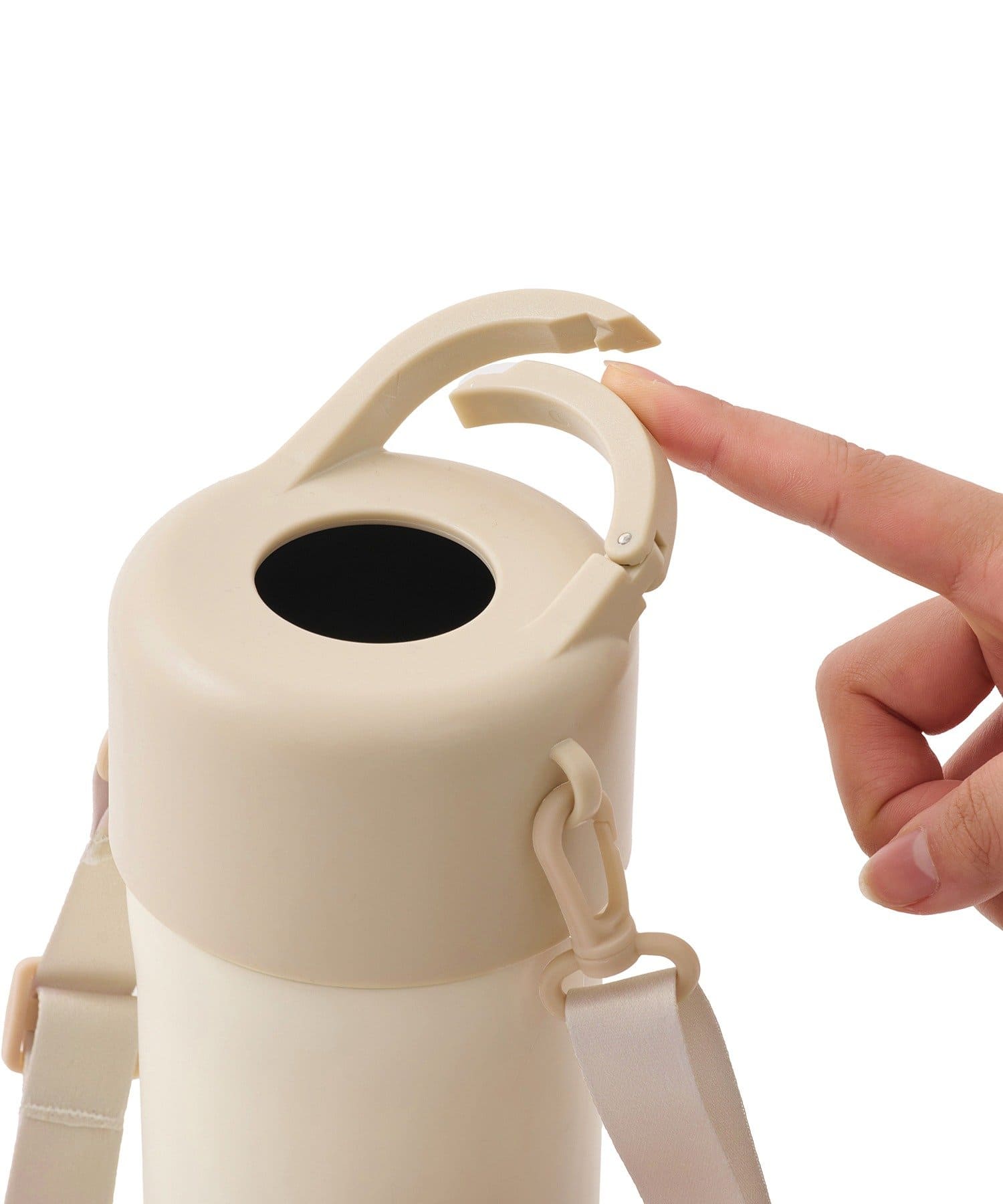 ●持ち運びの際は中に入れたペットボトルを持たず、本体やストラップを持って運んでください。