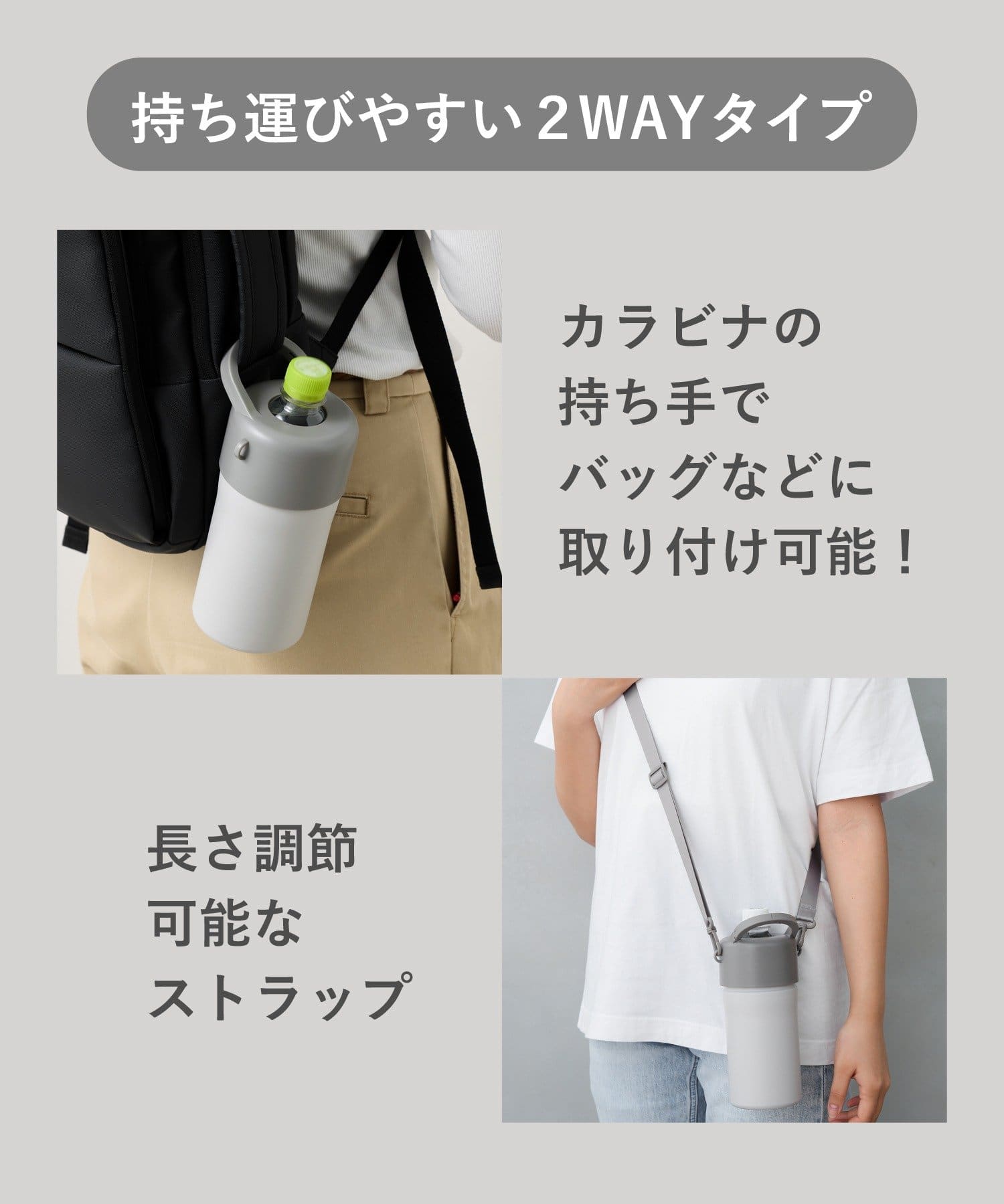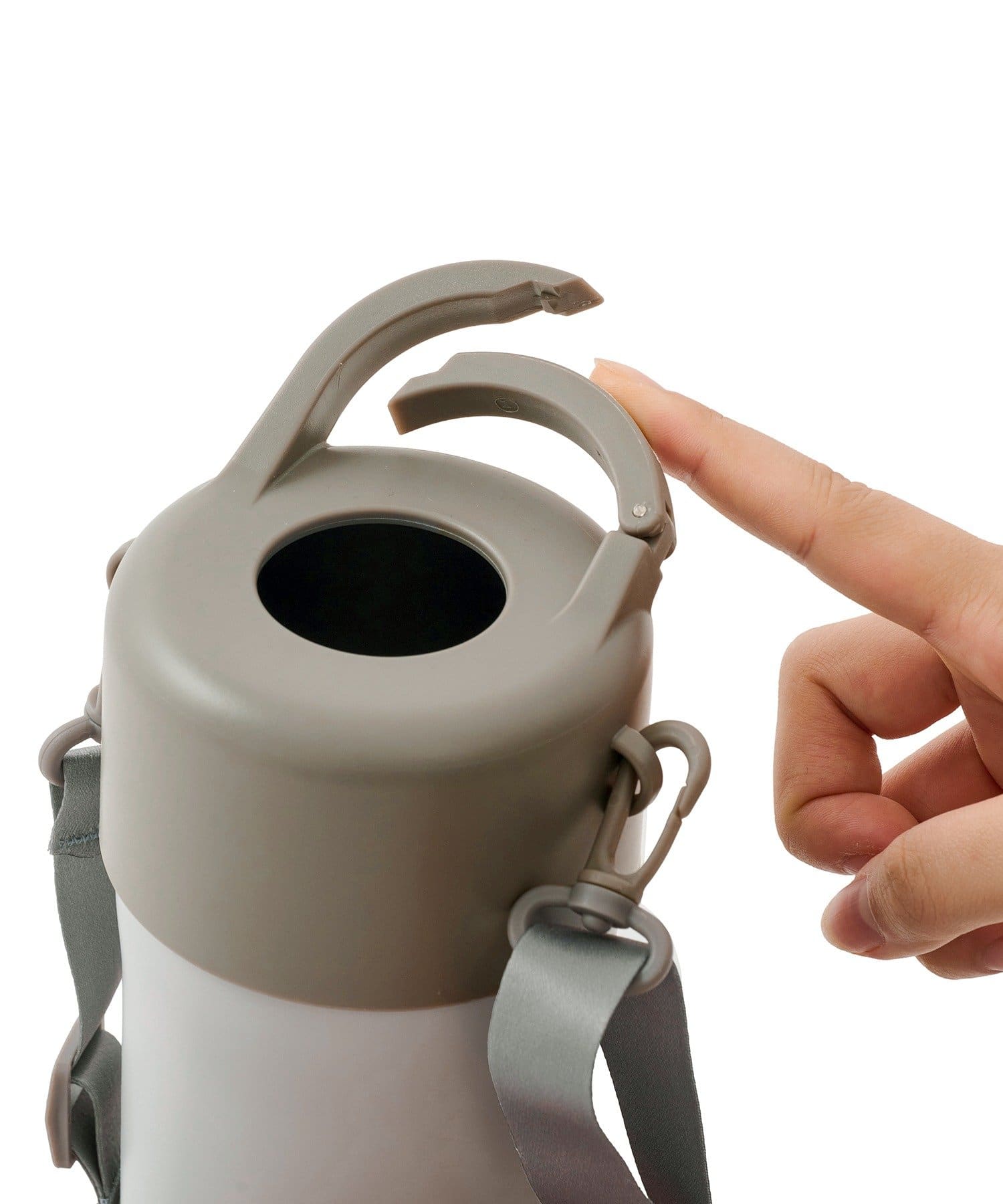 ●持ち運びの際は中に入れたペットボトルを持たず、本体やストラップを持って運んでください。