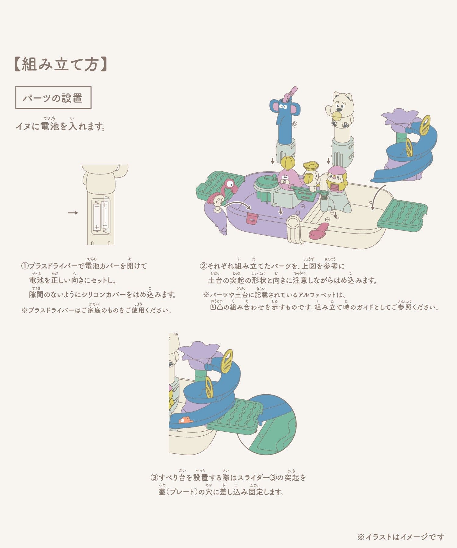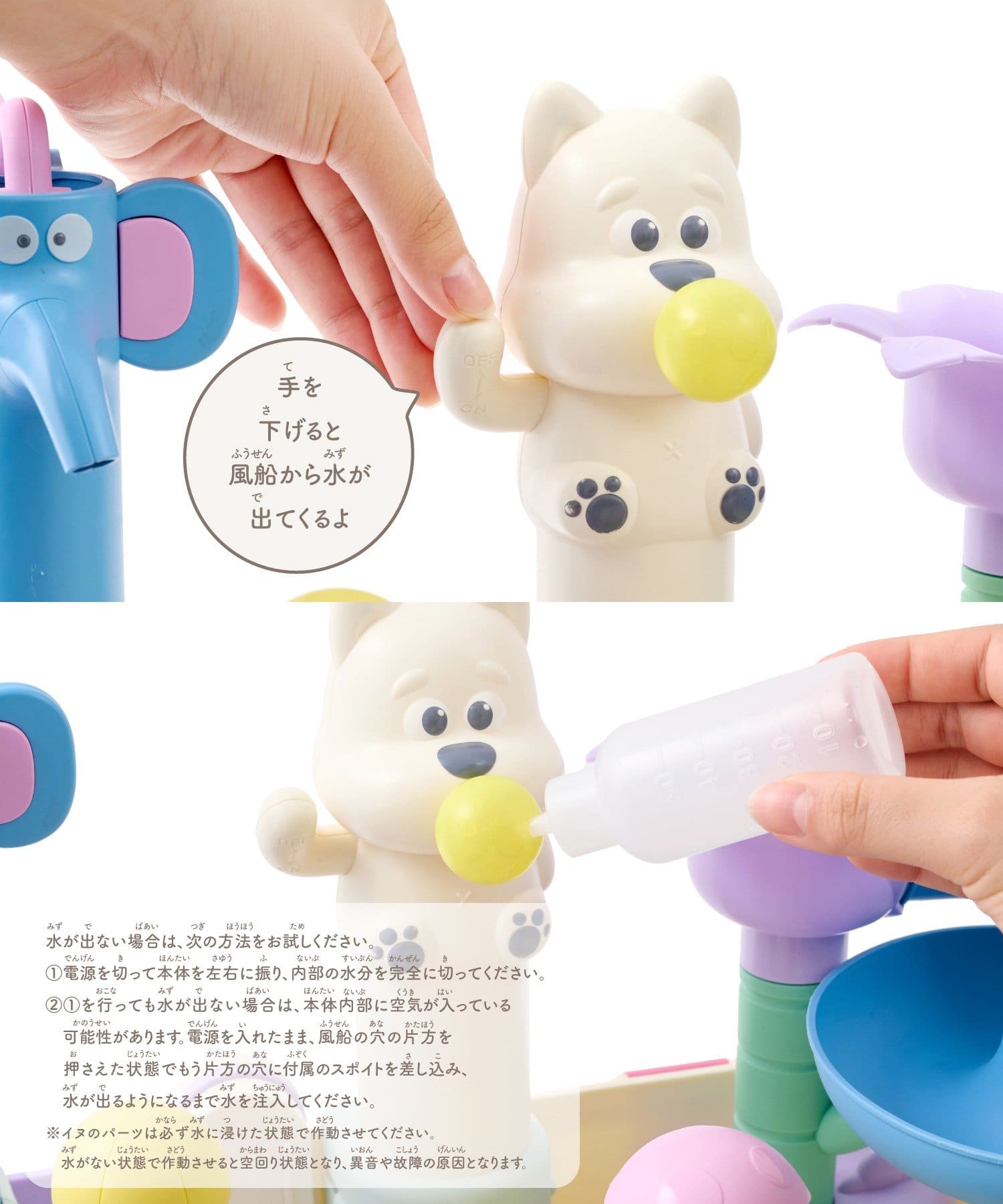 ●犬のパーツには乾電池を使用しています。電池ボックス部分に直接水をかけたり、水中に沈めて使用したりしないでください。水の影響による故障・不具合が発生した場合は、補償致しかねます。予めご了承ください。
