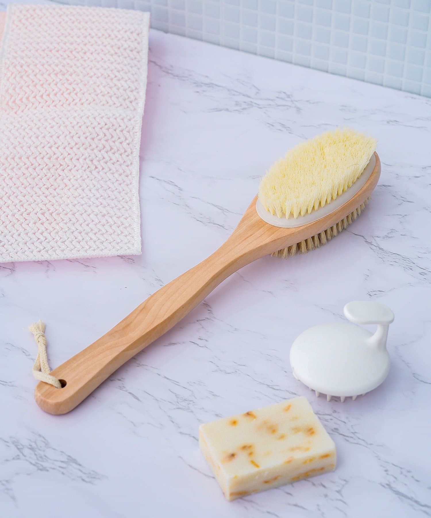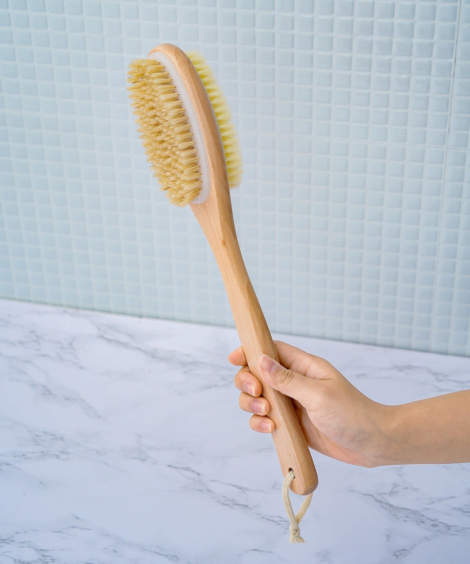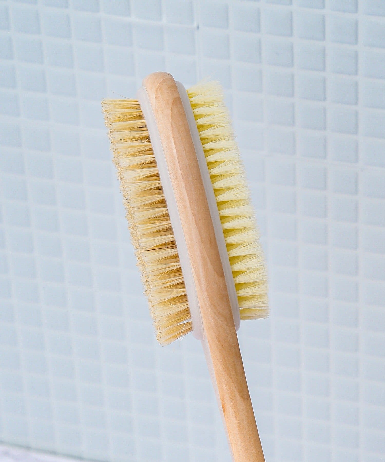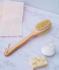 ●柄がついているので、手の届きにくい背中まで楽にアプローチでき、全身をムラなく洗い上げます。