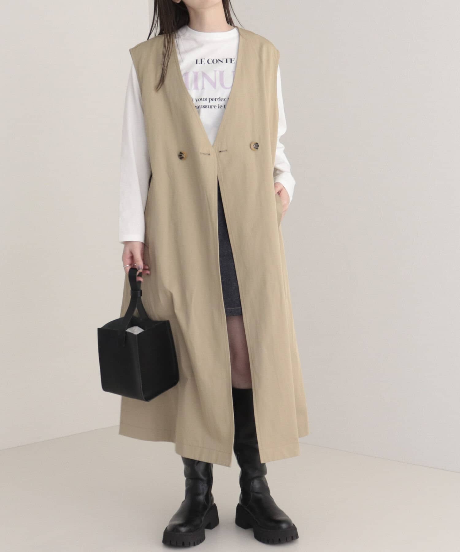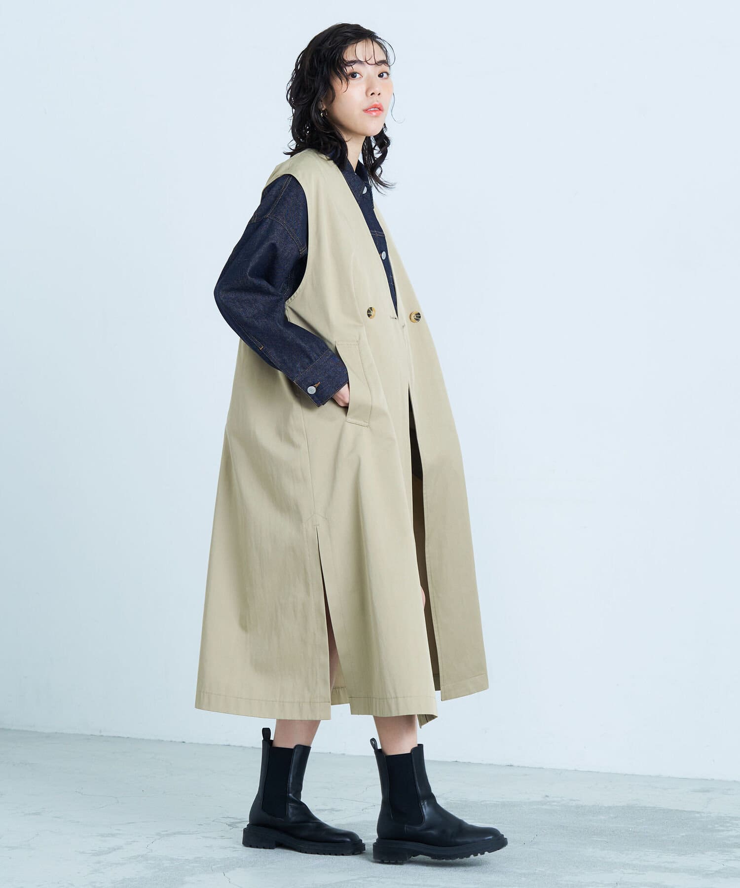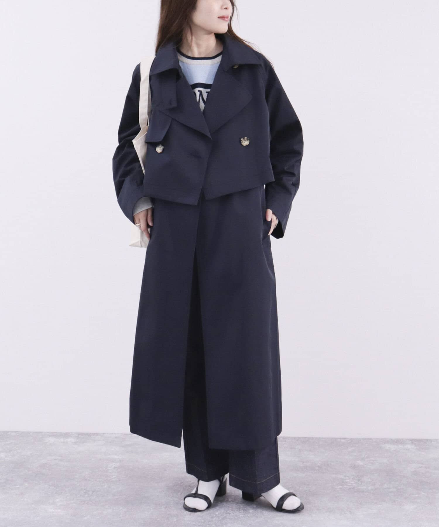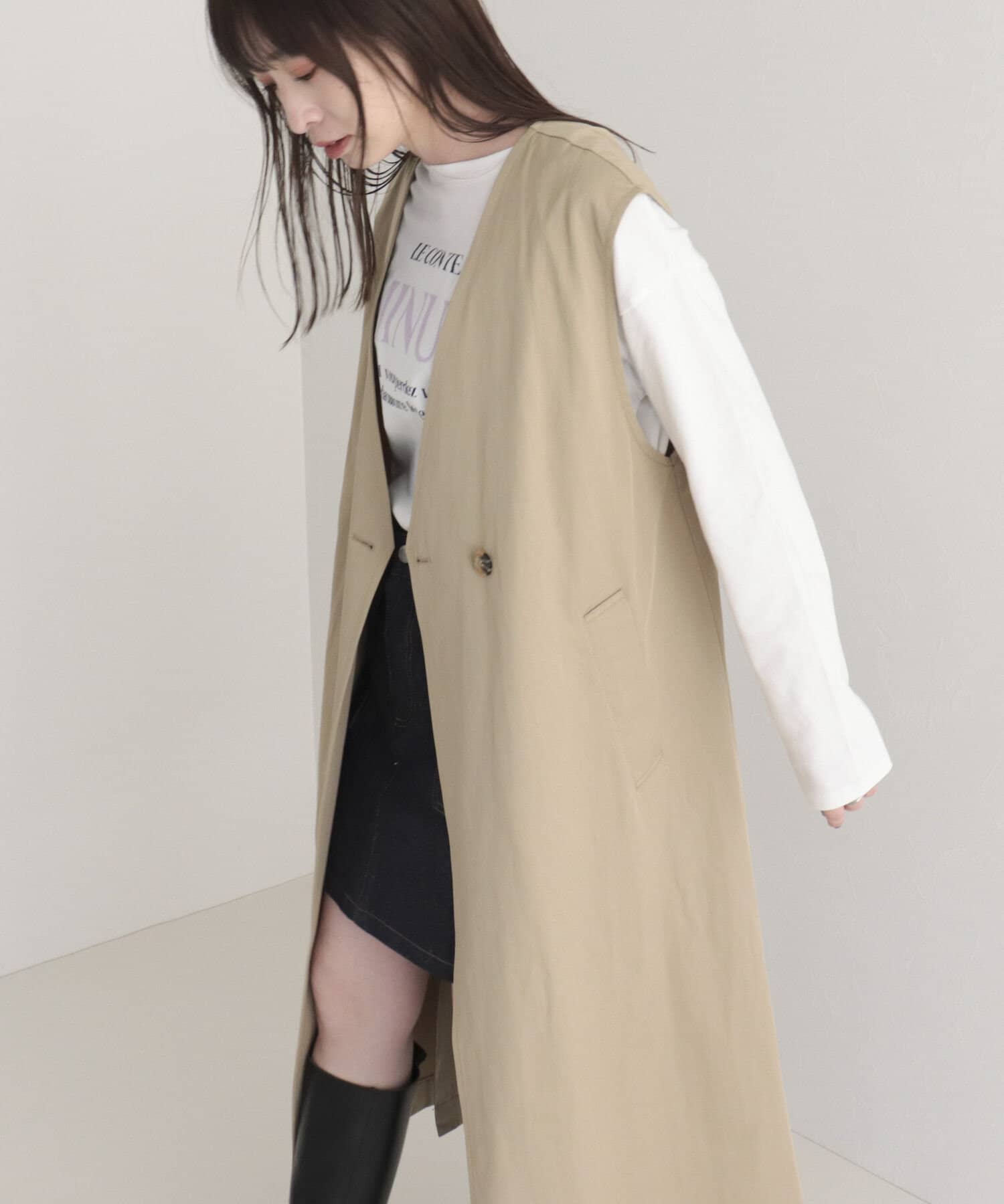 ・ロング・ショート丈のトレンチコートとして、ジレとしても着られる3WAY仕様。1枚で色々な着こなしが楽しめる魅力的なアイテム