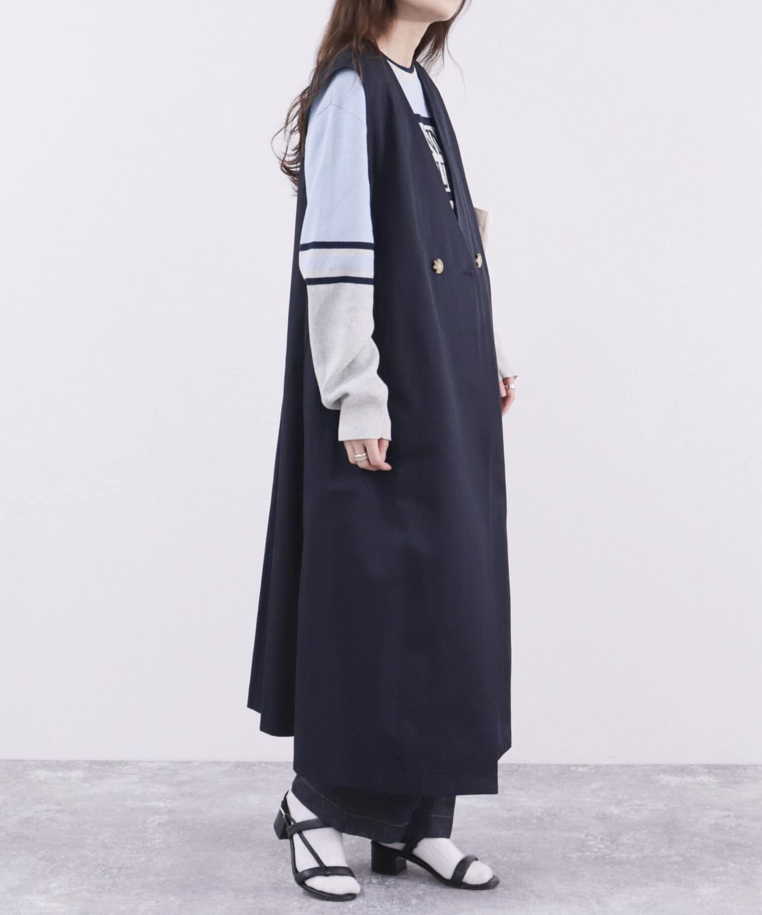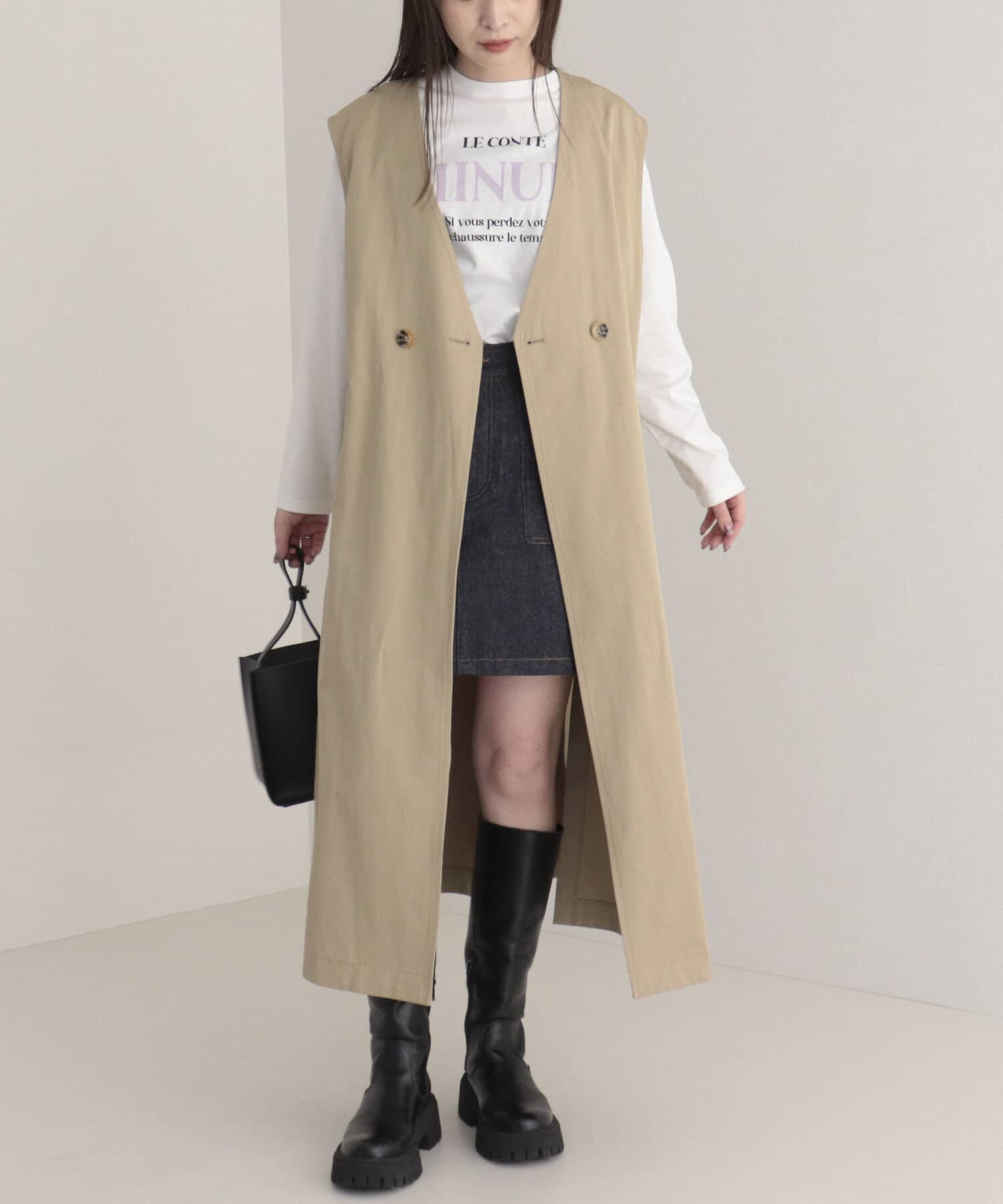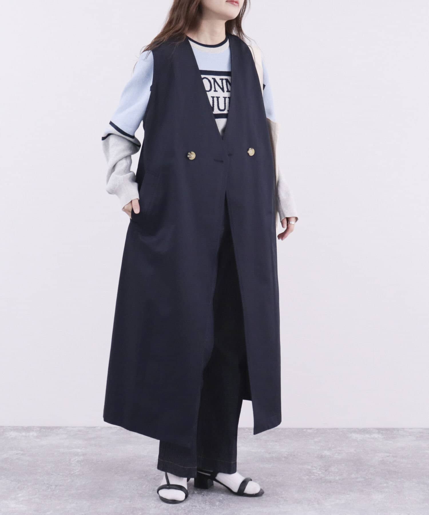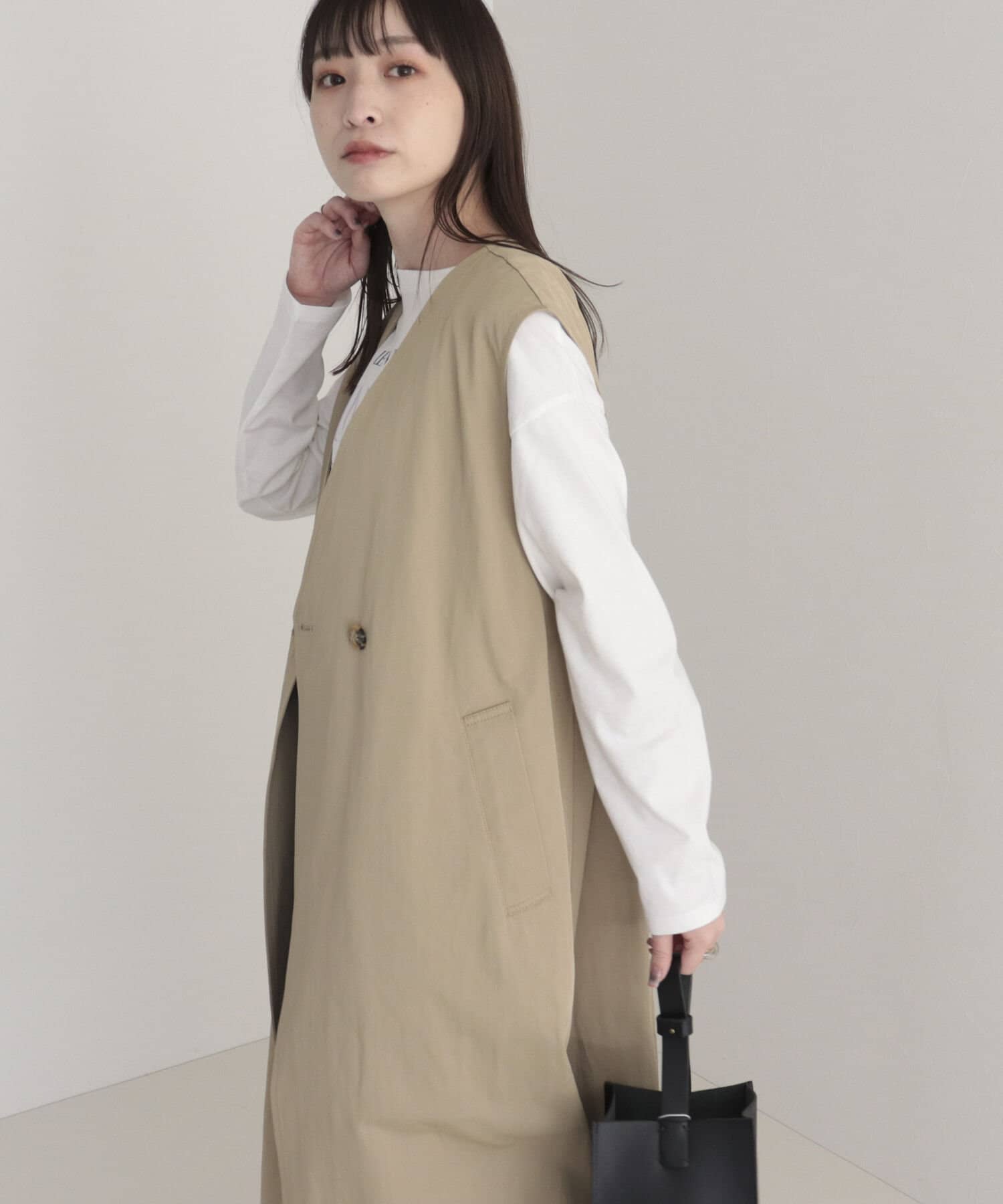・ロング・ショート丈のトレンチコートとして、ジレとしても着られる3WAY仕様。1枚で色々な着こなしが楽しめる魅力的なアイテム