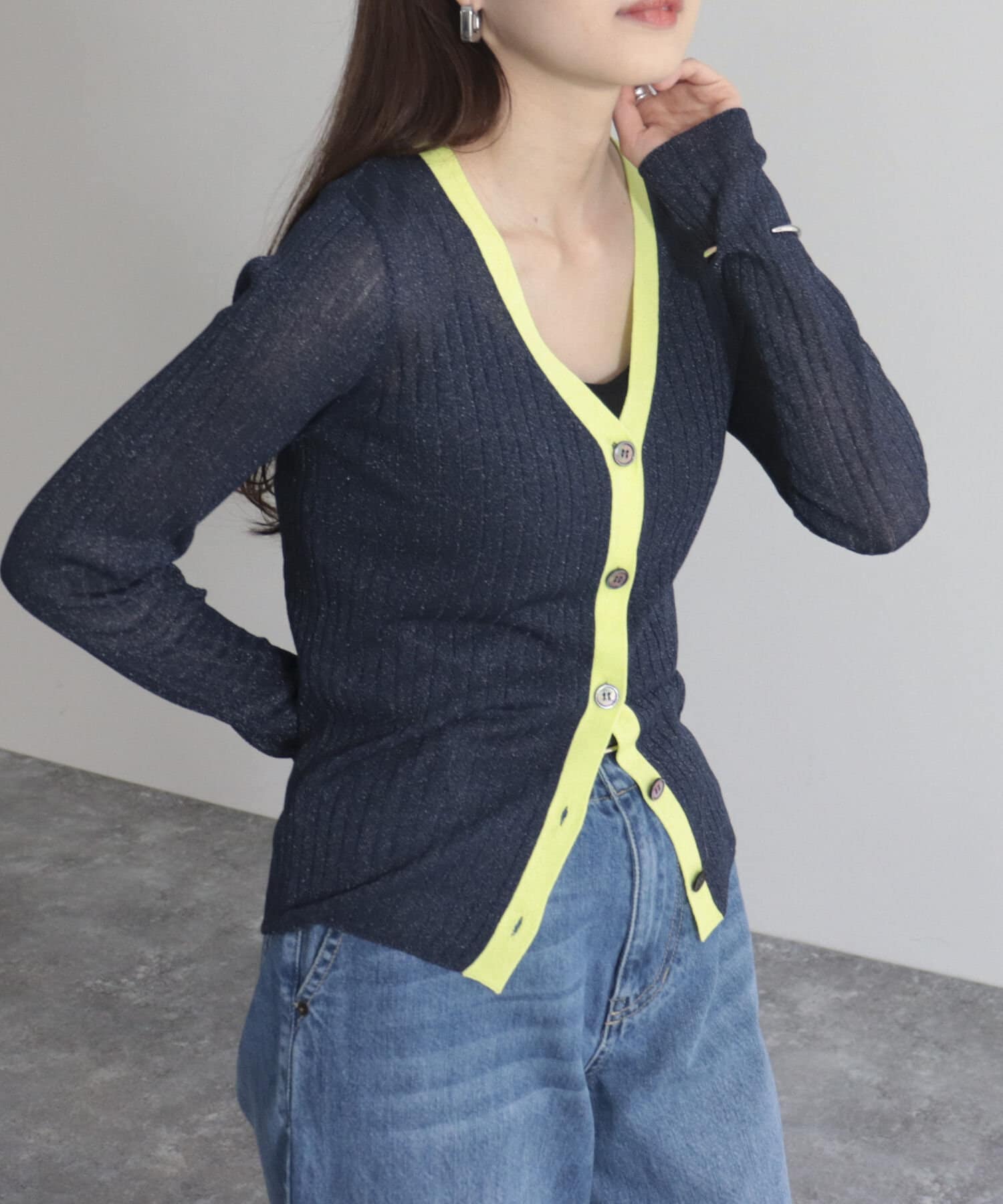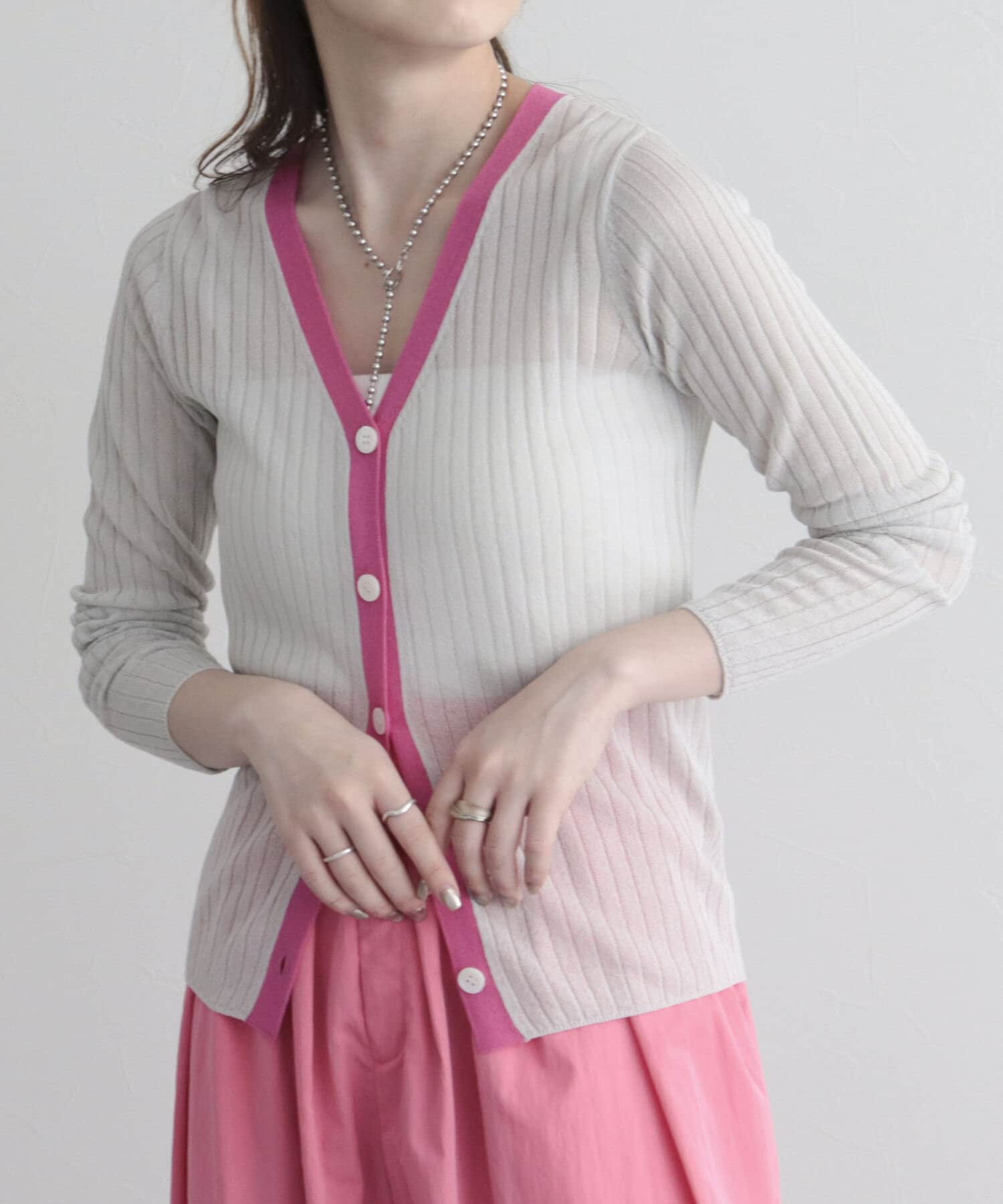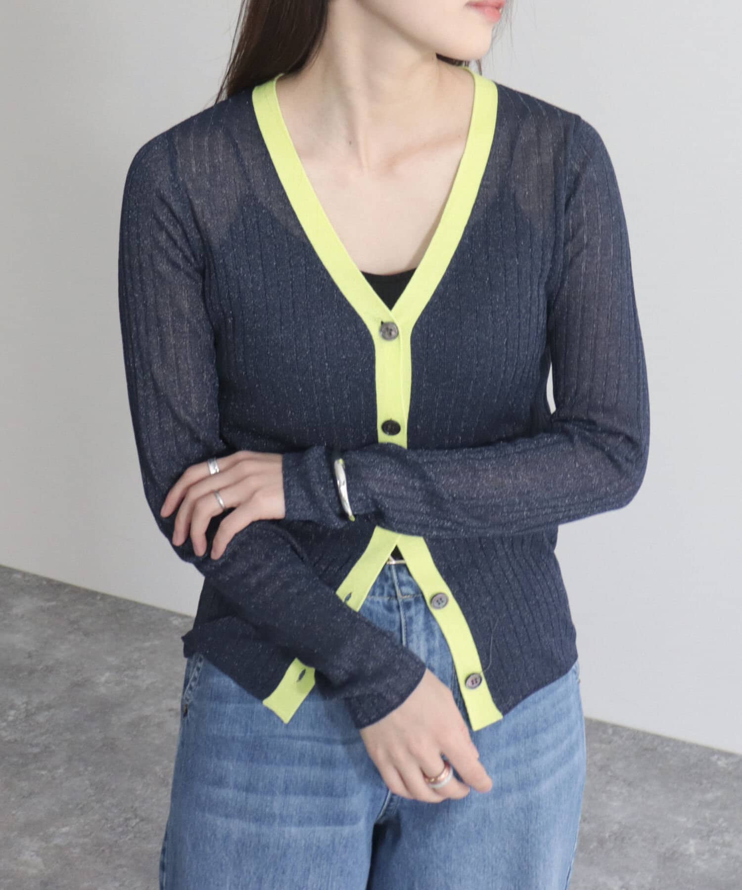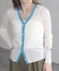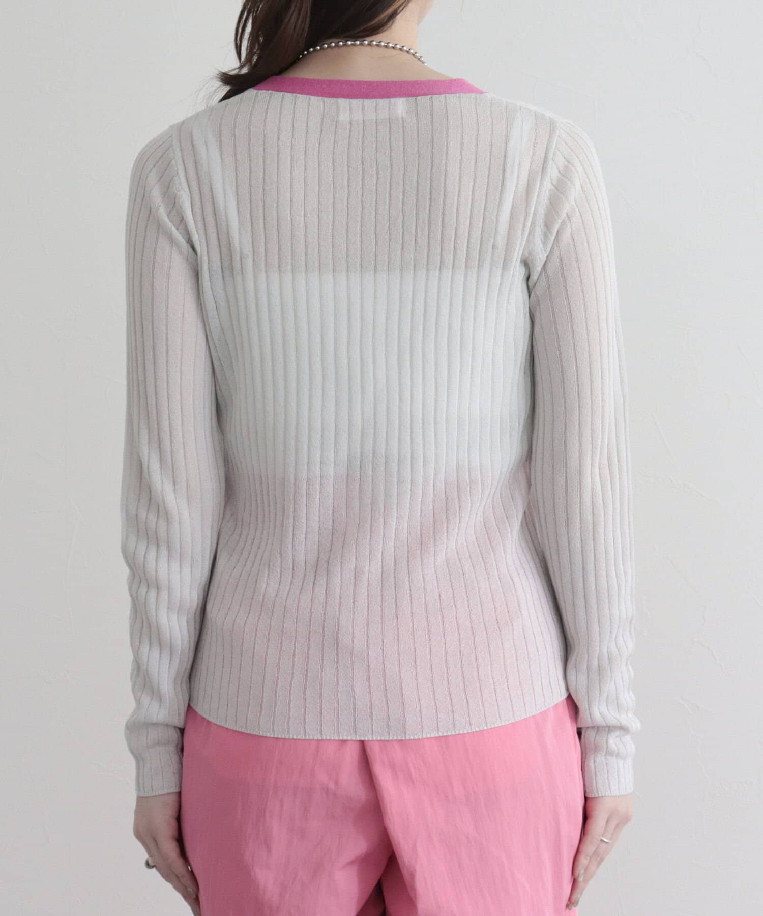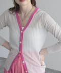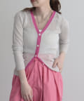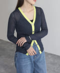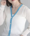 ワイドリブ配色シアーカーディガン