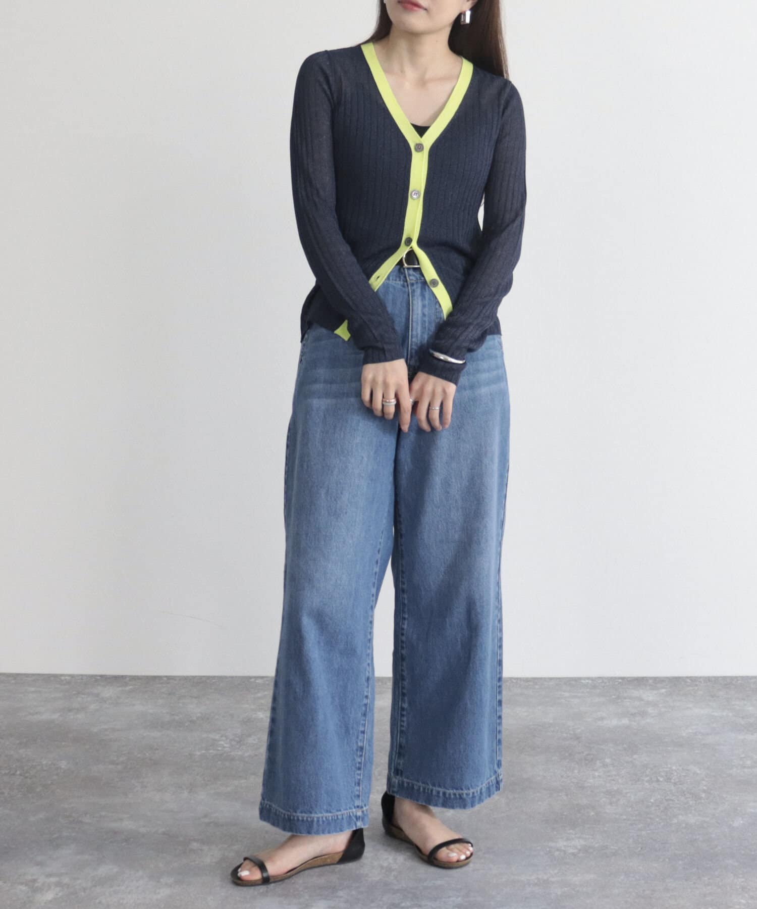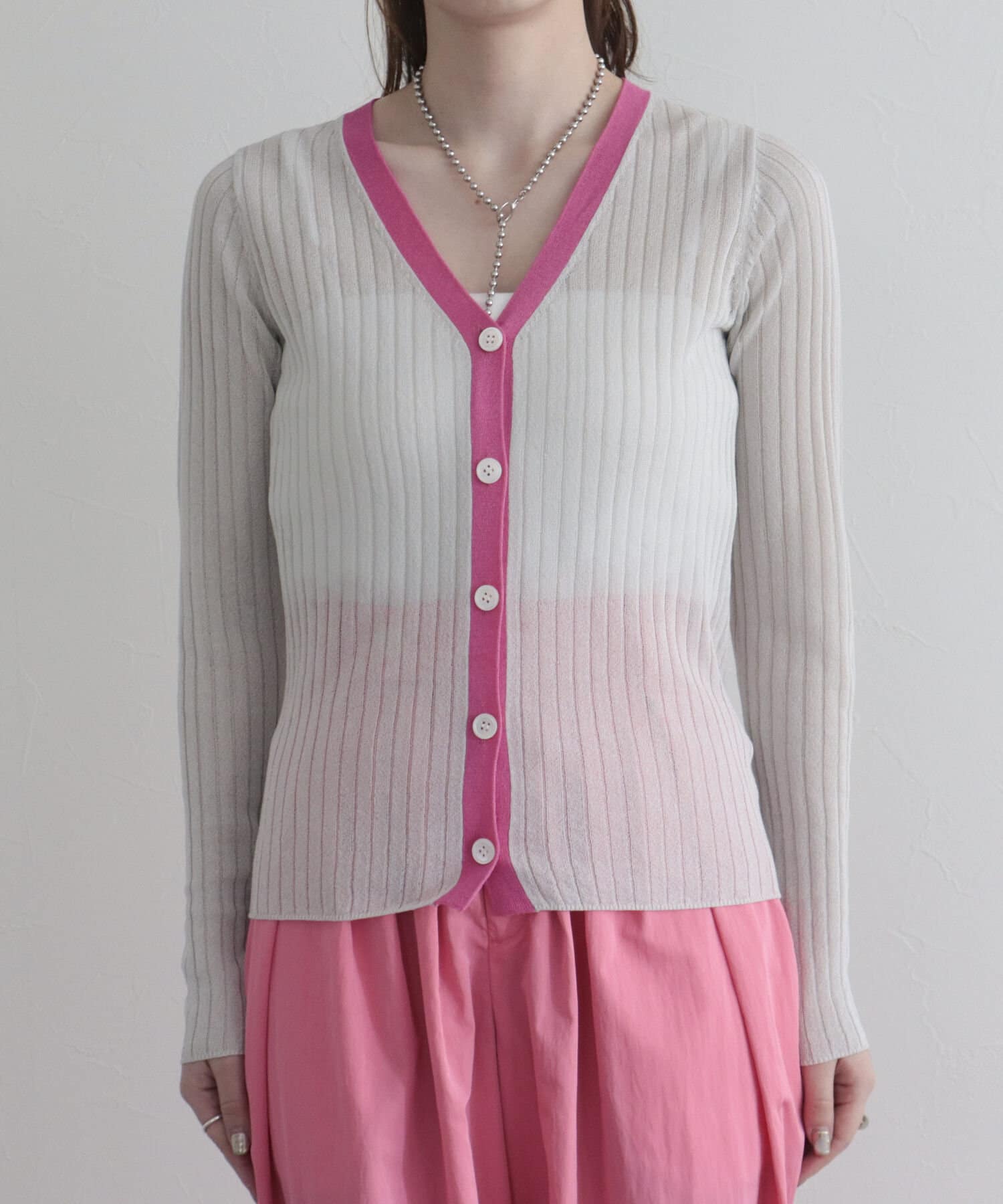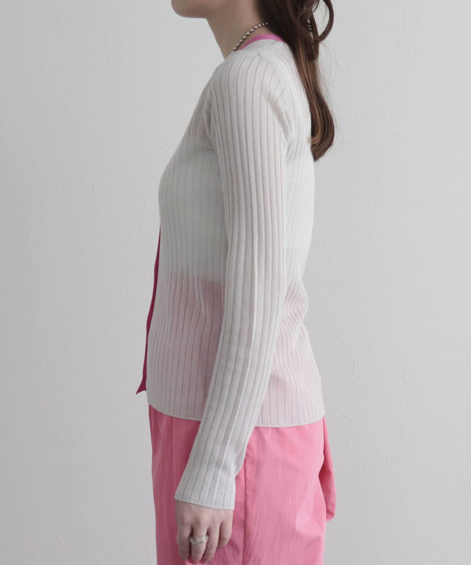 ワイドリブ配色シアーカーディガン