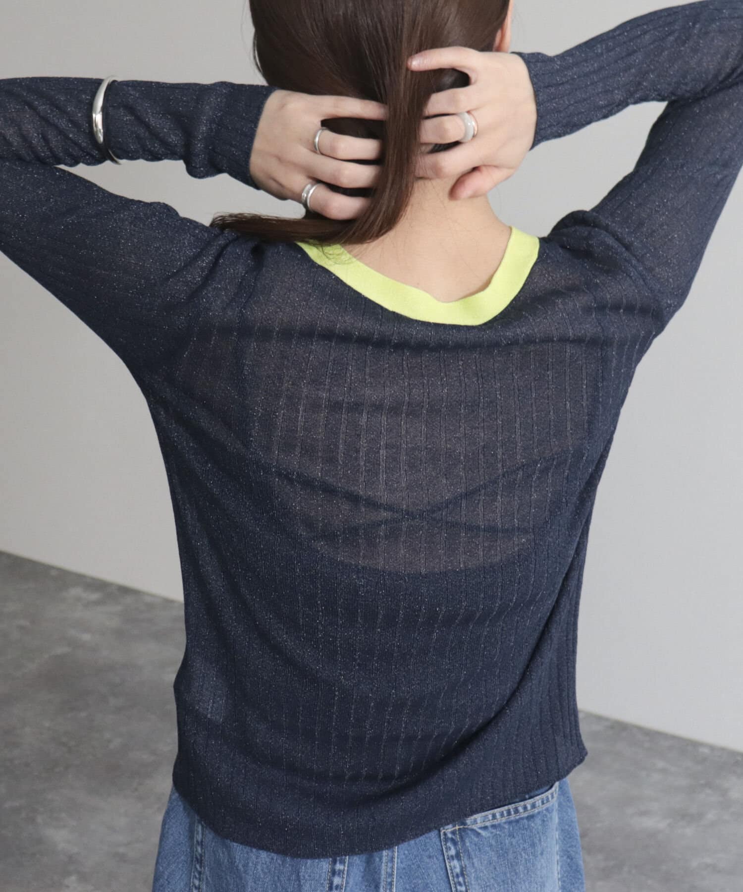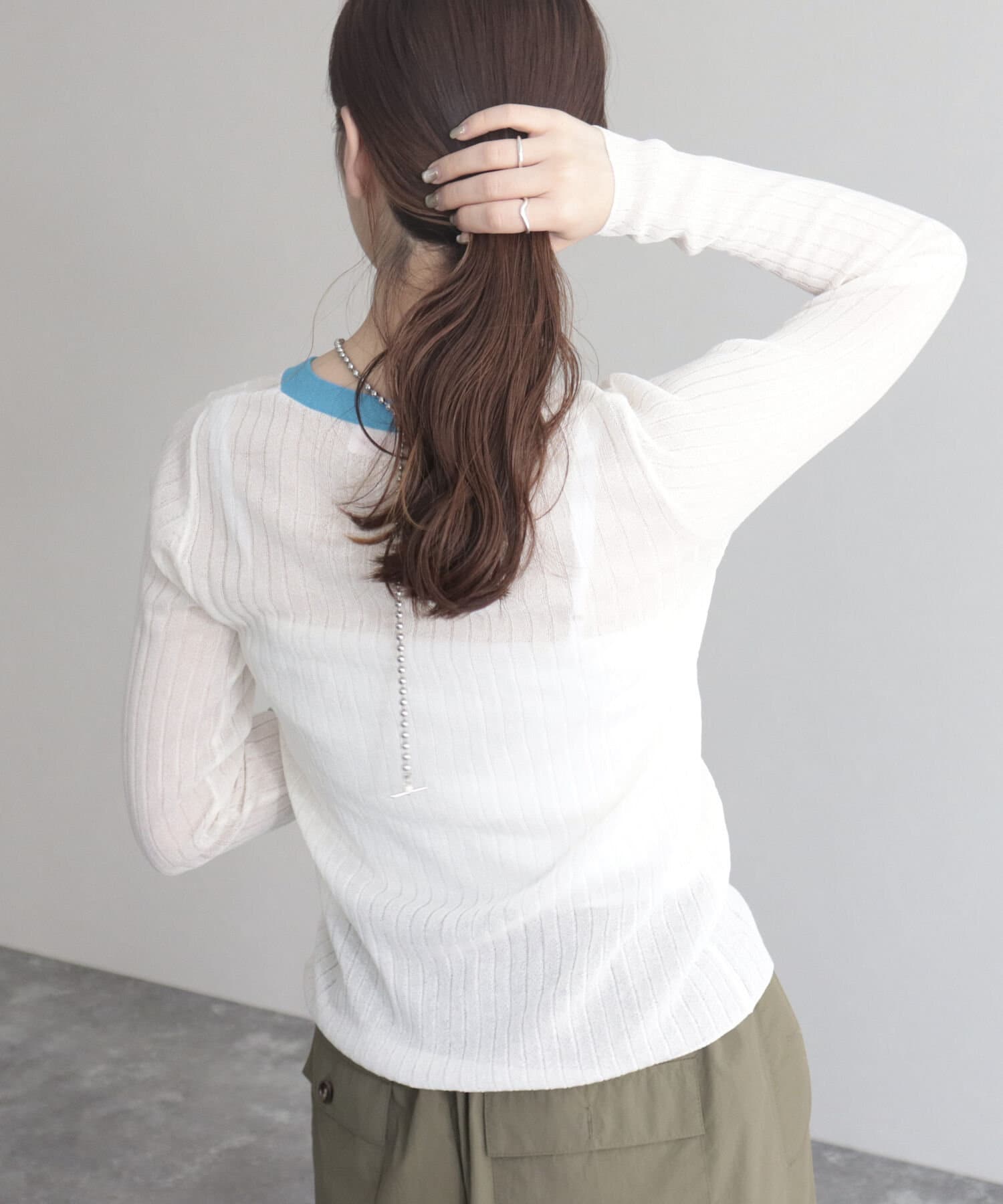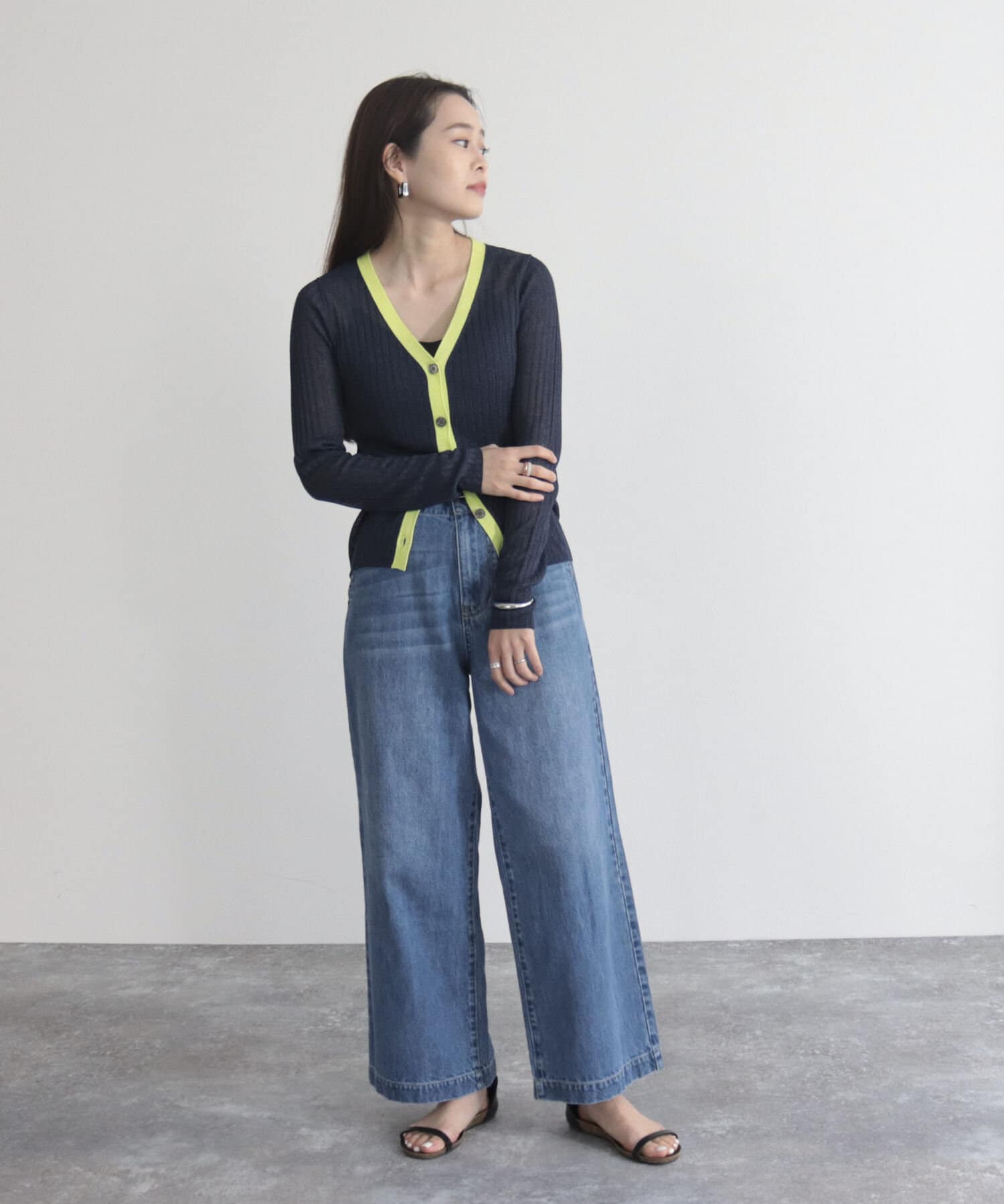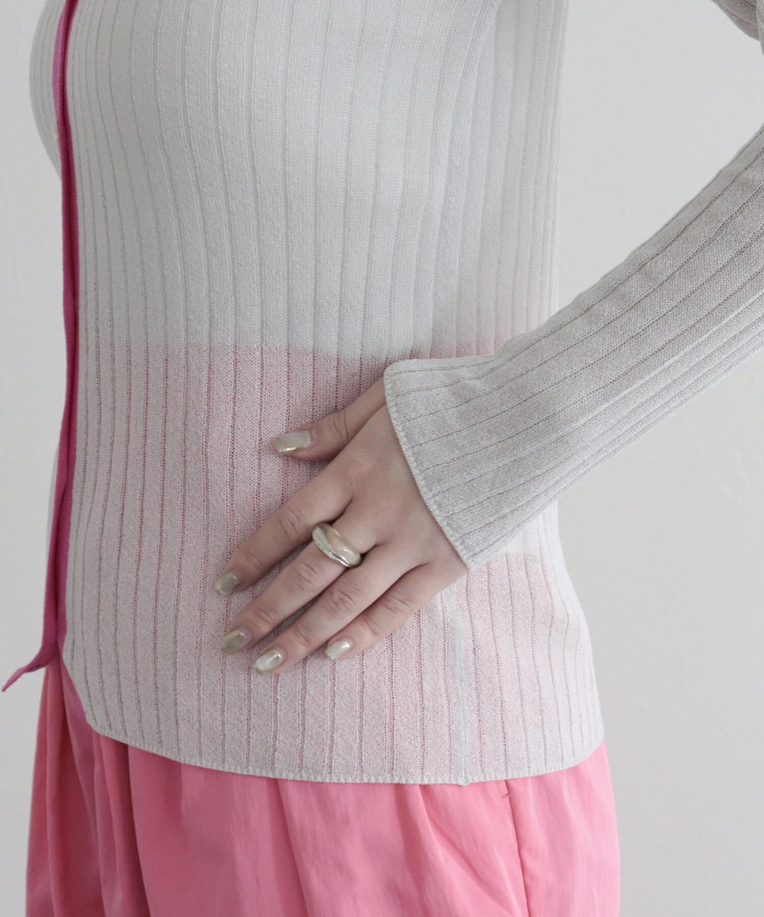 ワイドリブ配色シアーカーディガン