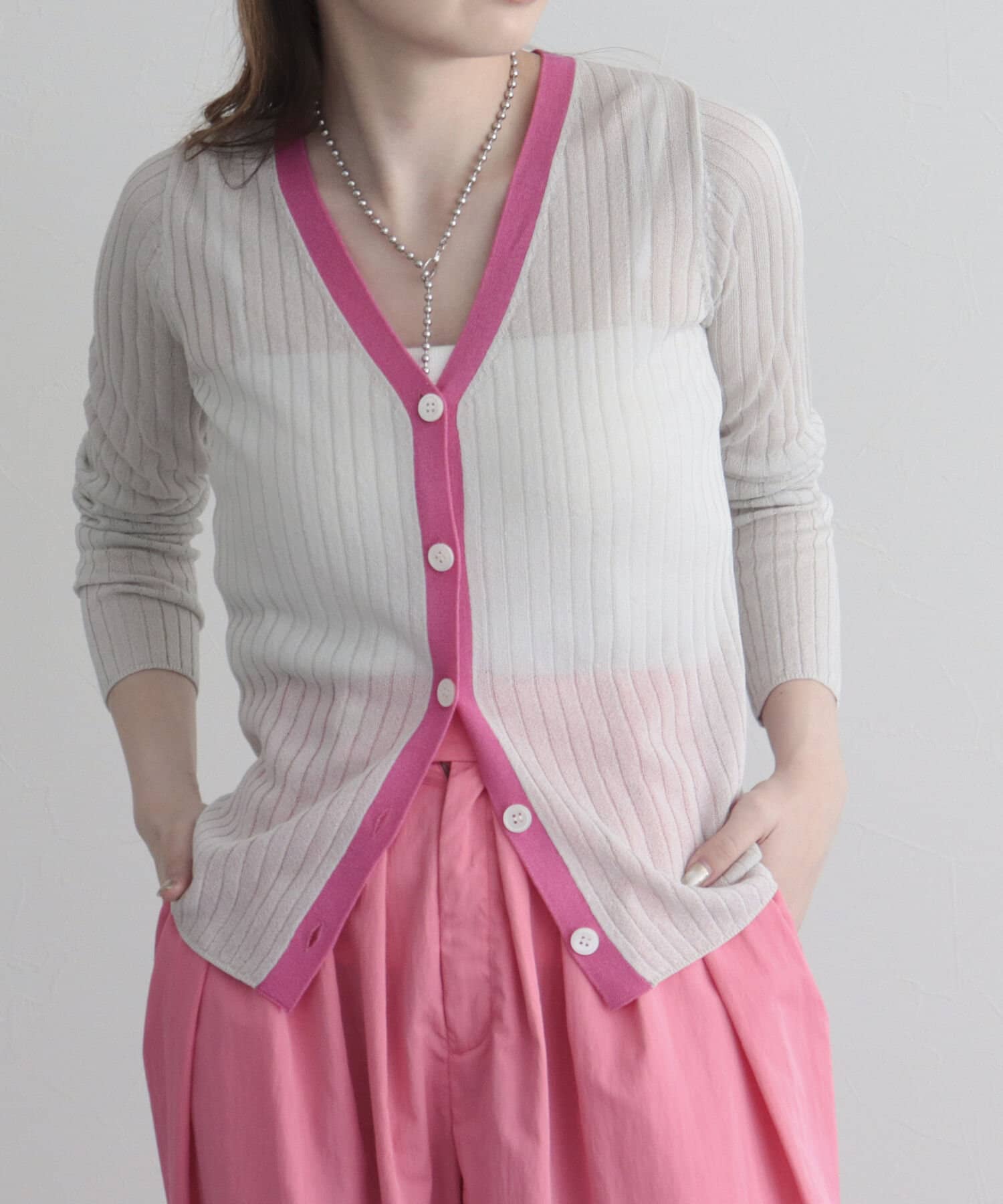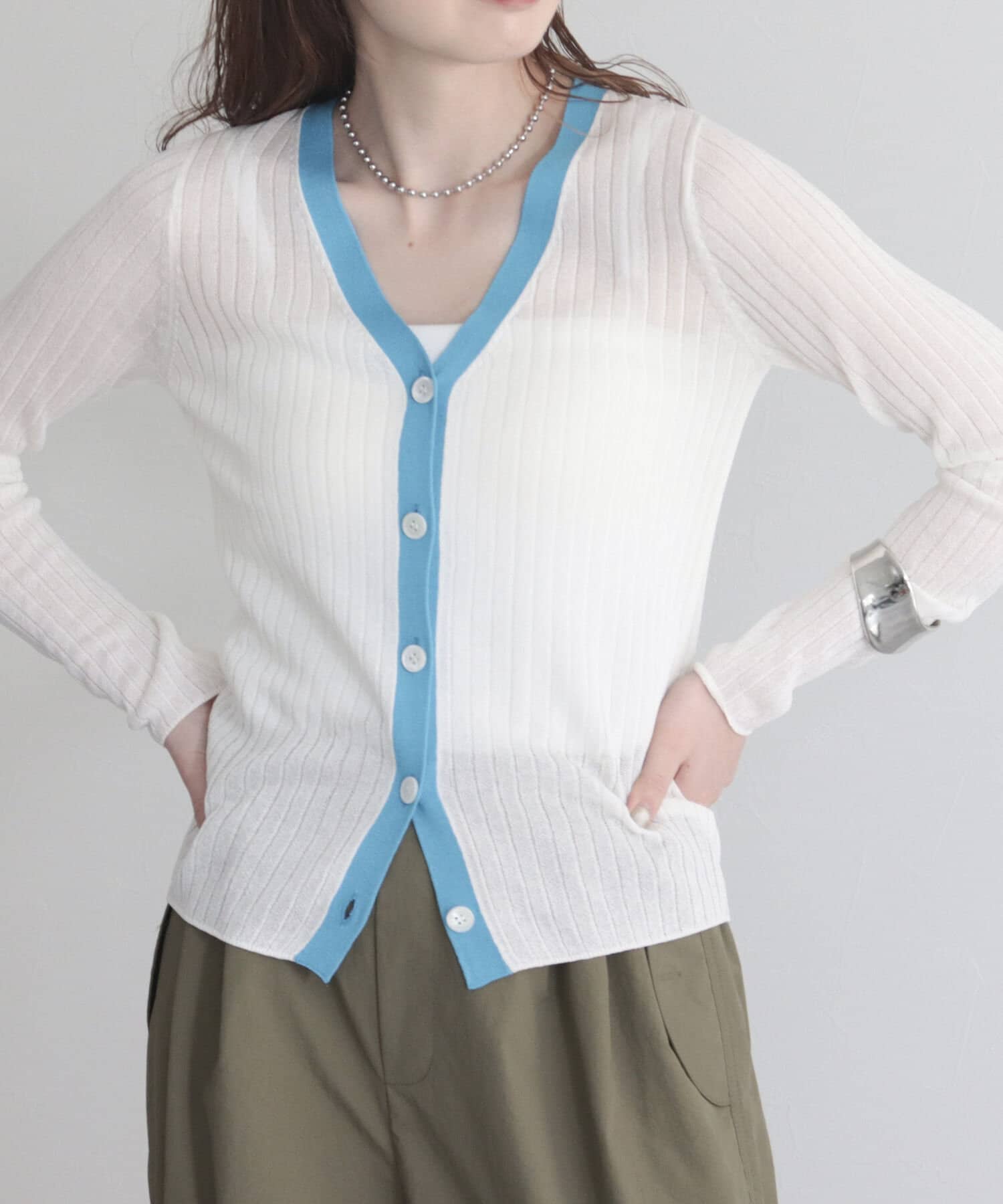 涼し気なシアー感と配色が今年らしいカーディガン