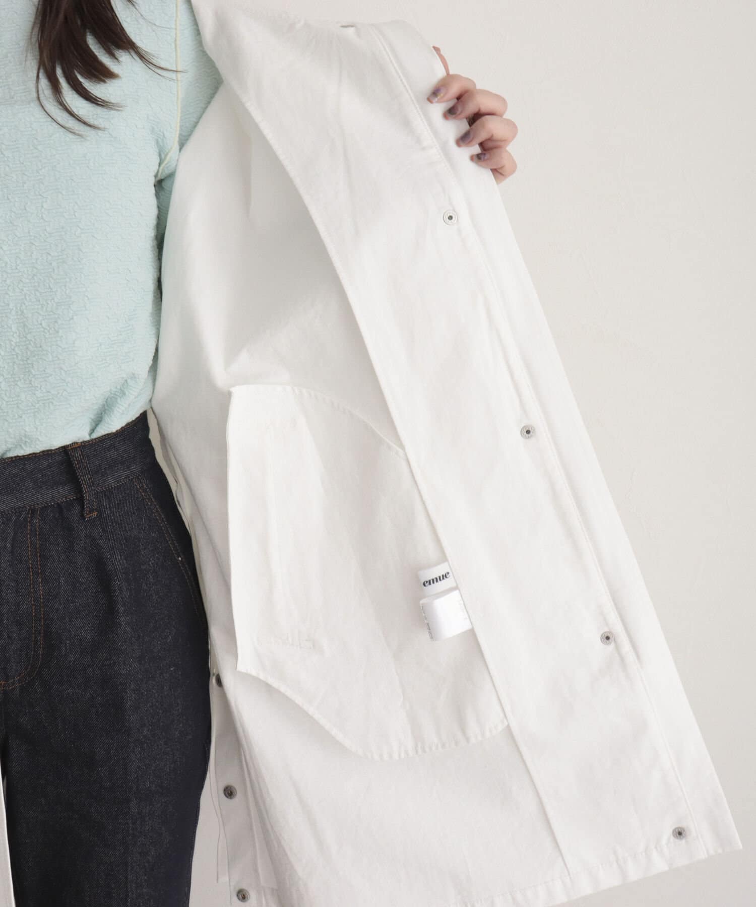 ・サイドスナップを開けるとスリットデザインのようになります