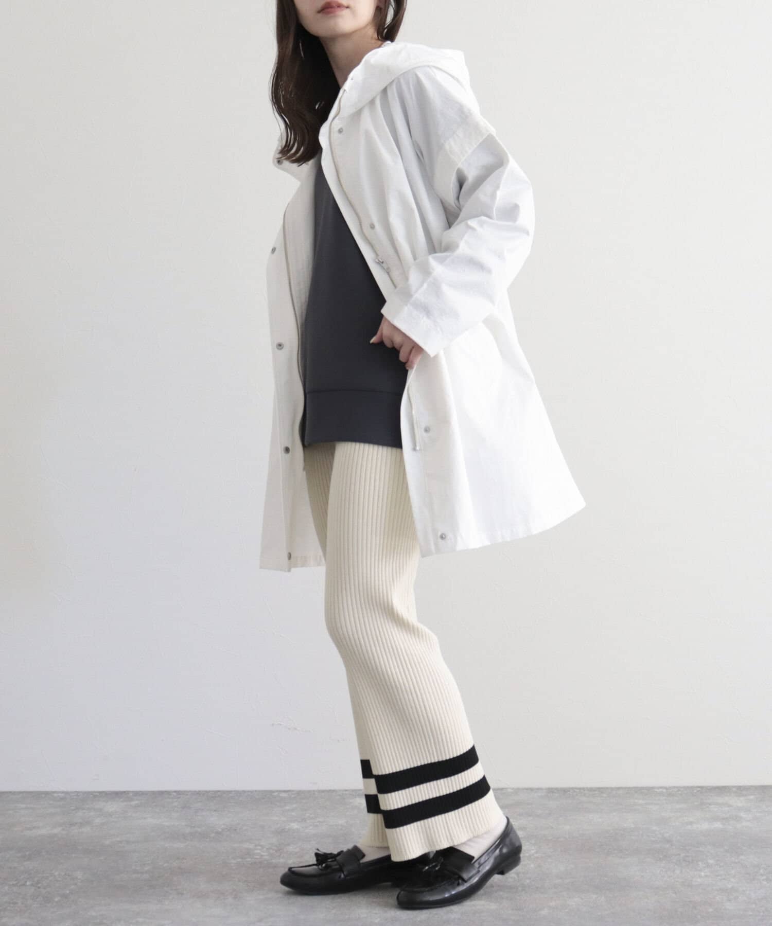 ・ゆったりとした身幅なので厚手のトップスを着込めるのも嬉しいポイント◎