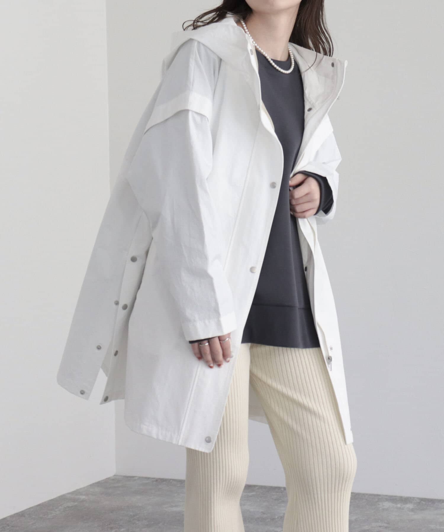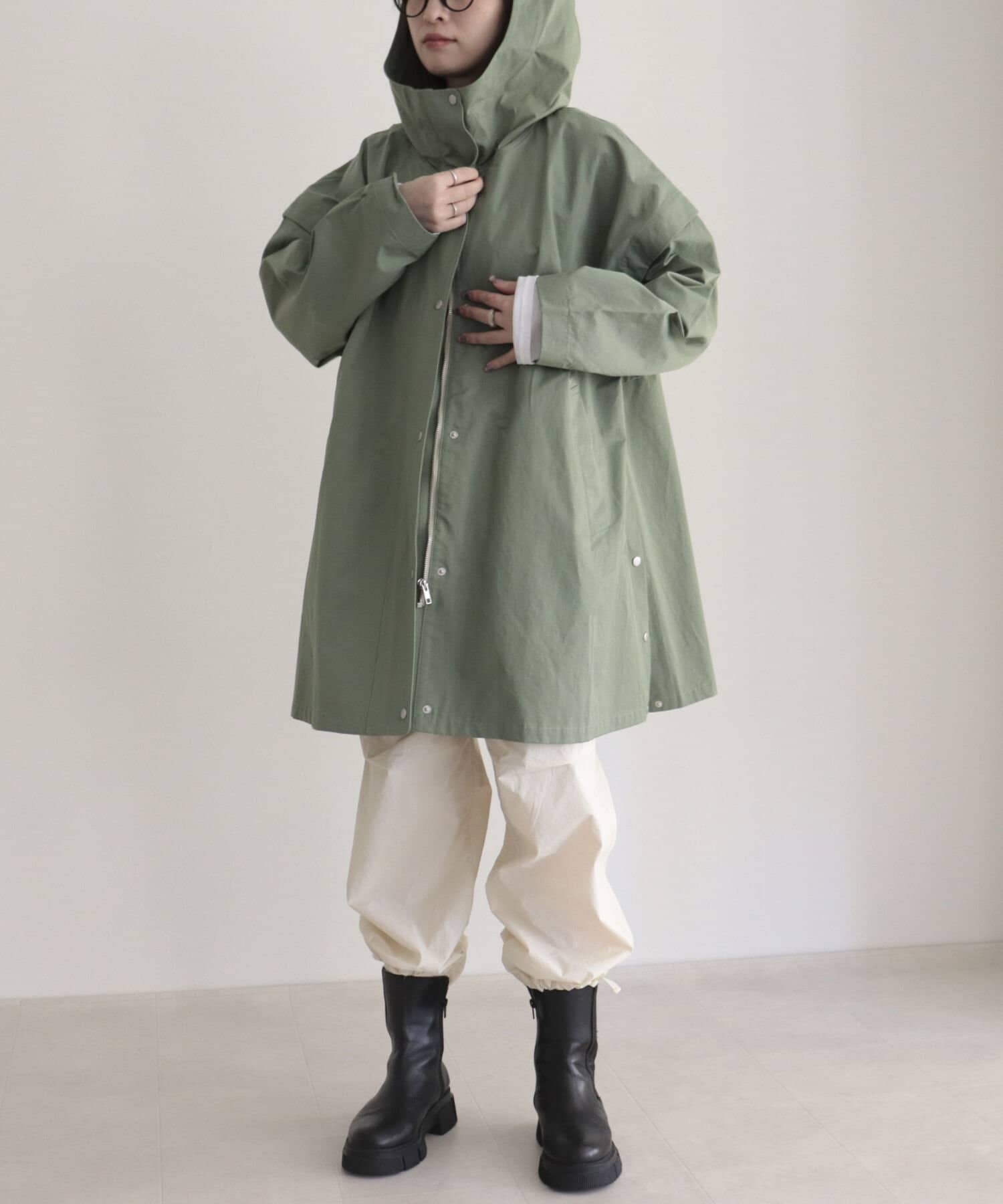 ・生地に適度なハリ感があり、フードがしっかり立つフォルム