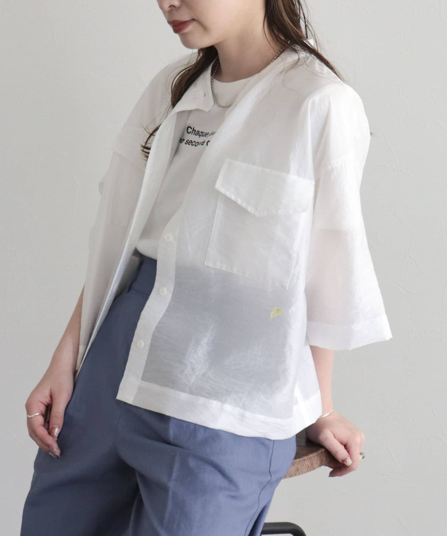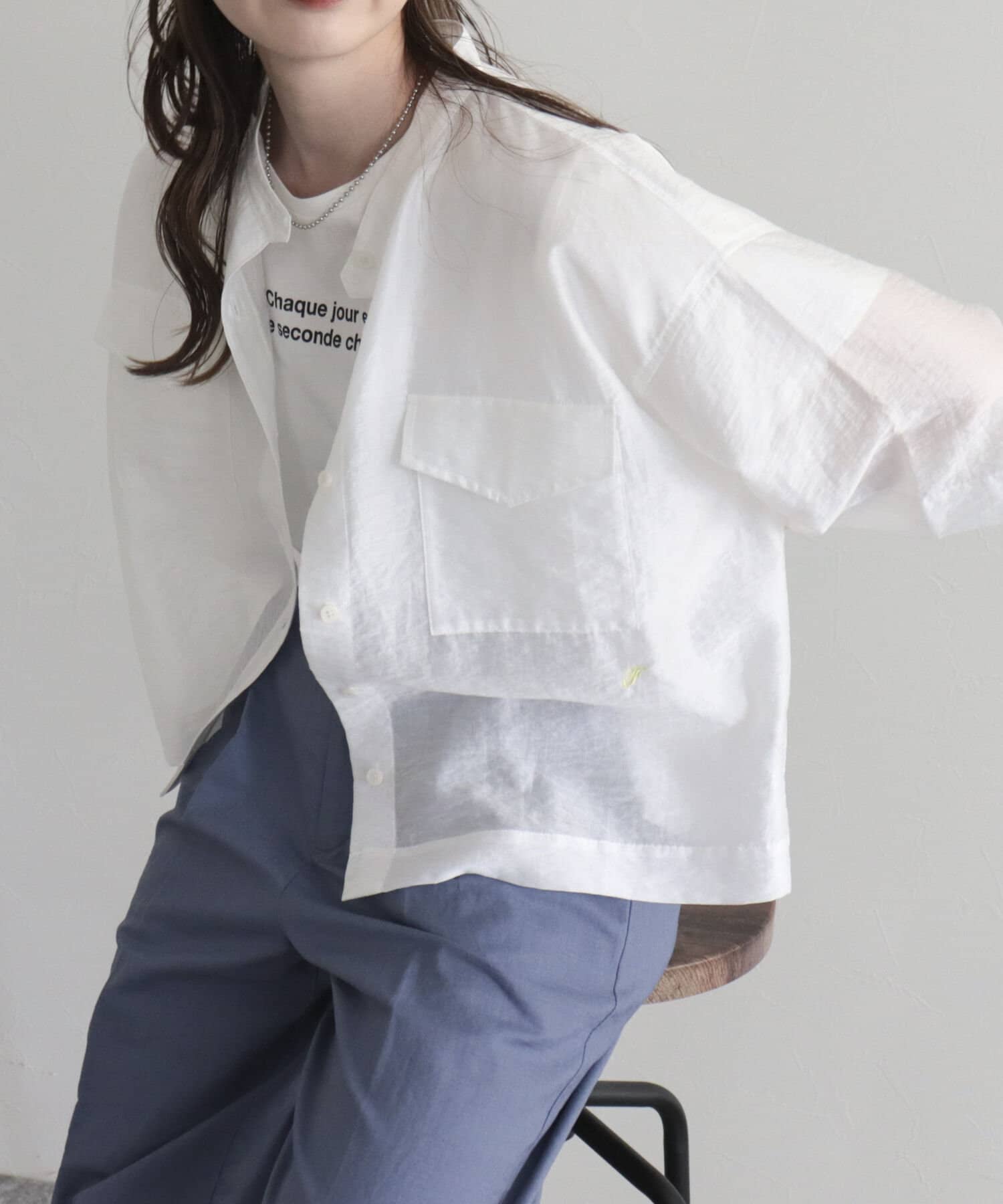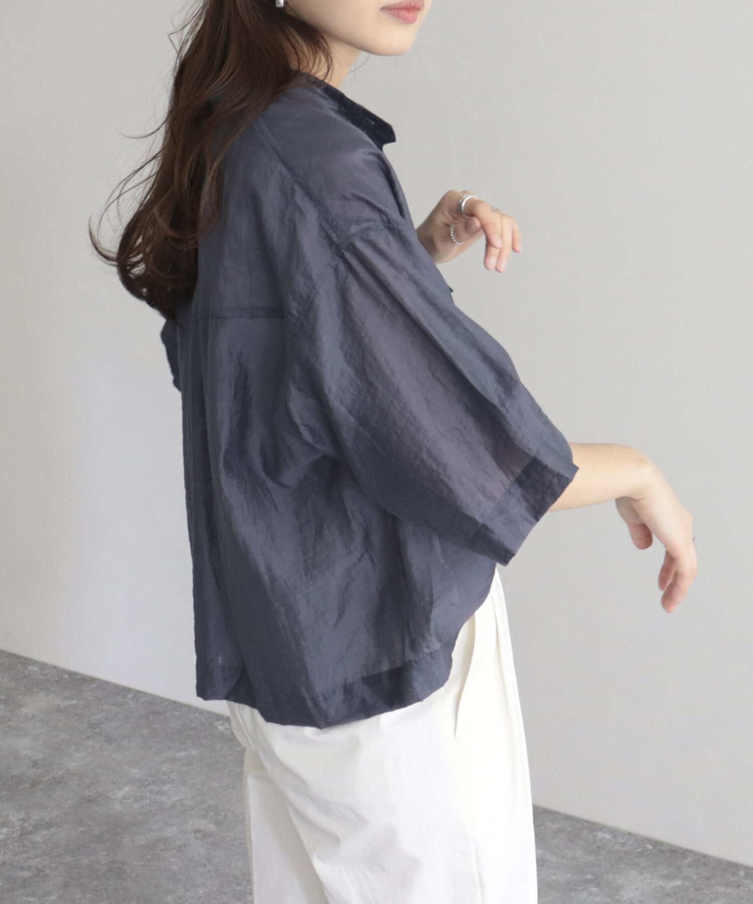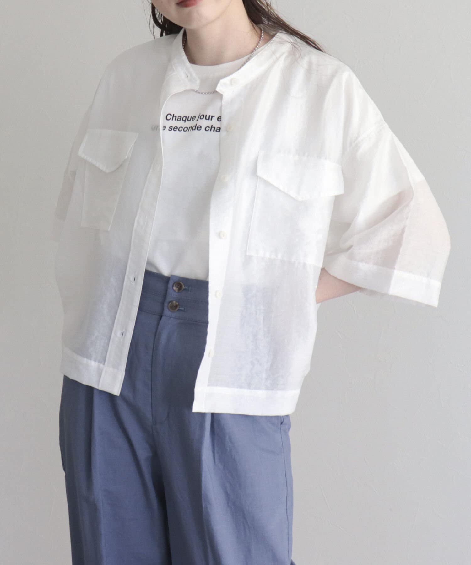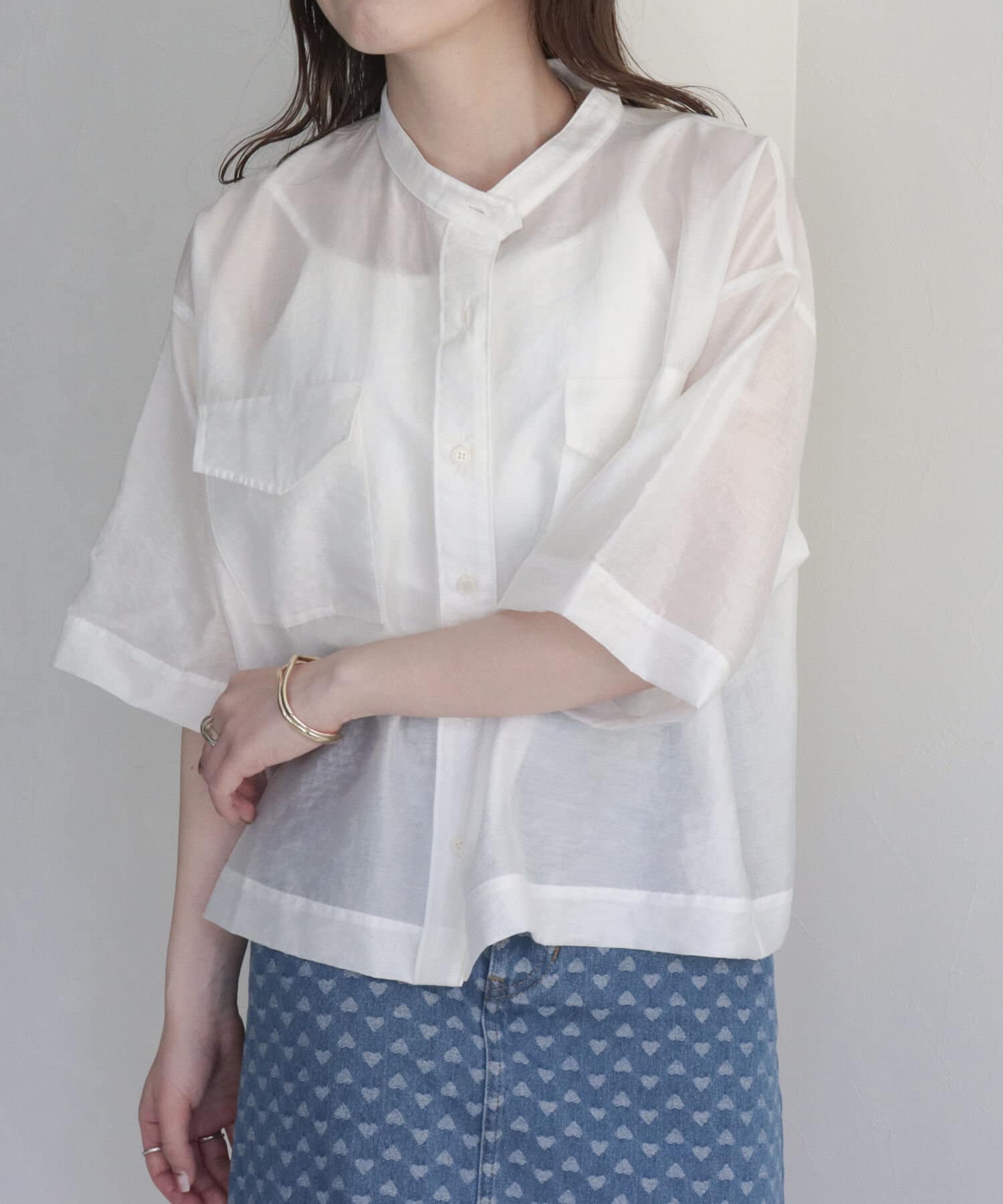 絶妙な透け感でリラクシームード漂う半袖シアーシャツ