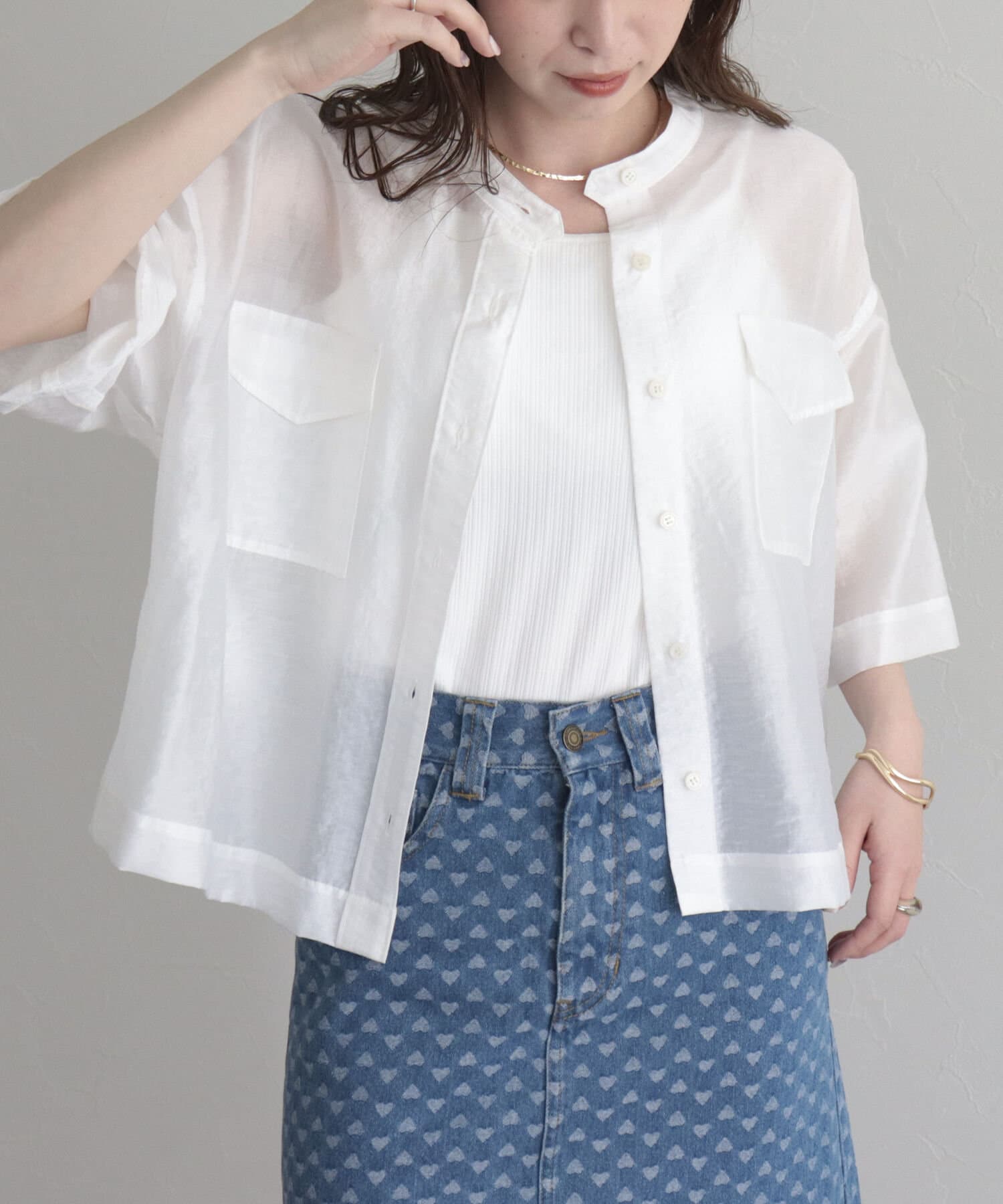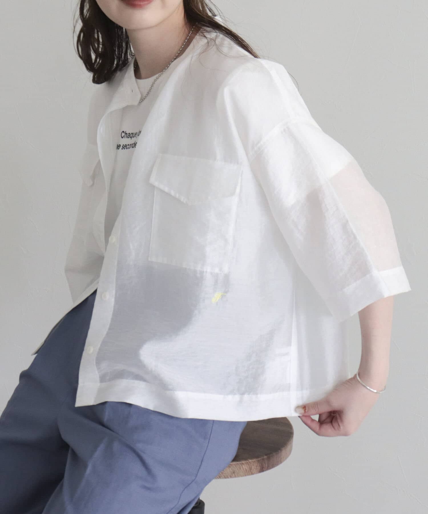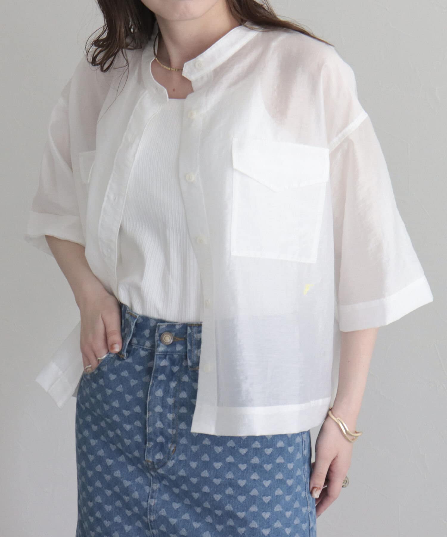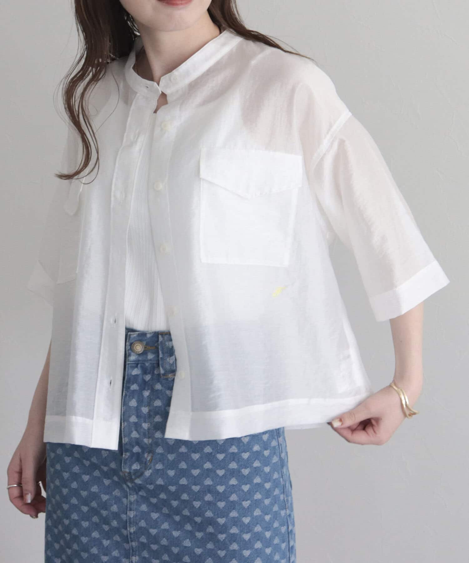 絶妙な透け感でリラクシームード漂う半袖シアーシャツ