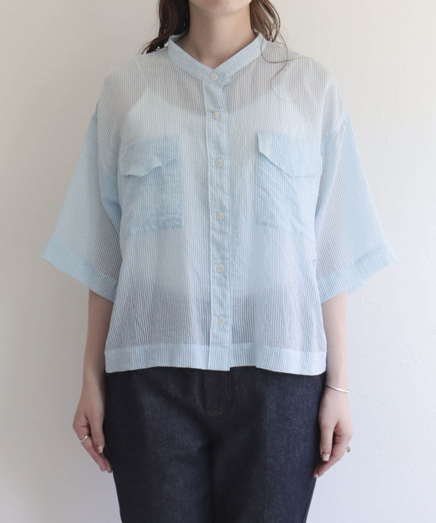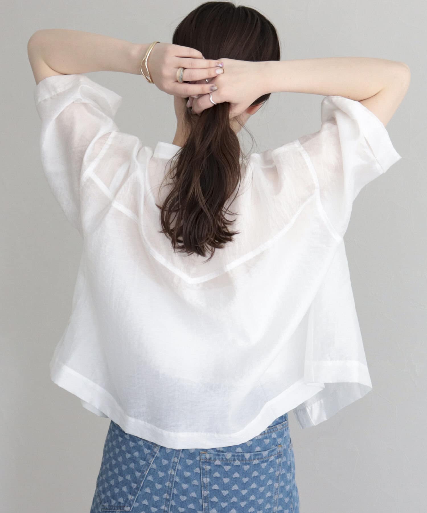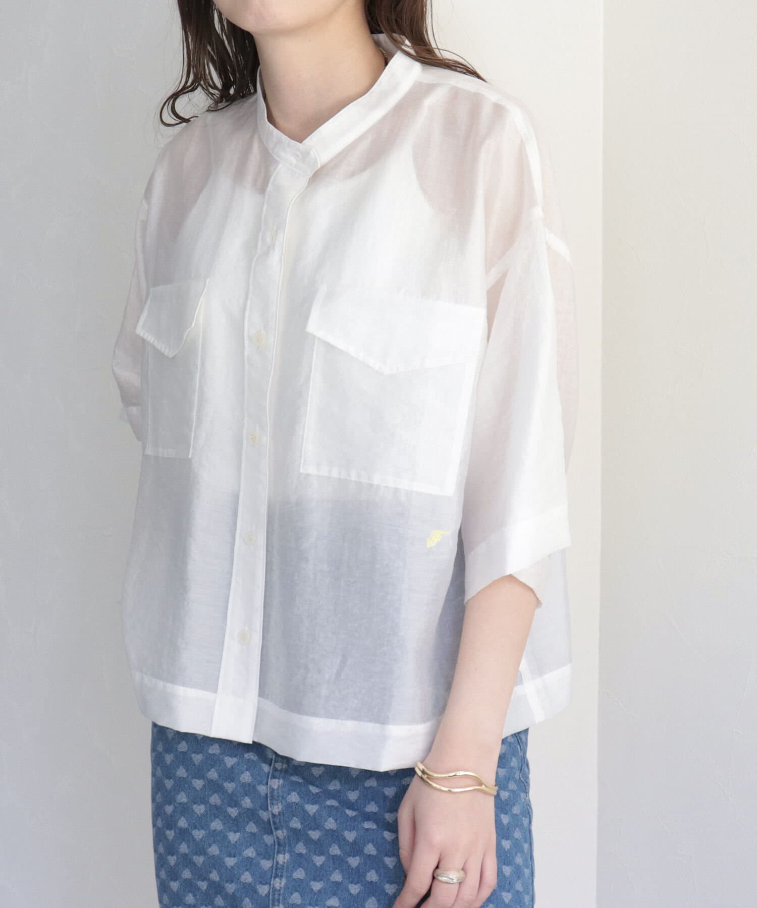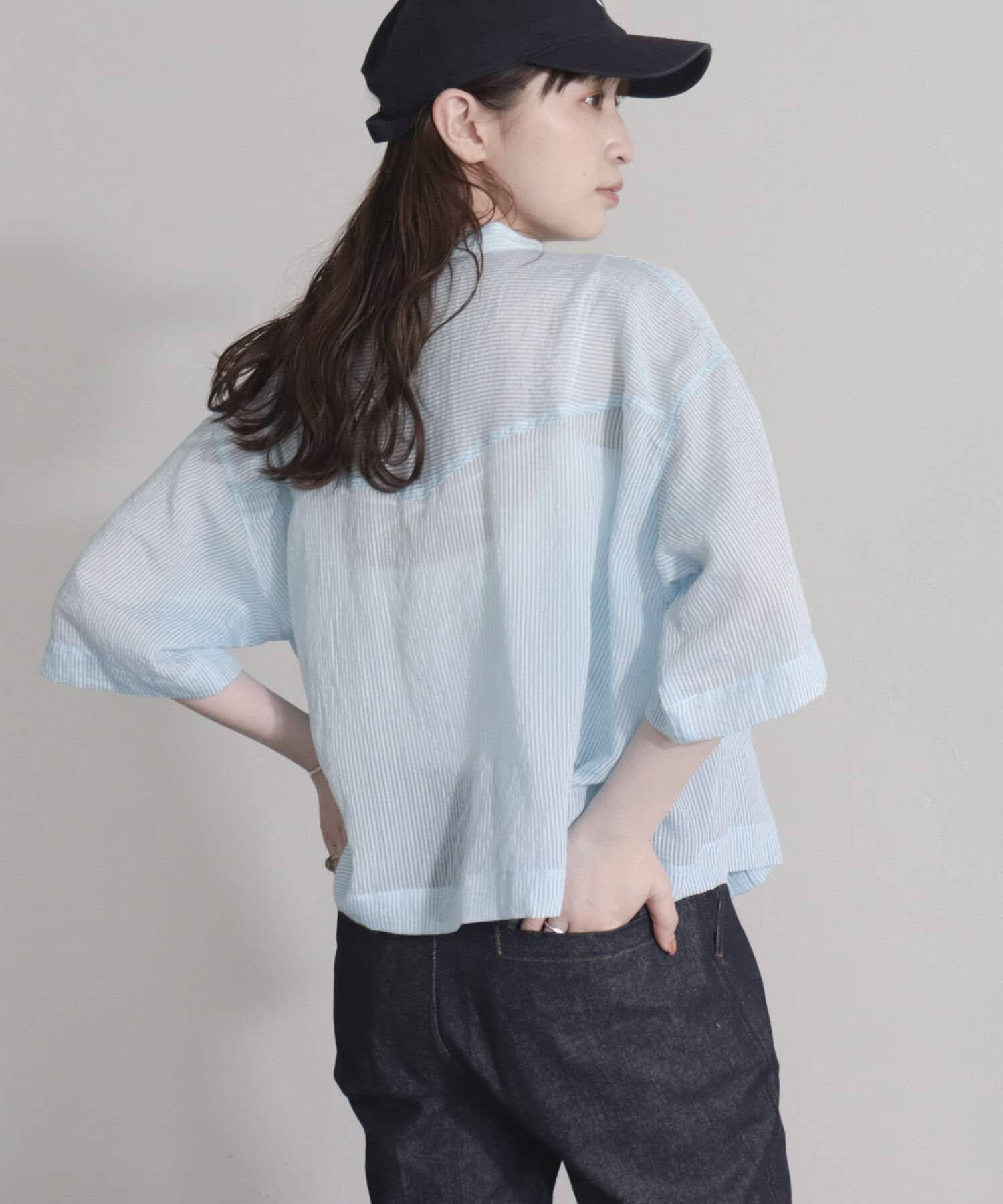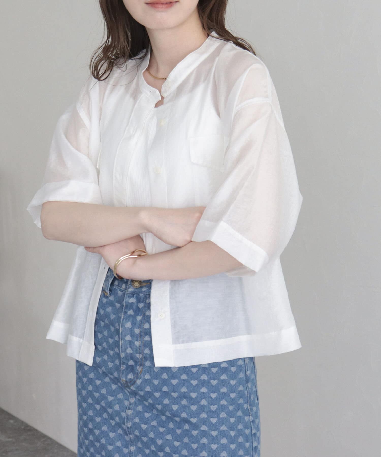 絶妙な透け感でリラクシームード漂う半袖シアーシャツ
