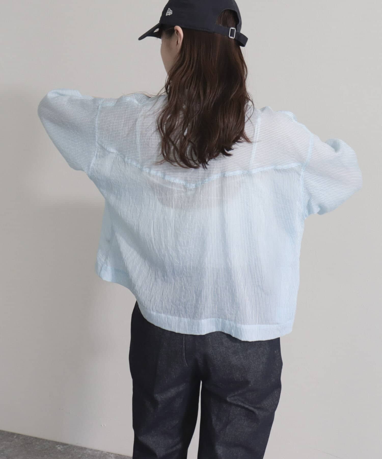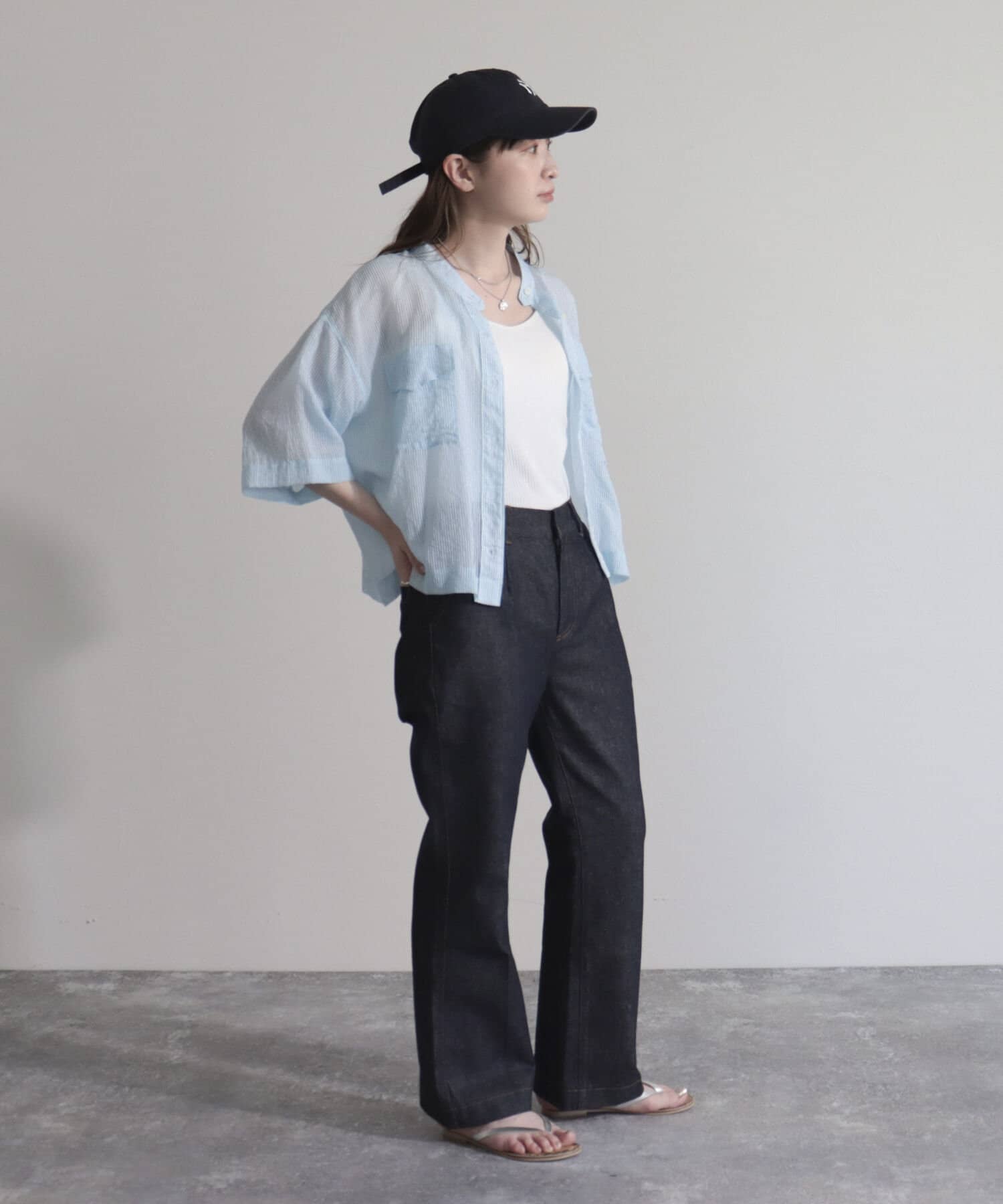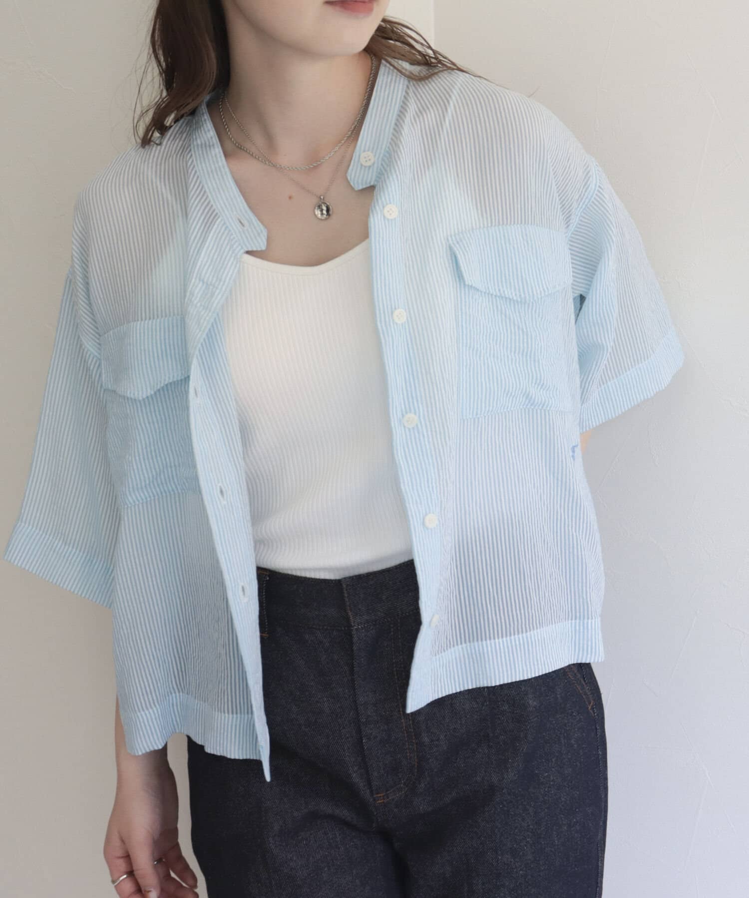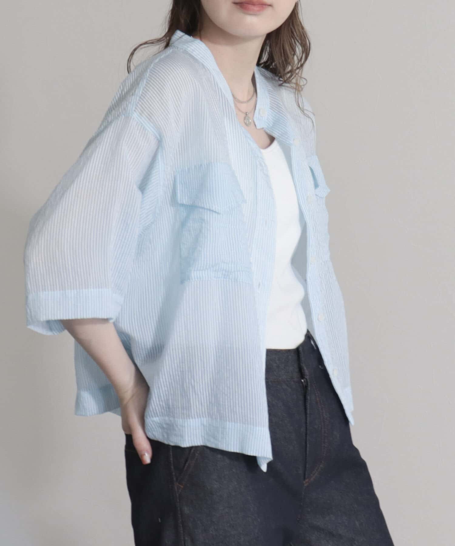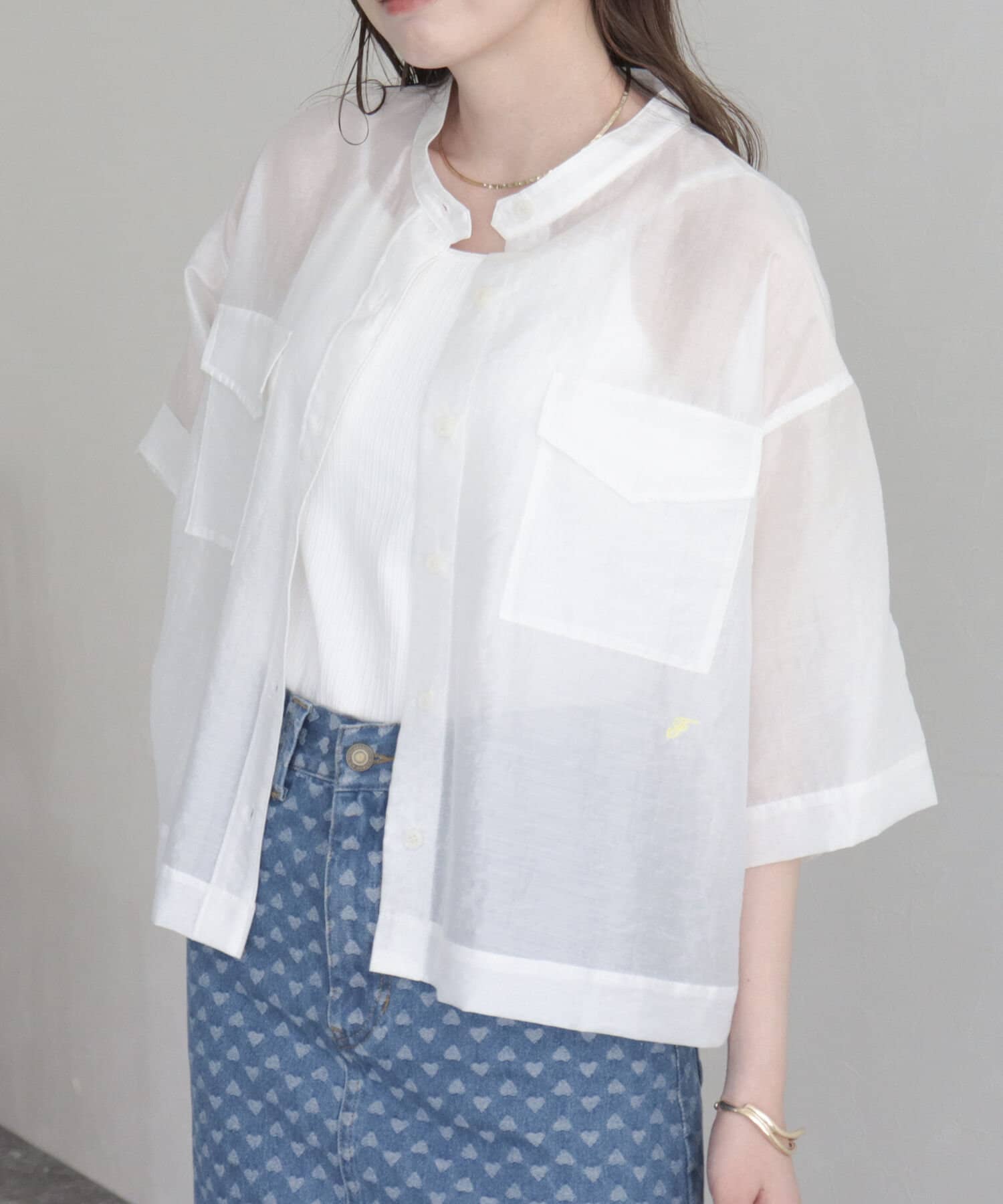 絶妙な透け感でリラクシームード漂う半袖シアーシャツ