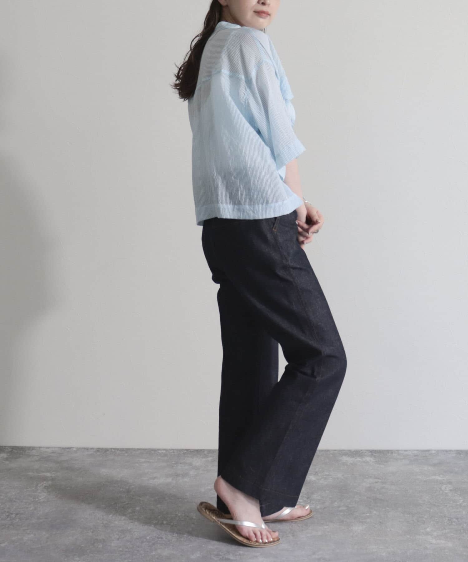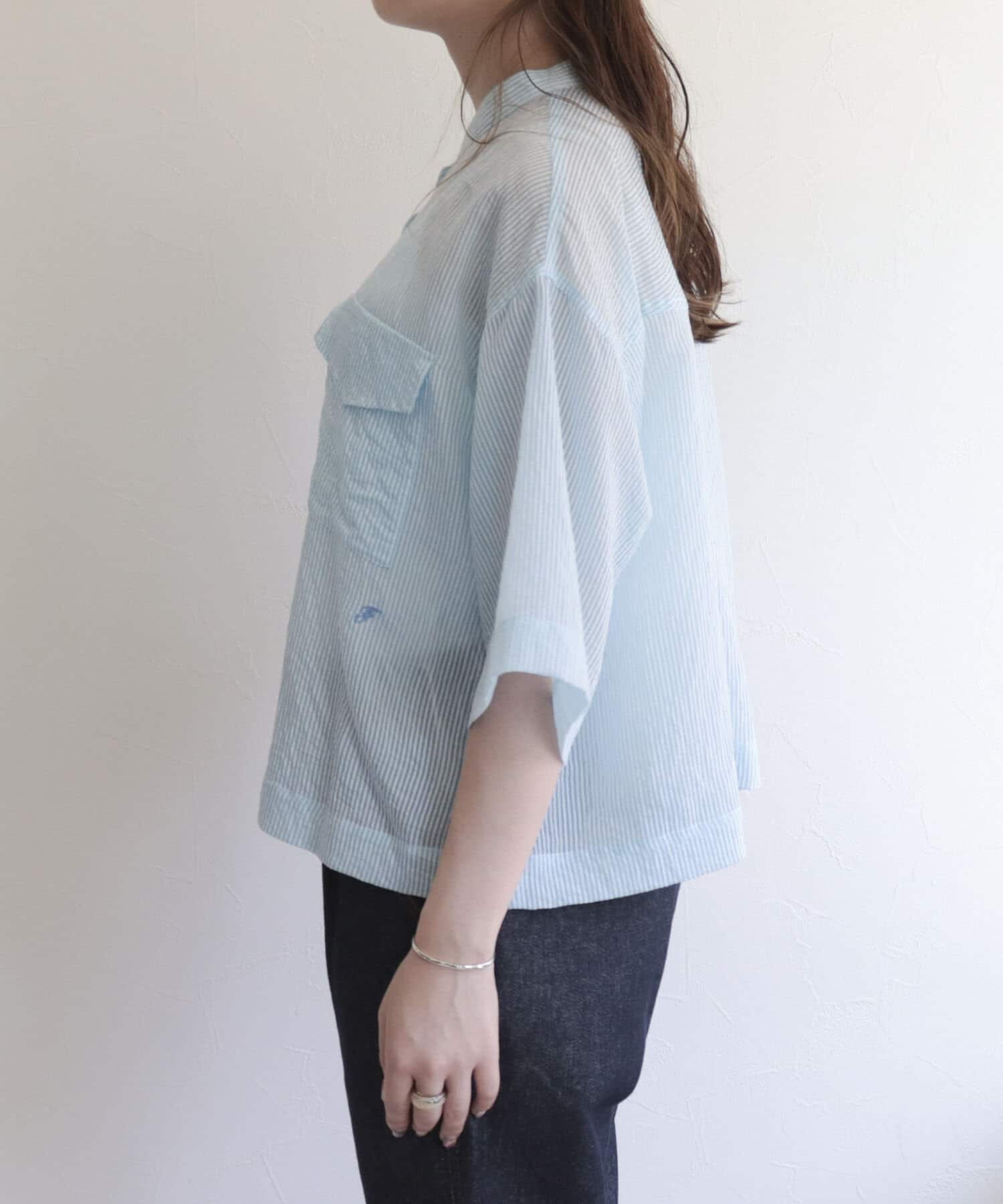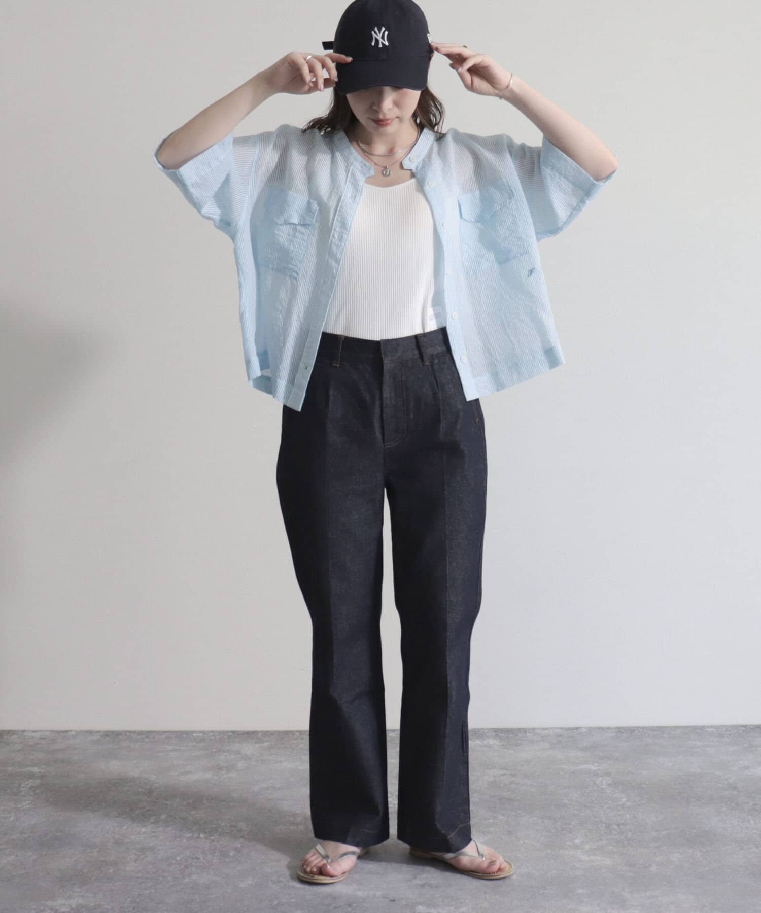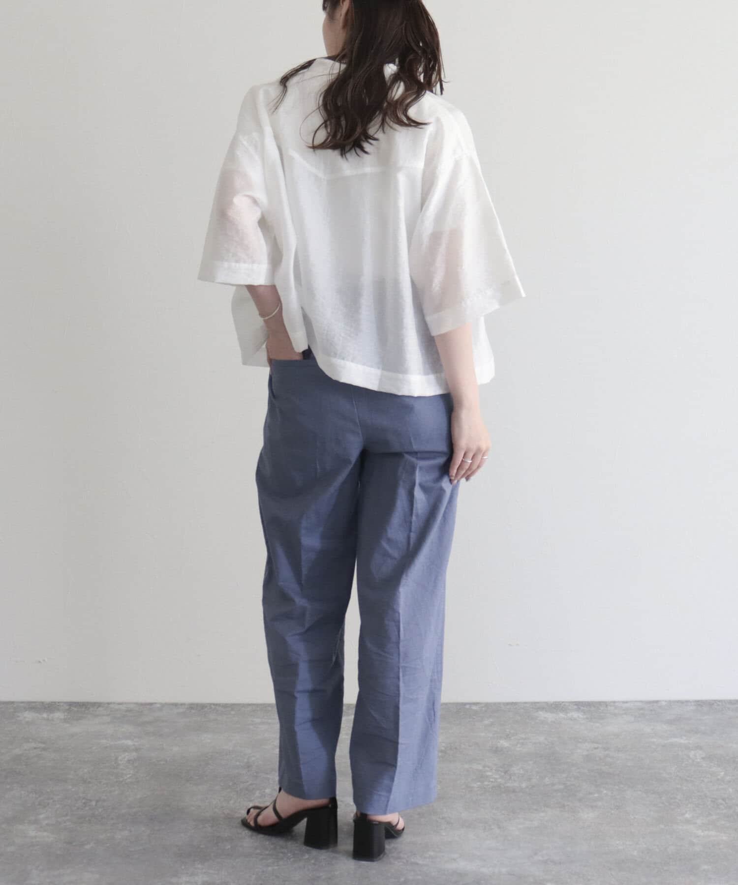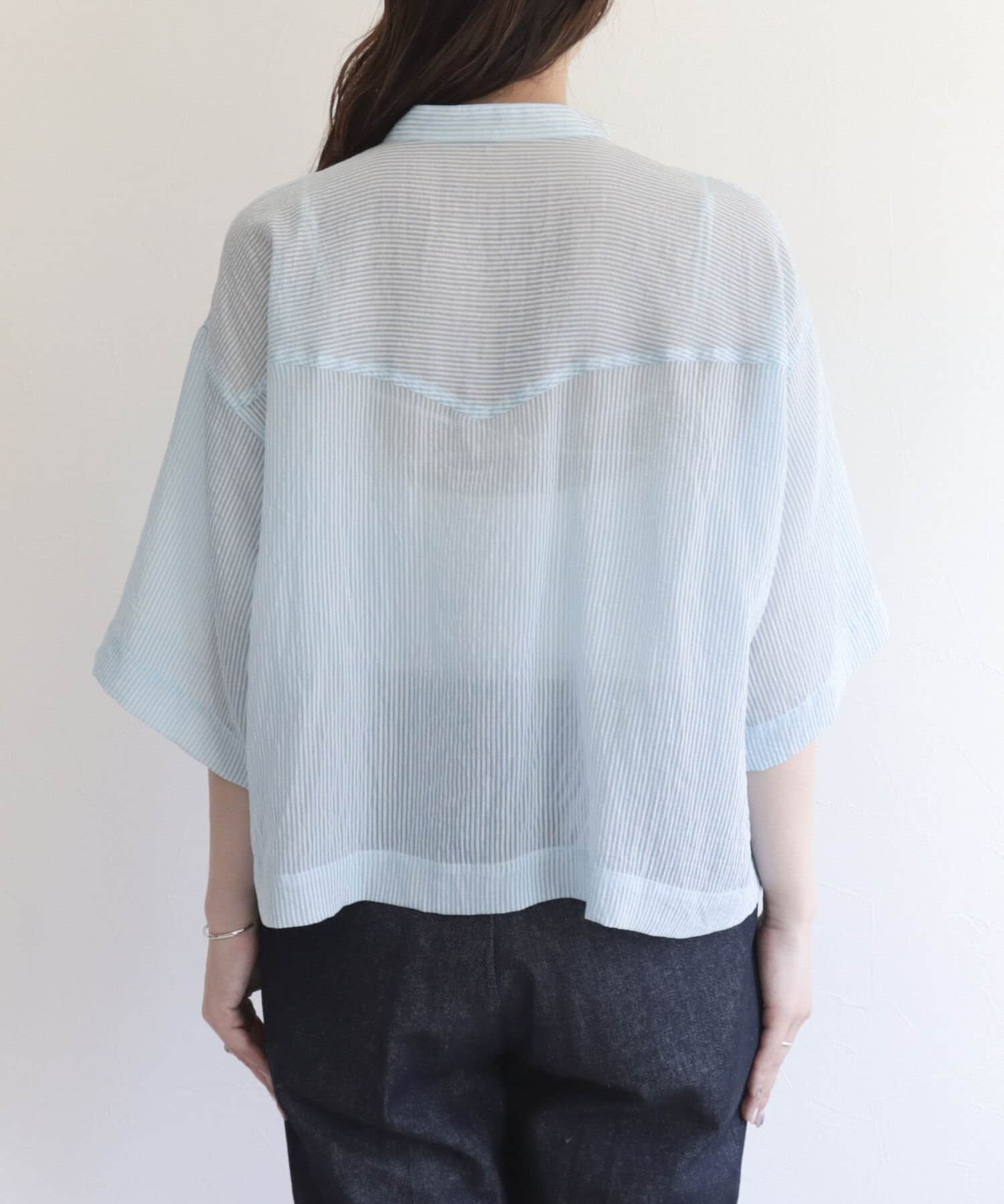 絶妙な透け感でリラクシームード漂う半袖シアーシャツ