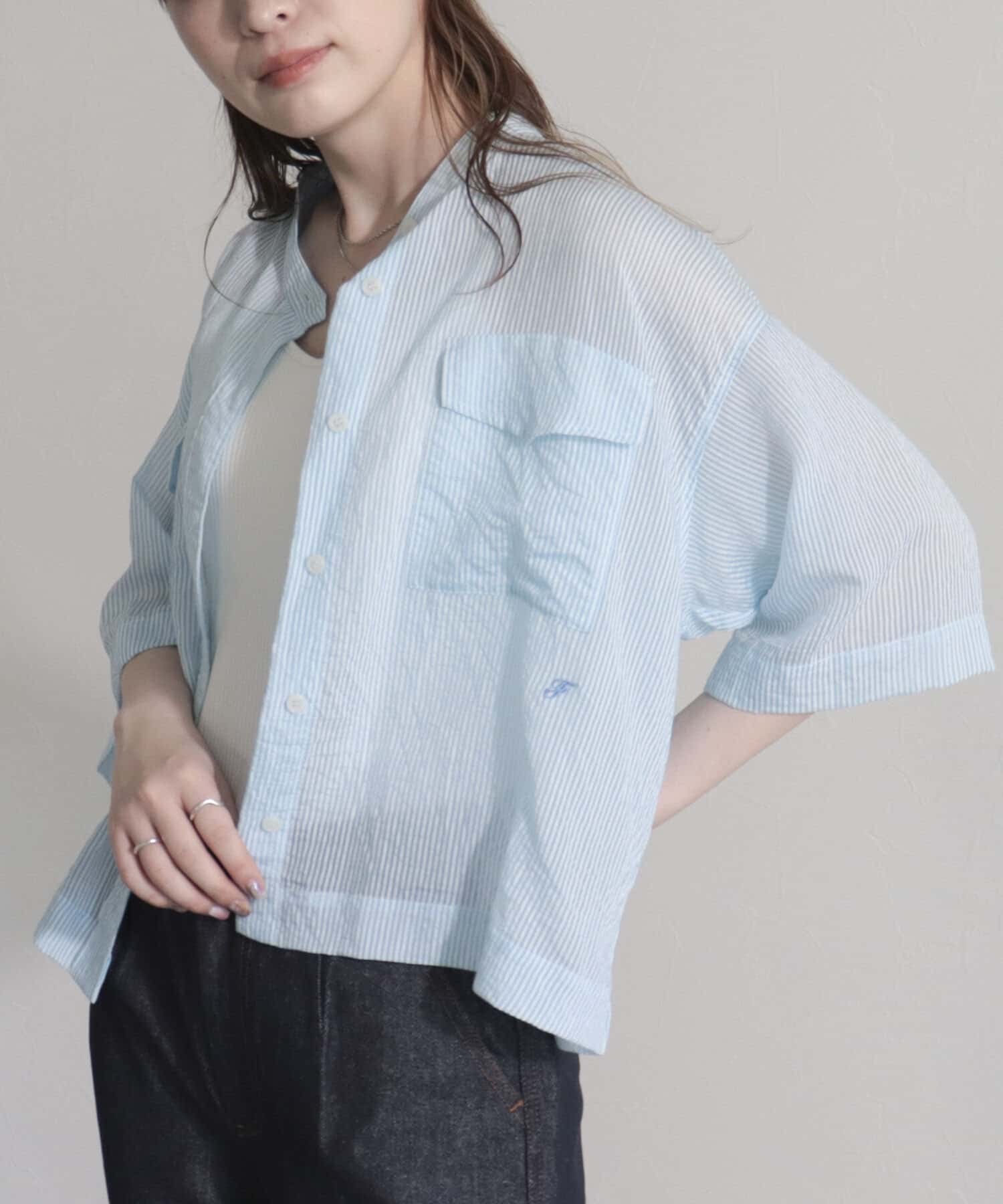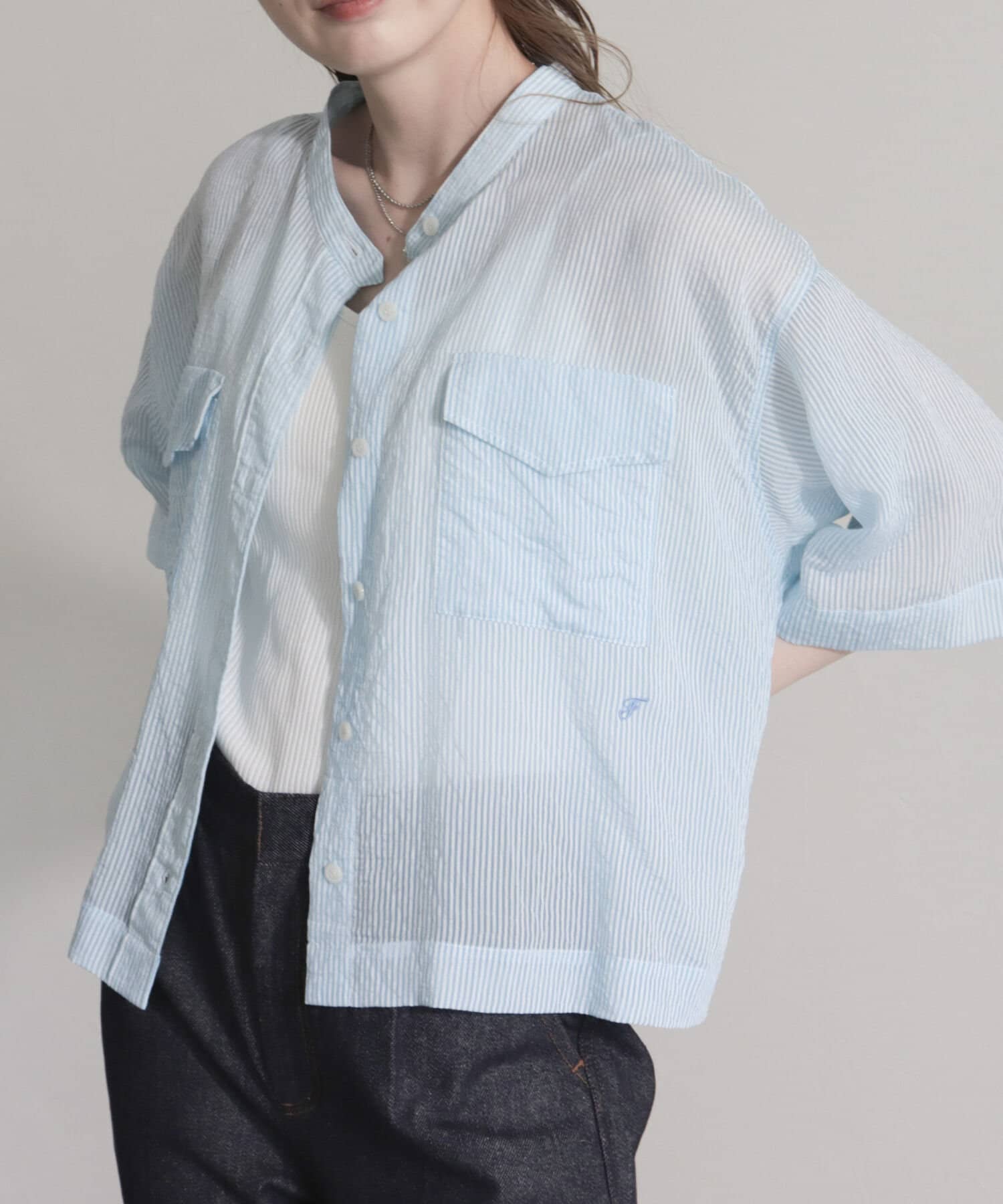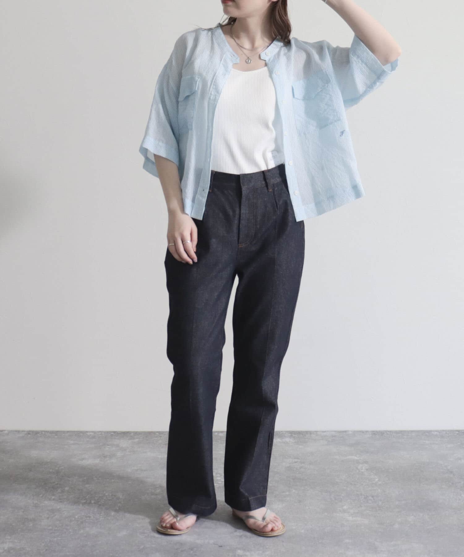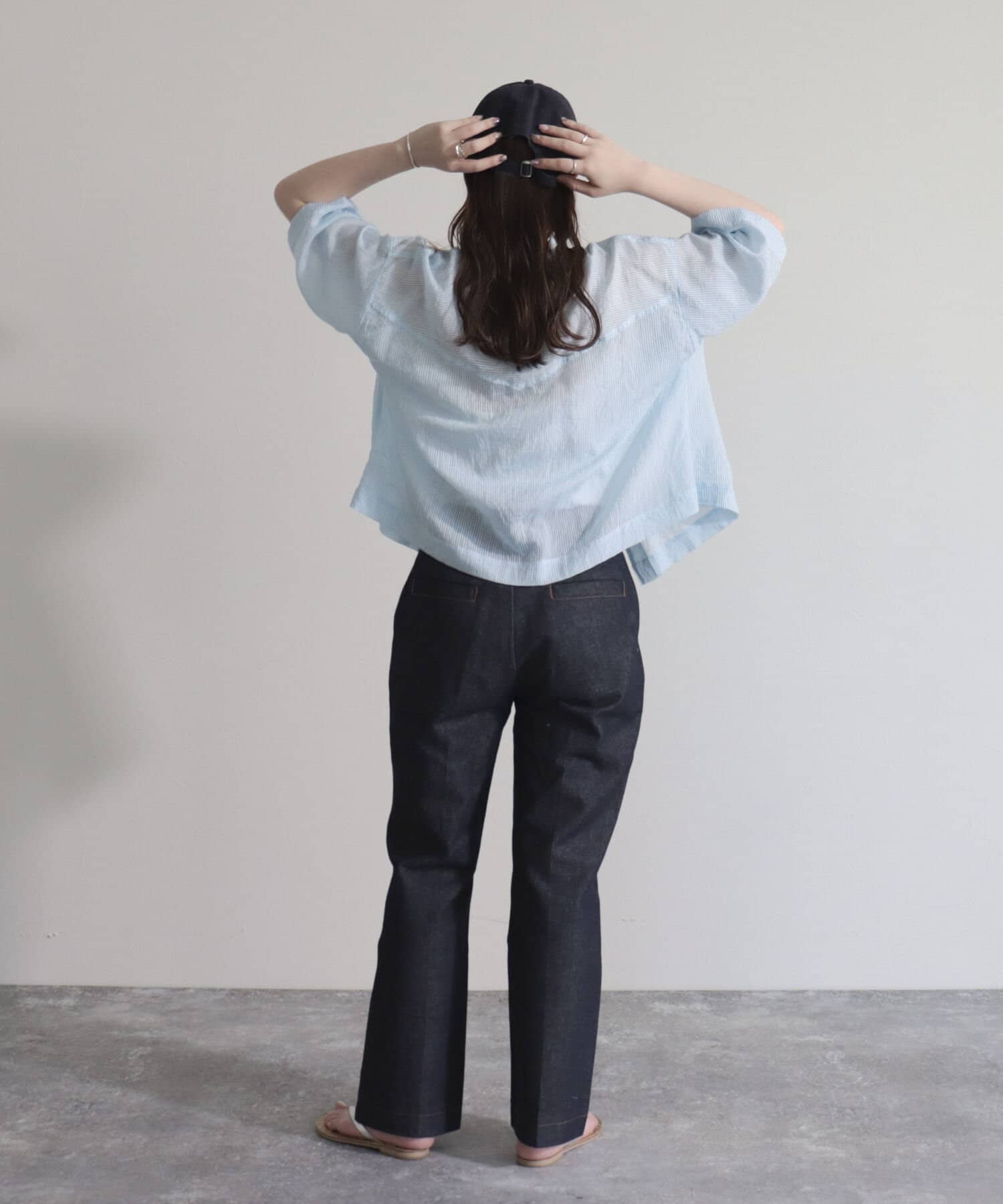 絶妙な透け感でリラクシームード漂う半袖シアーシャツ