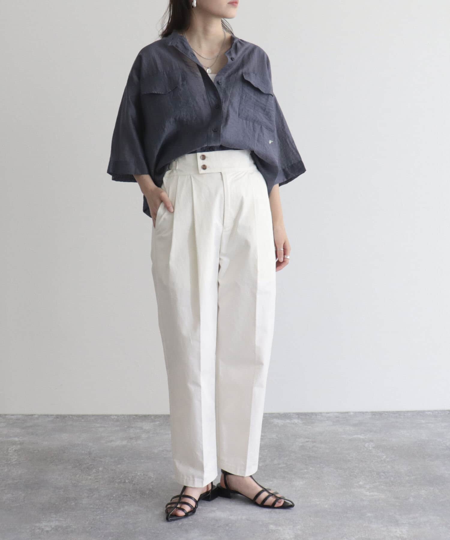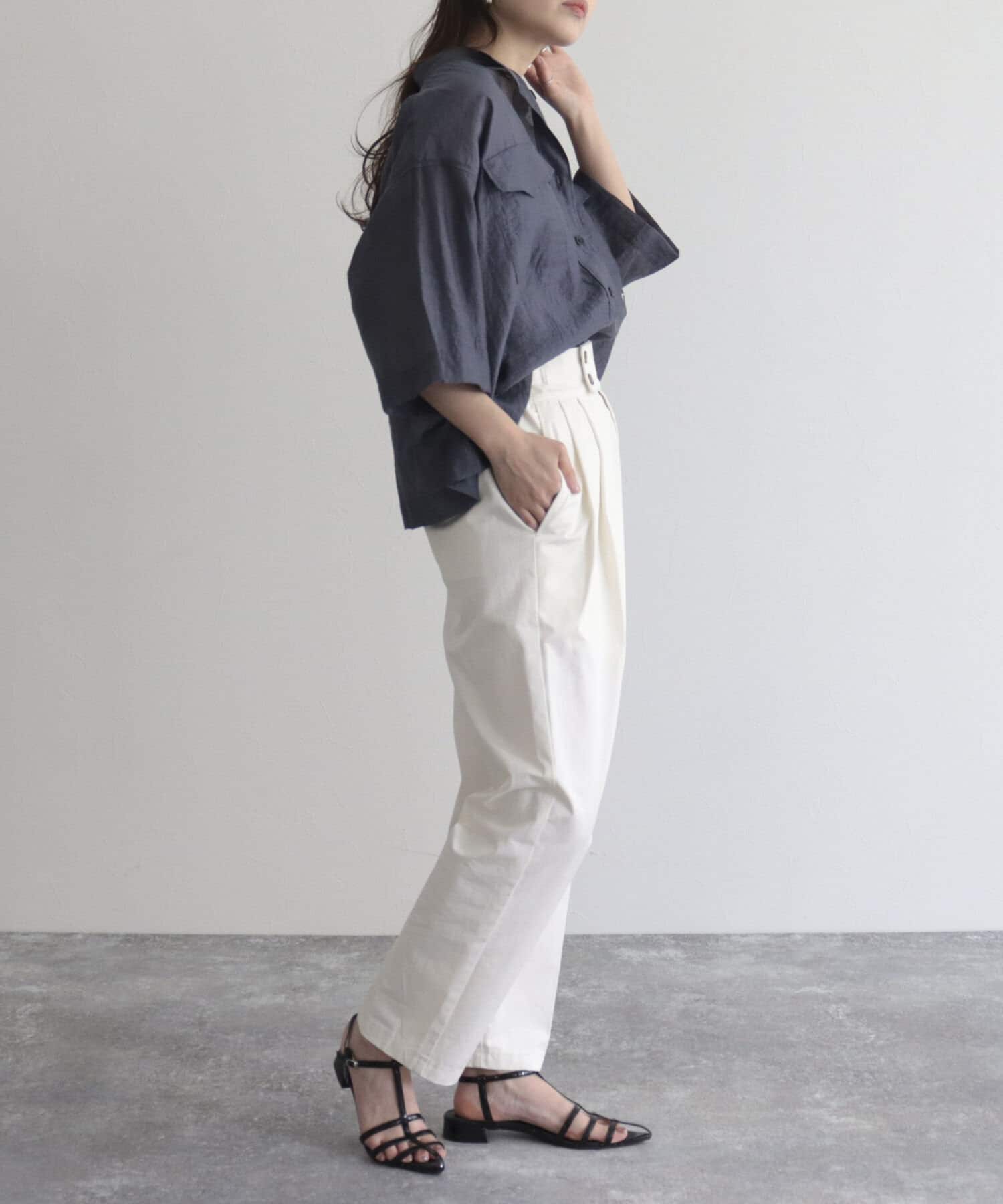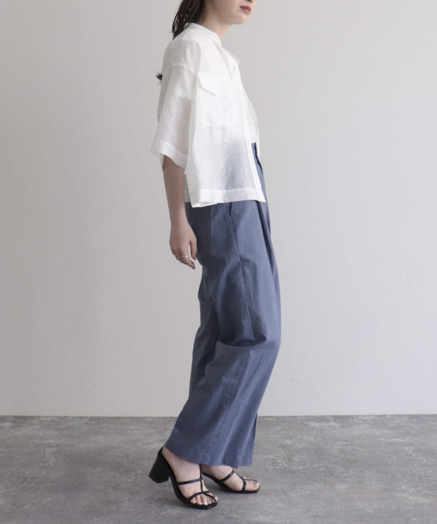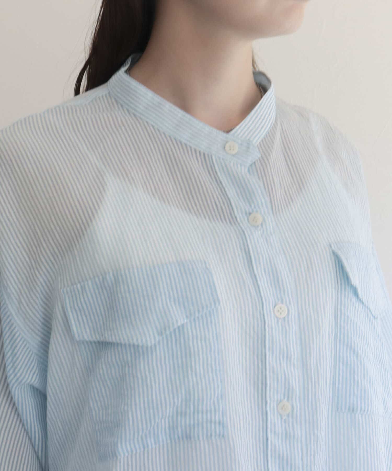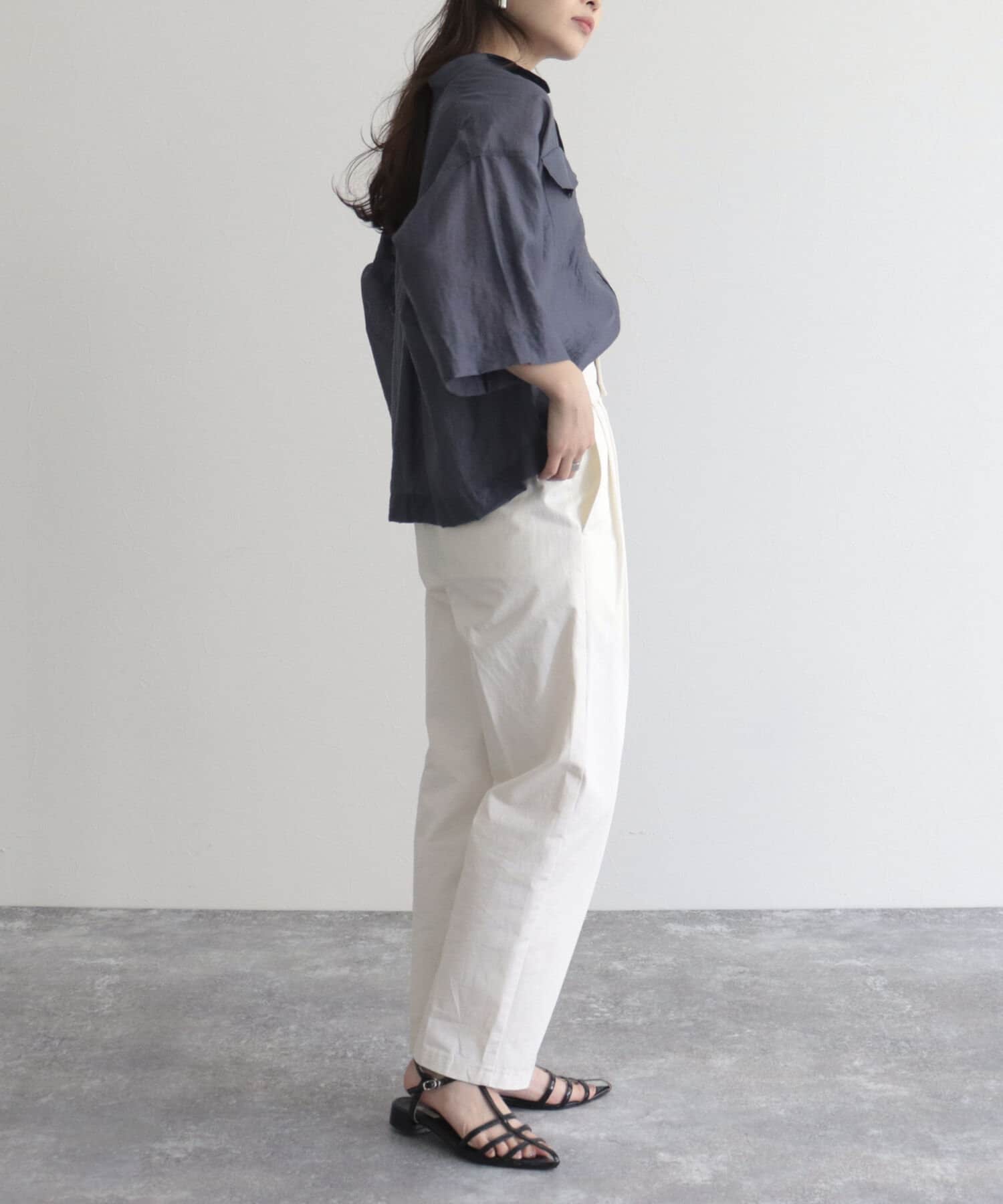 絶妙な透け感でリラクシームード漂う半袖シアーシャツ