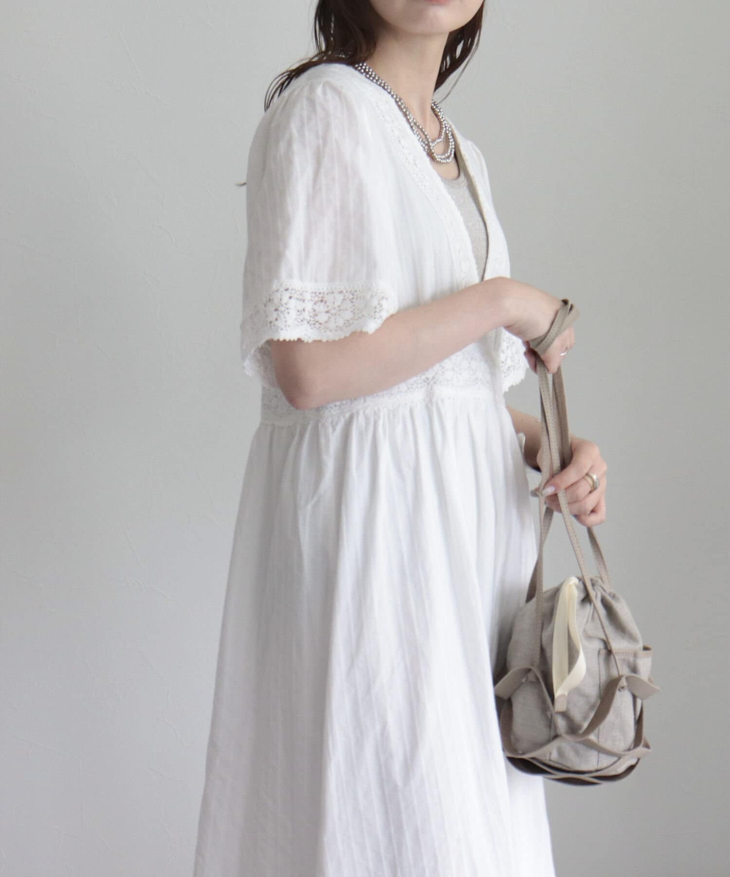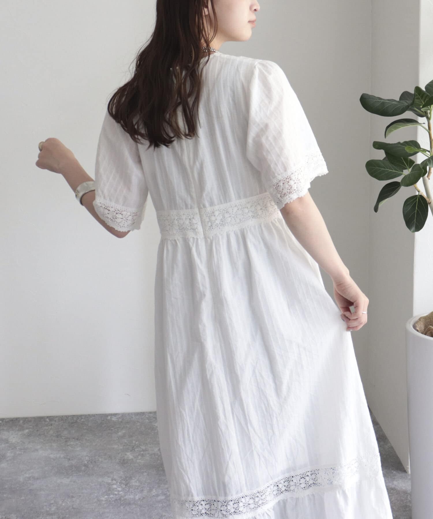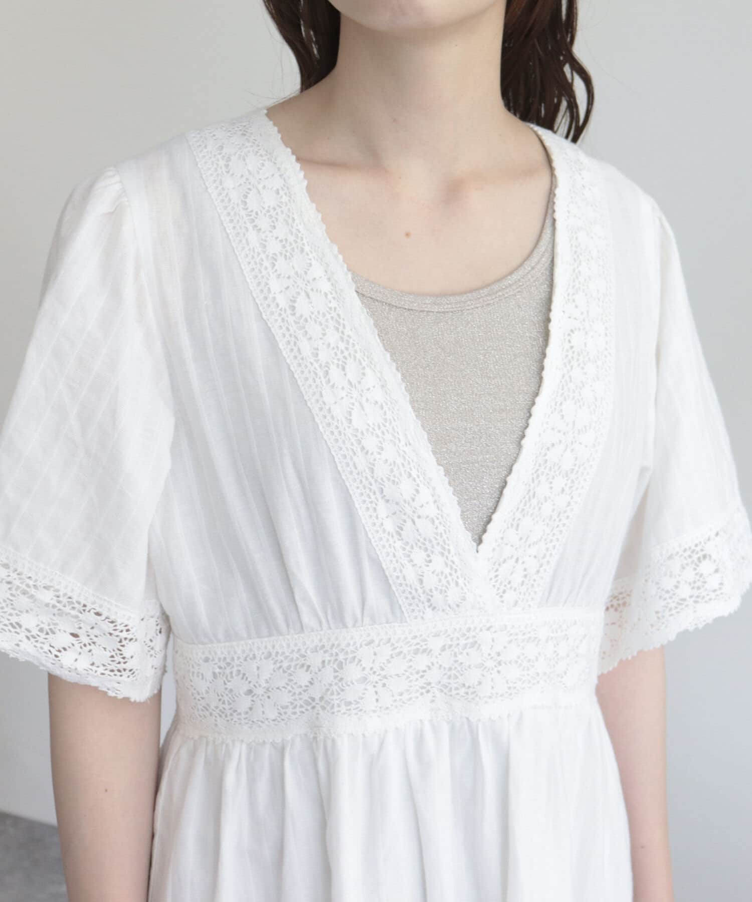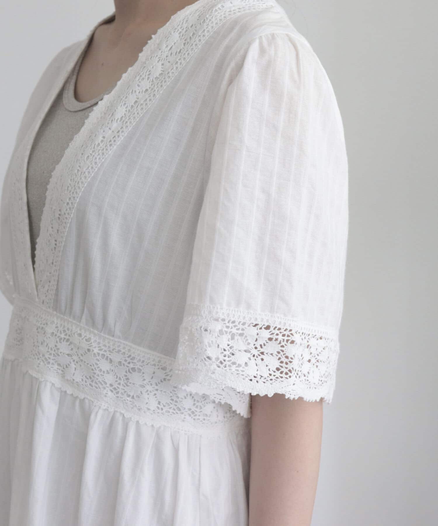 ・コットンのドビー素材とレースを組み合わせたヴィンテージ風ワンピース