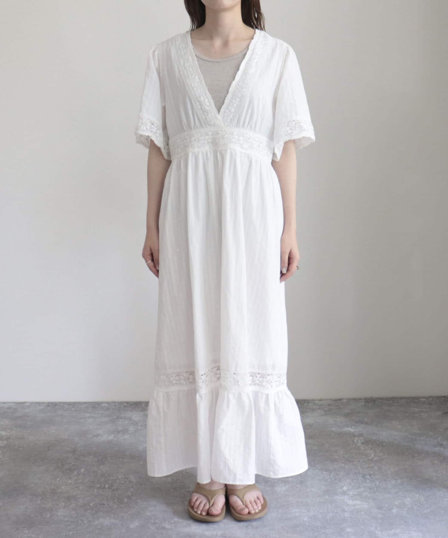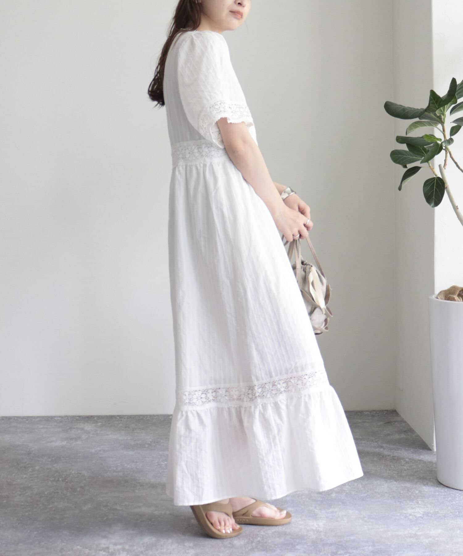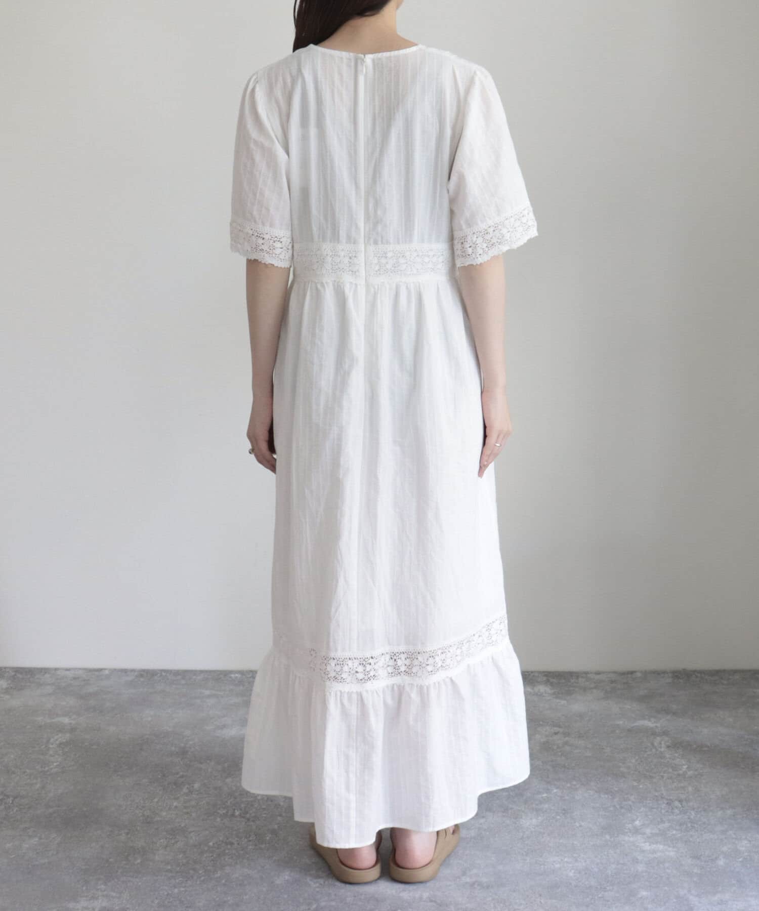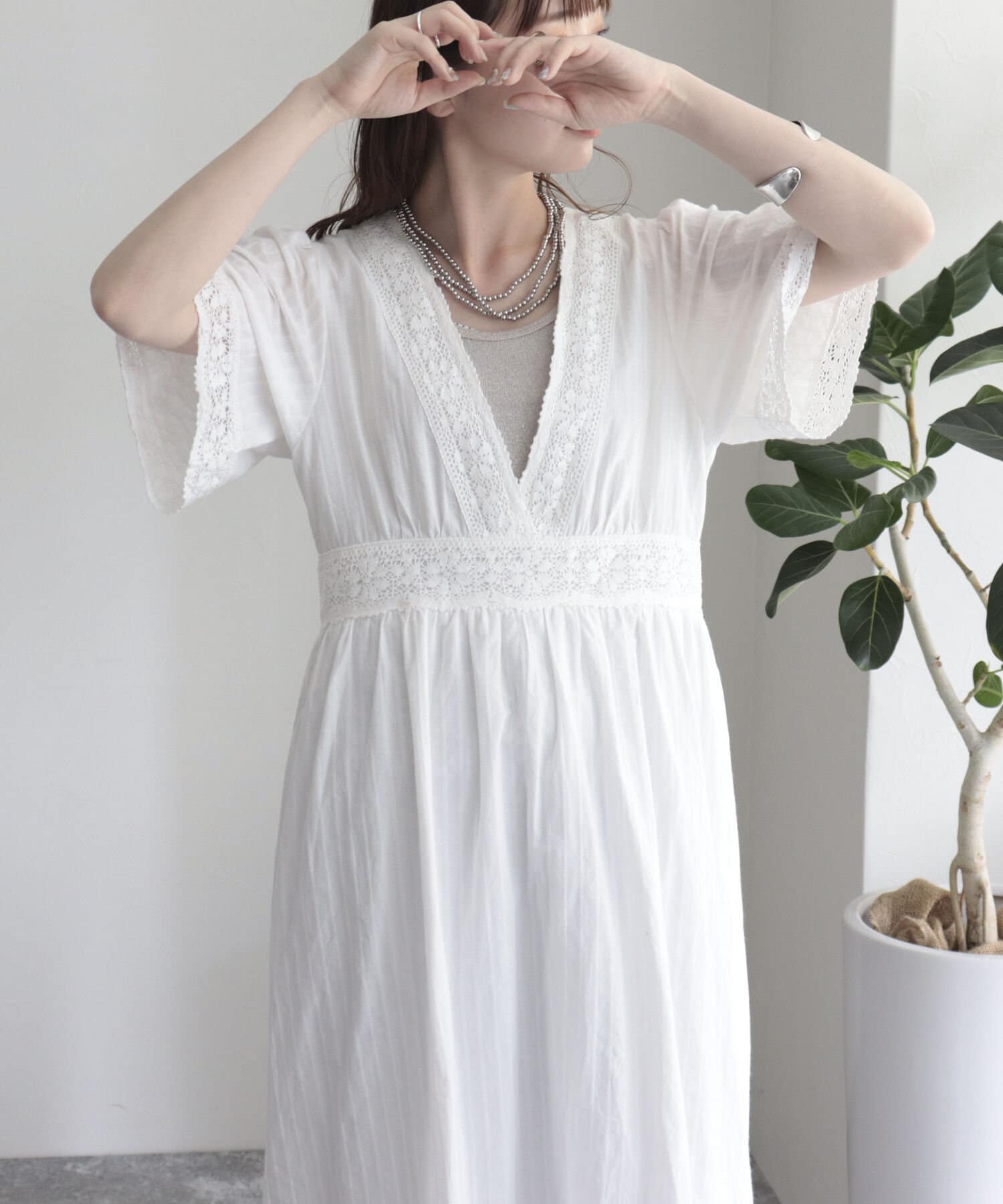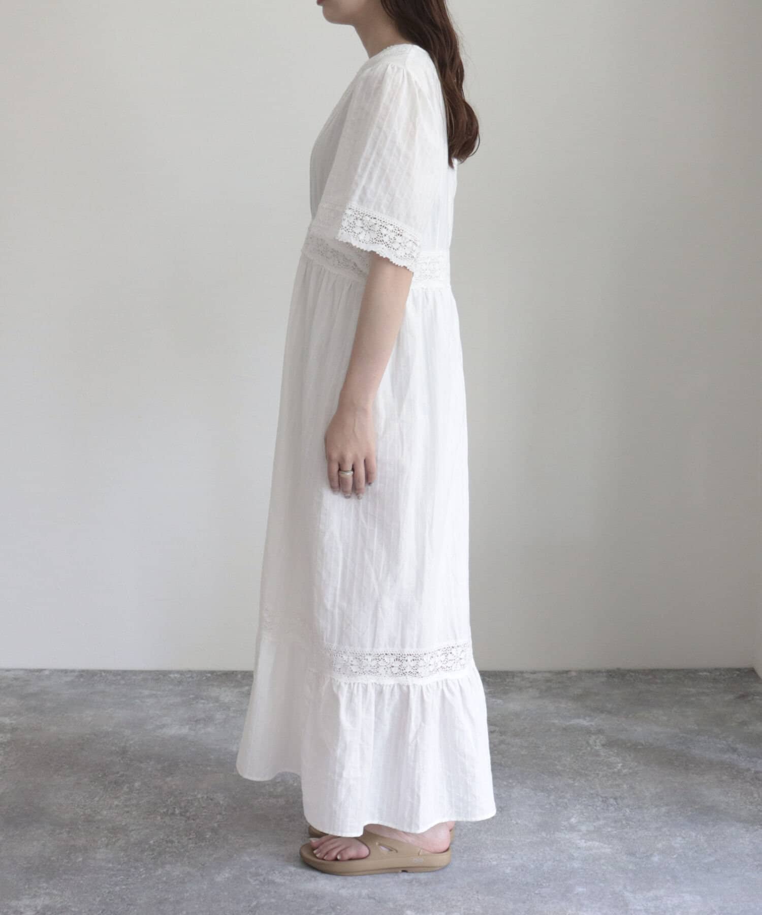 ・コットンのドビー素材とレースを組み合わせたヴィンテージ風ワンピース