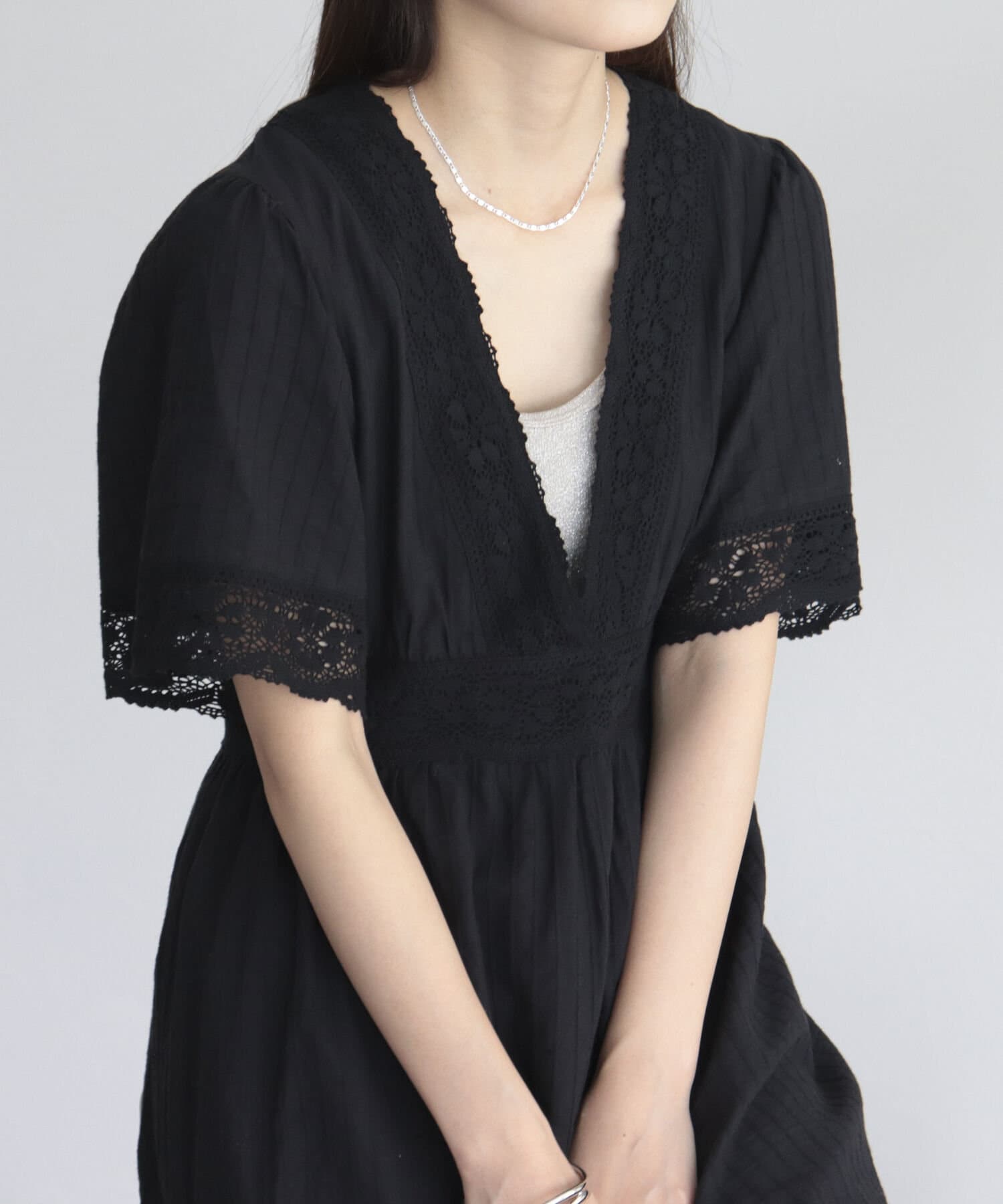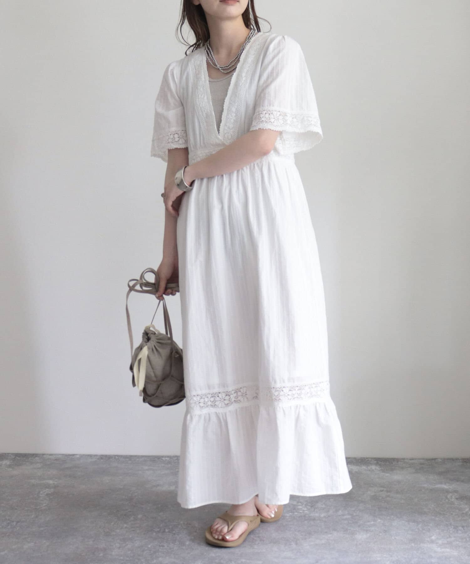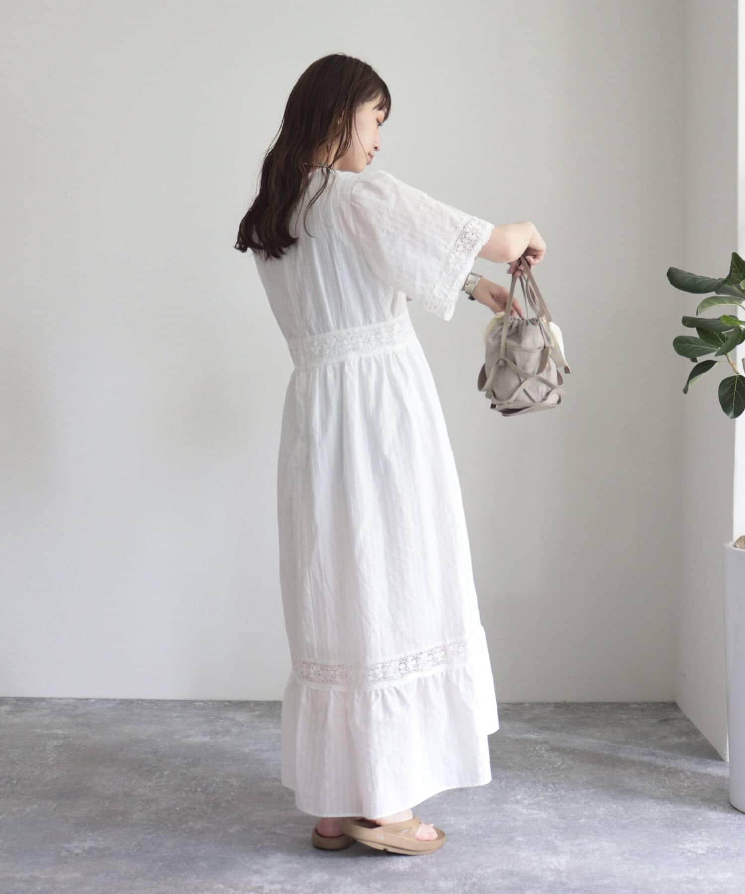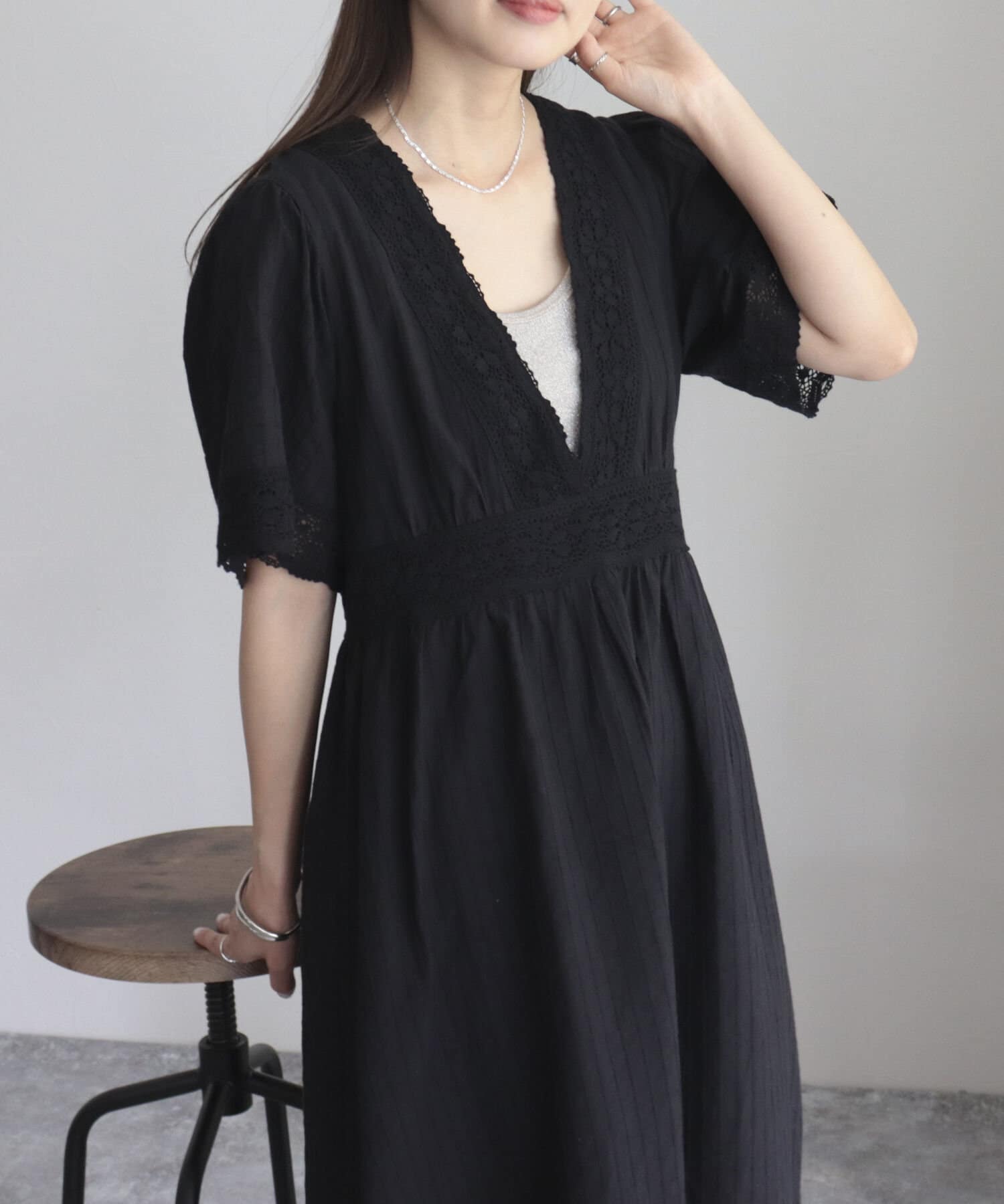 ・コットンのドビー素材とレースを組み合わせたヴィンテージ風ワンピース