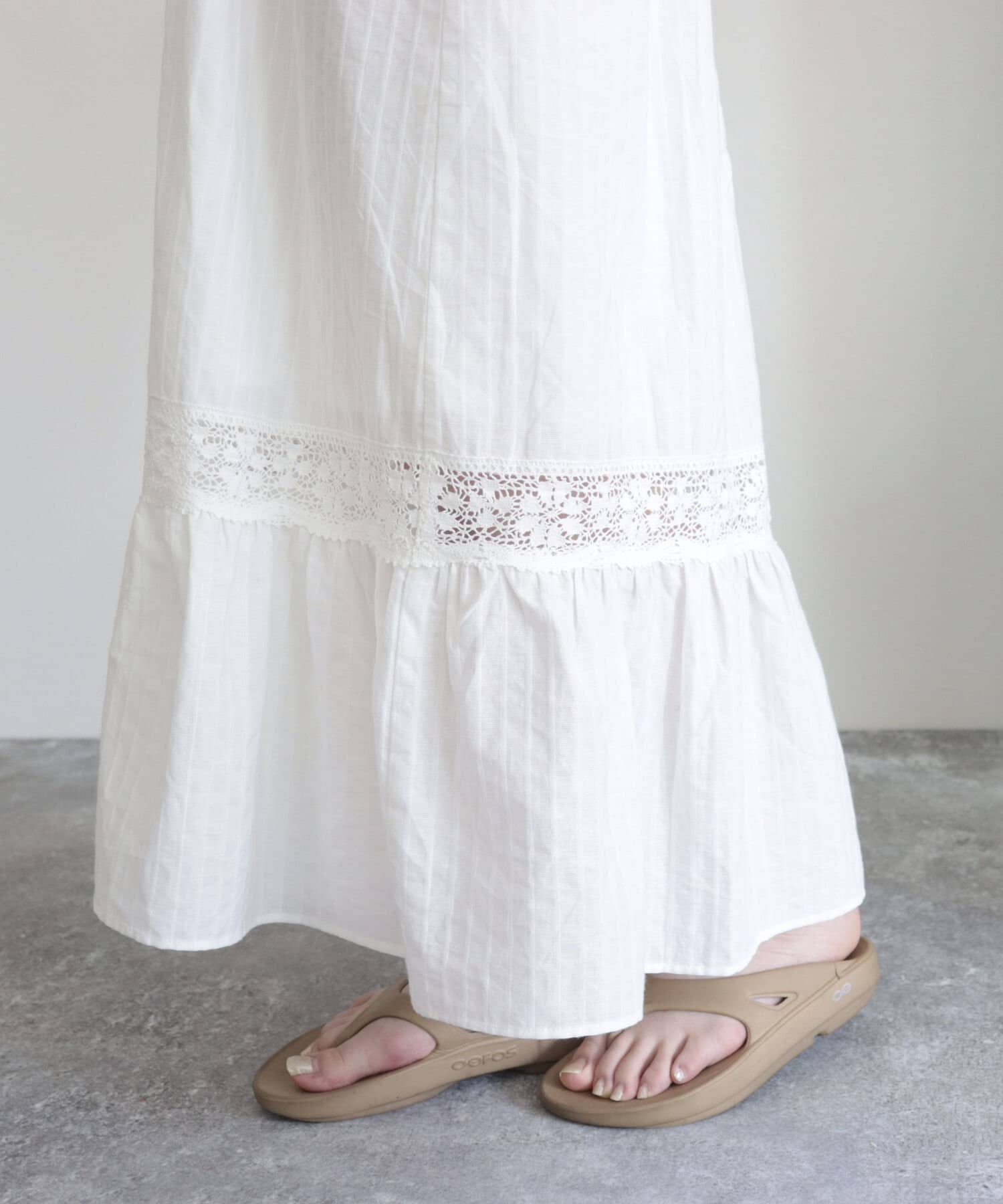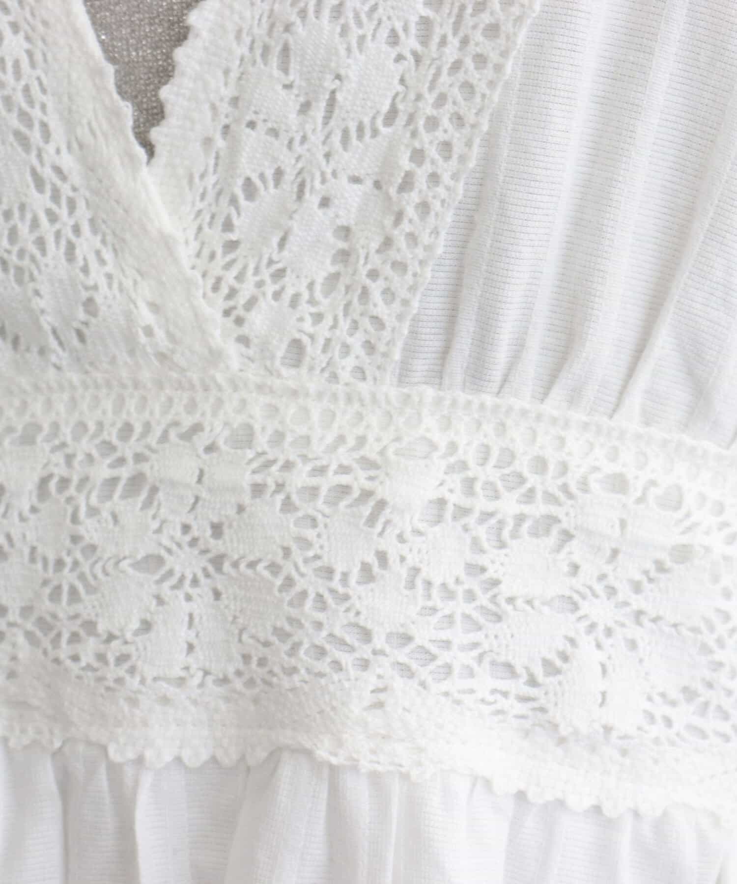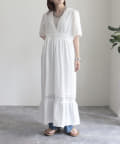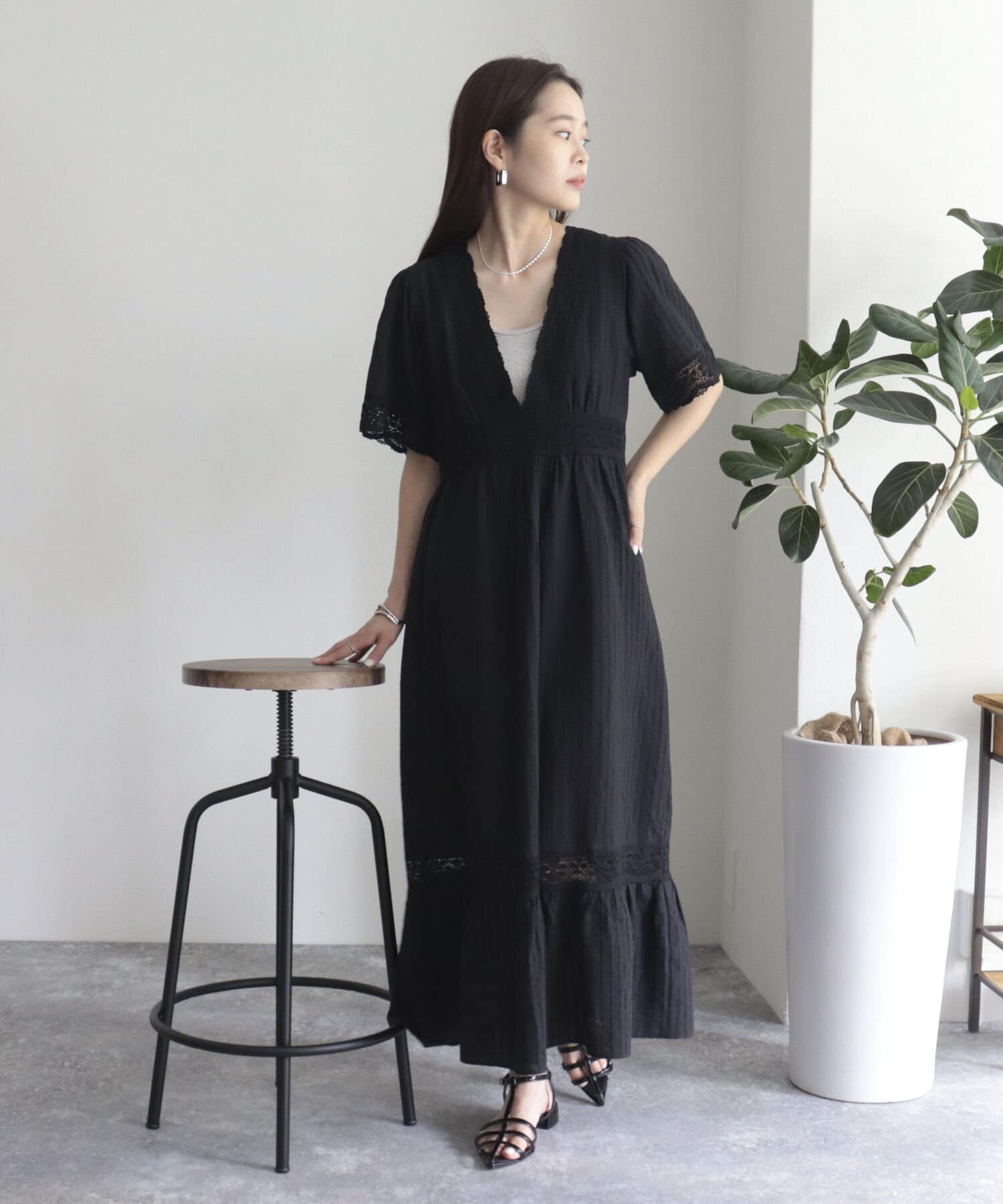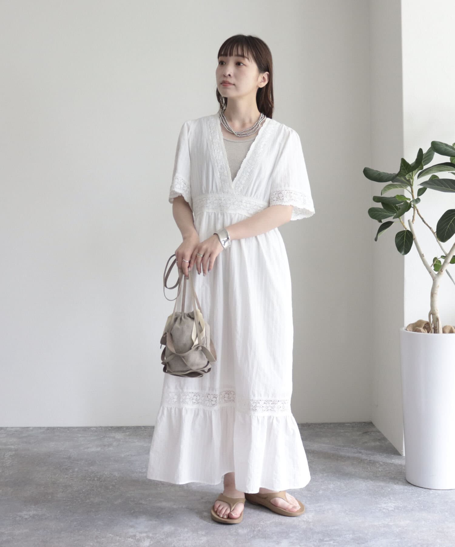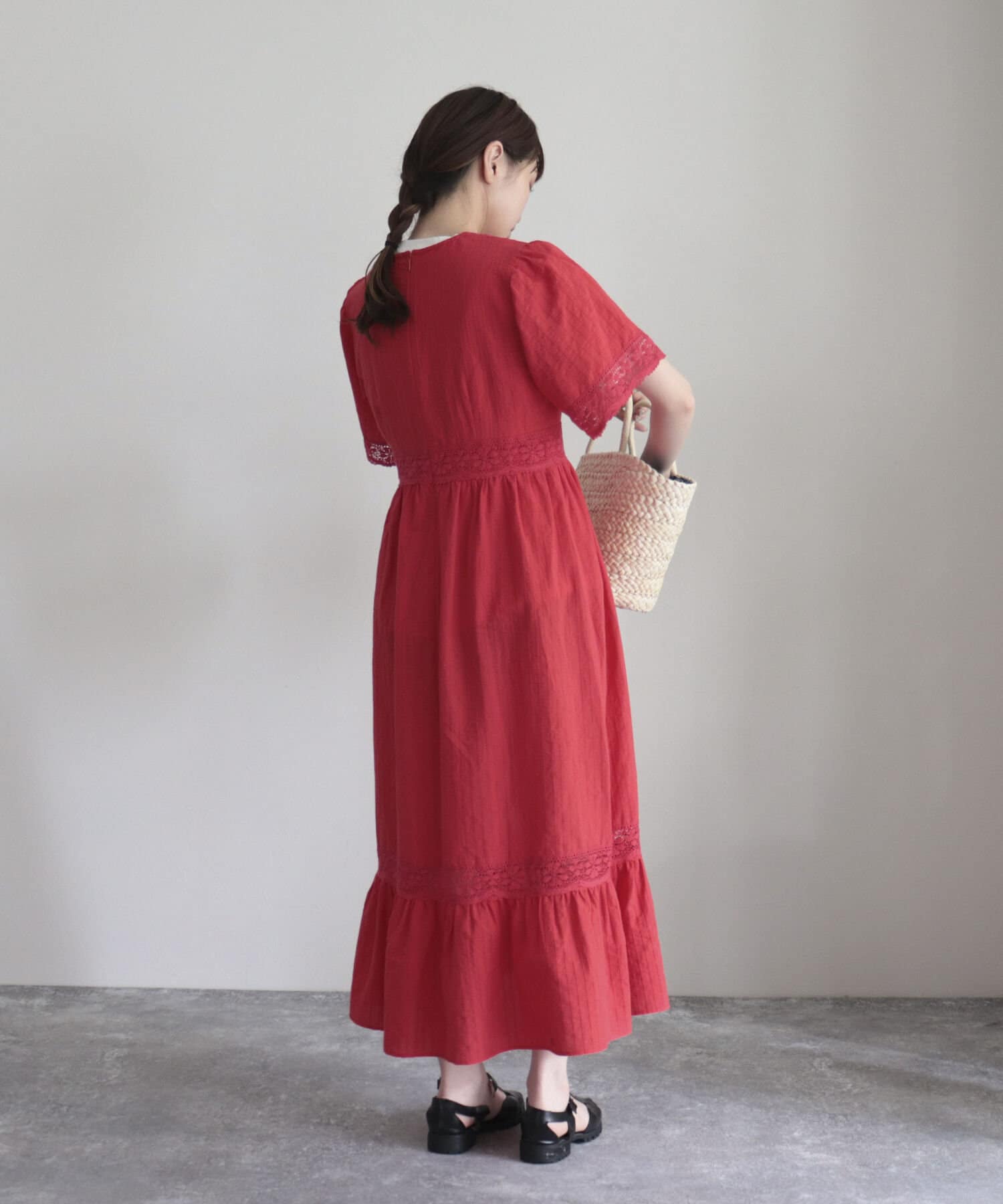 ・コットンのドビー素材とレースを組み合わせたヴィンテージ風ワンピース