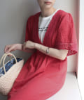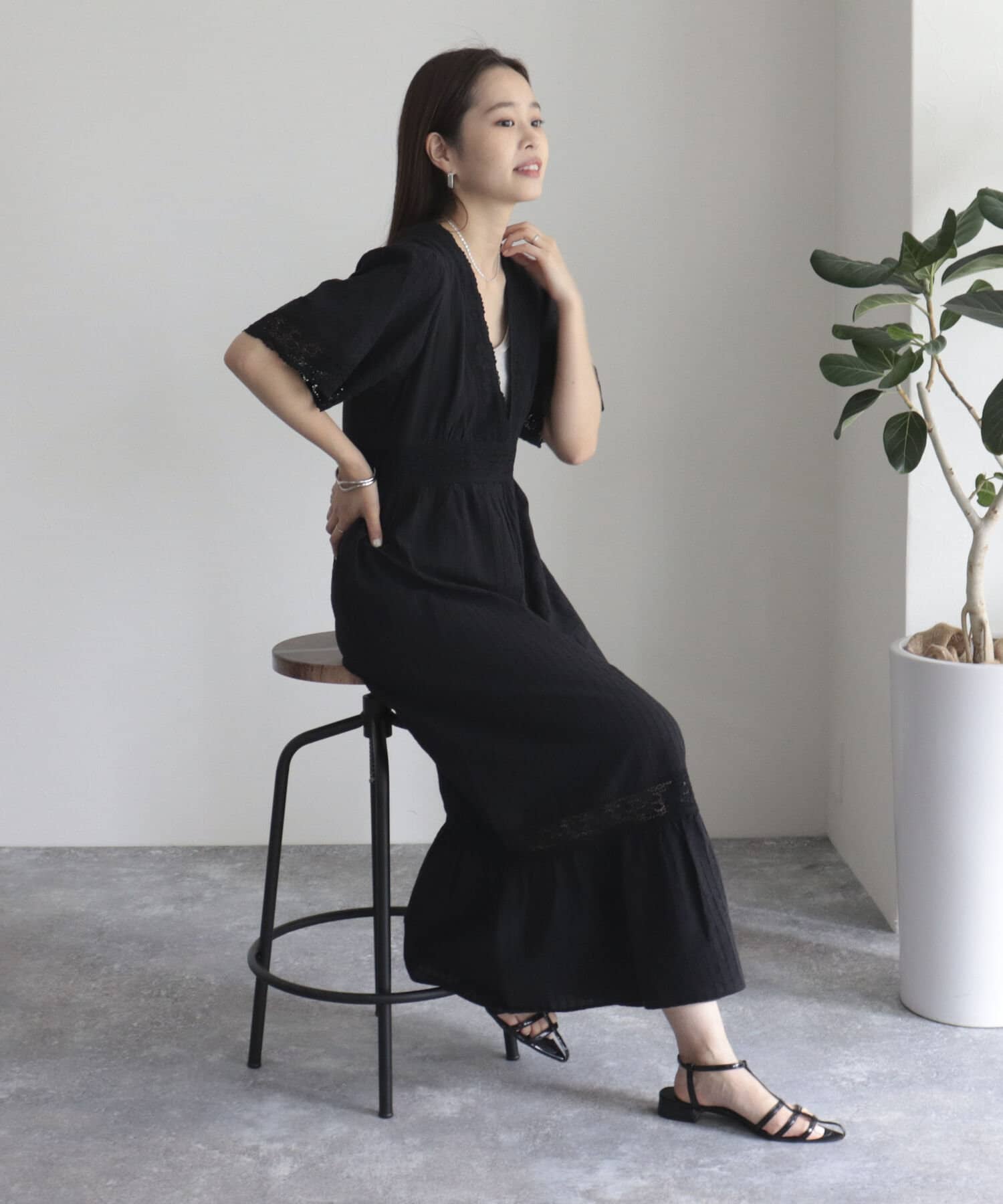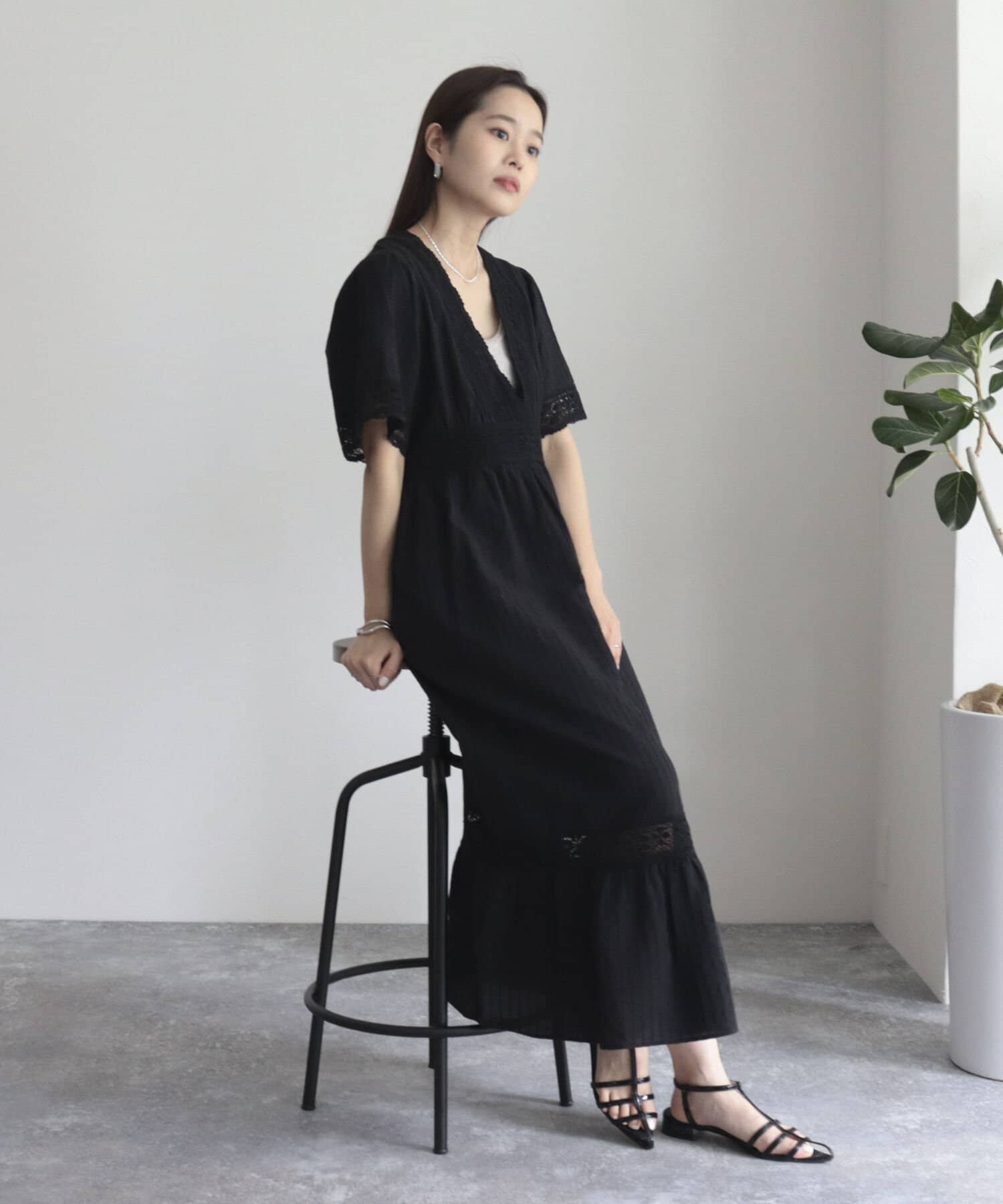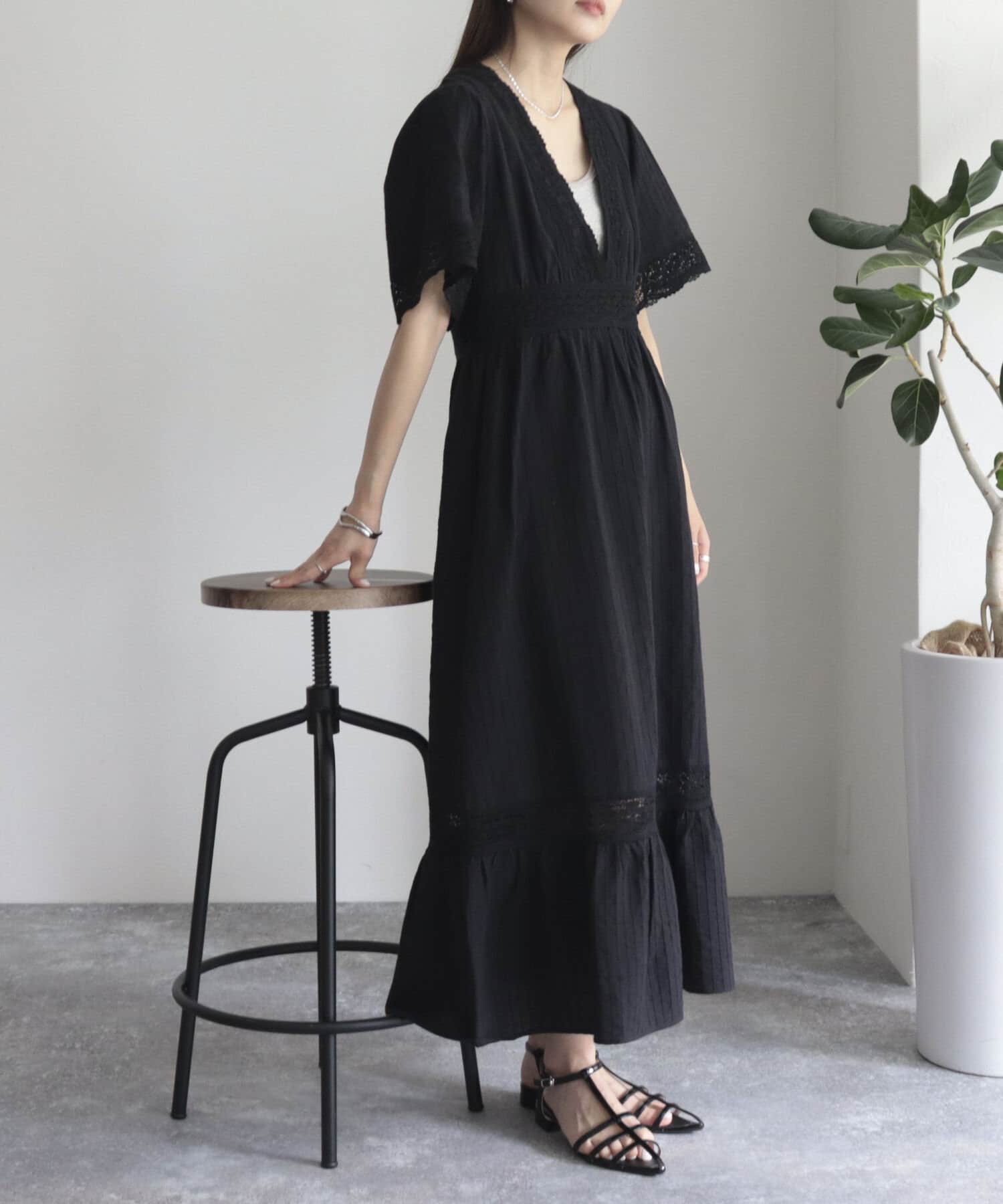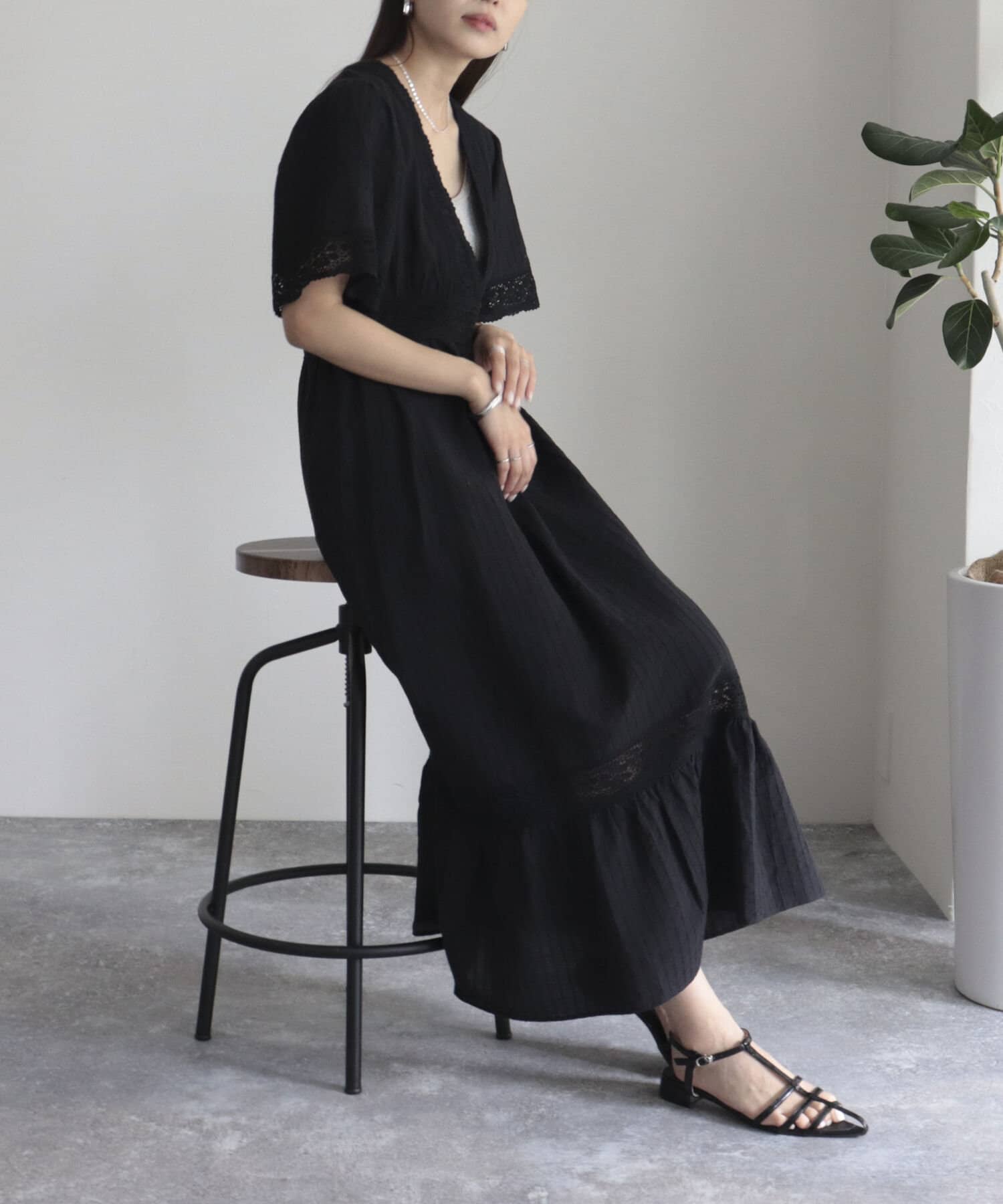 ・コットンのドビー素材とレースを組み合わせたヴィンテージ風ワンピース