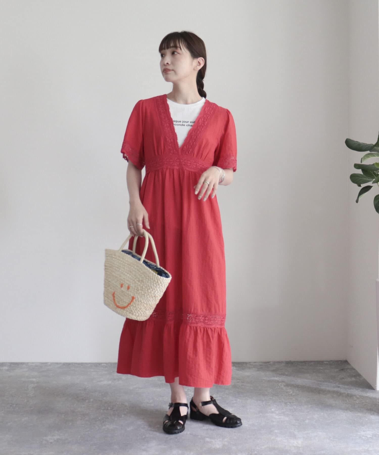 コットン素材感が柔らかな印象を与えてくれるワンピース