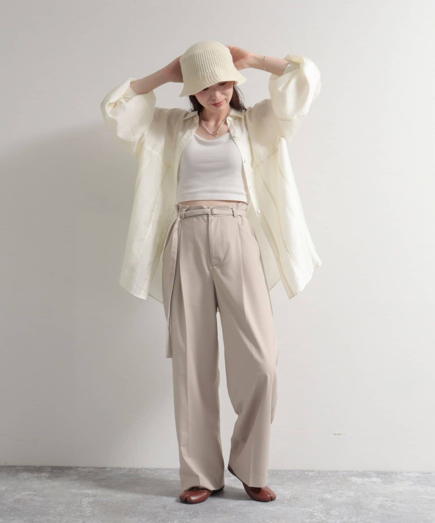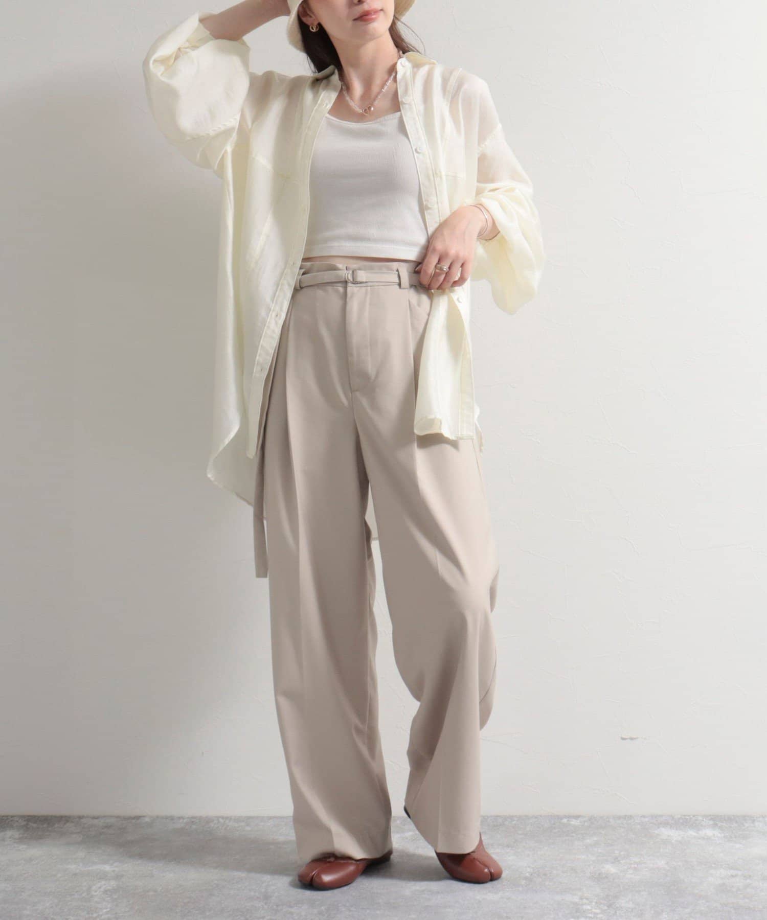 ・やや落ち感があり上品な印象で女性らしい着こなしにもおすすめのアイテムです