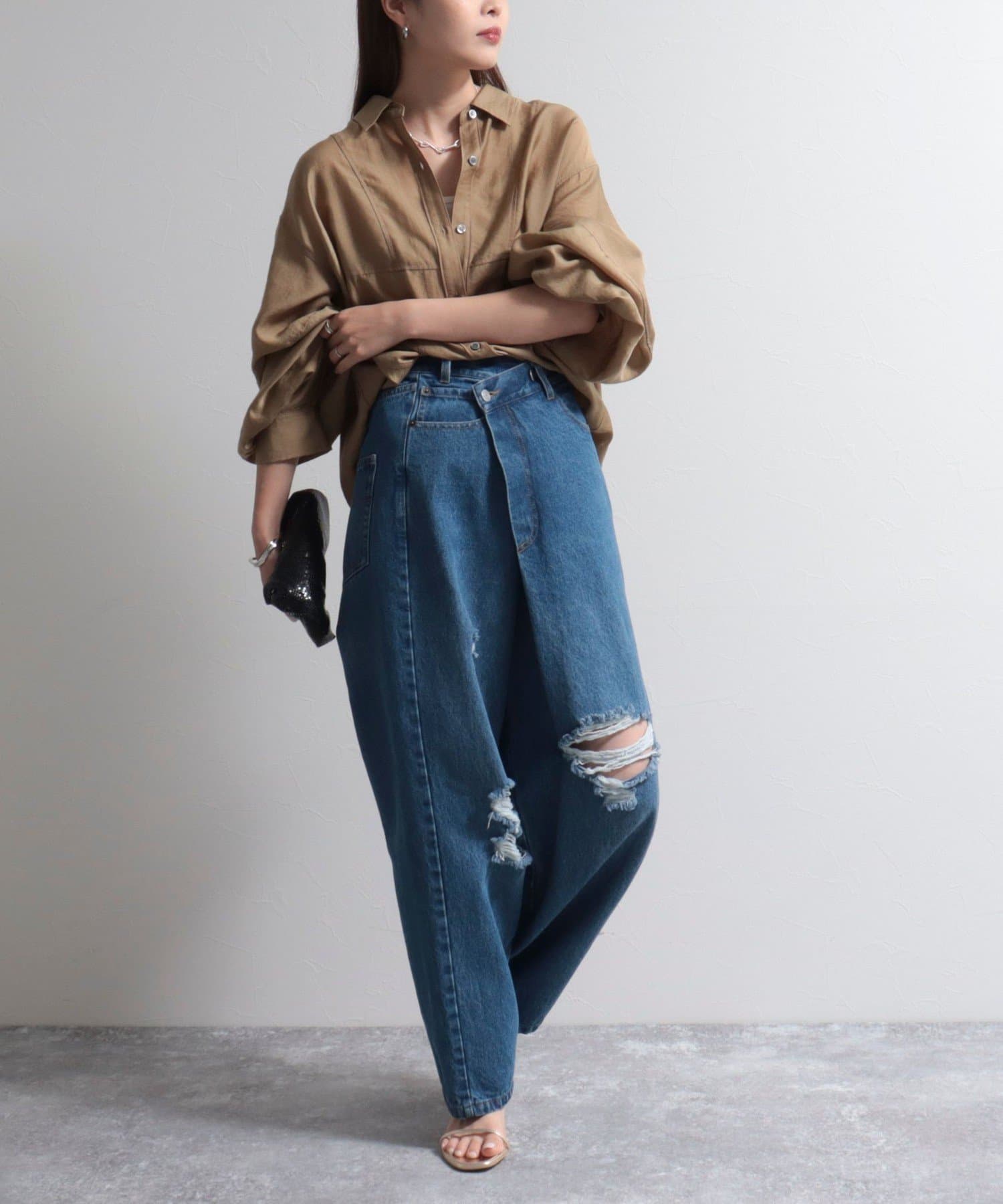 ・パンツやワンピースと合わせて、襟を抜いた女性らしい着こなしがおすすめです