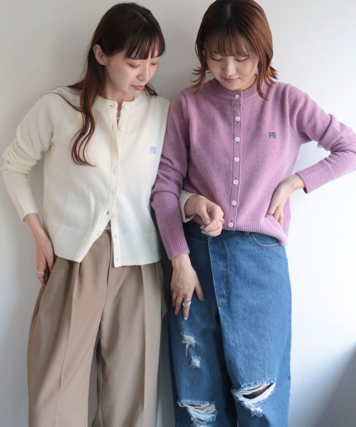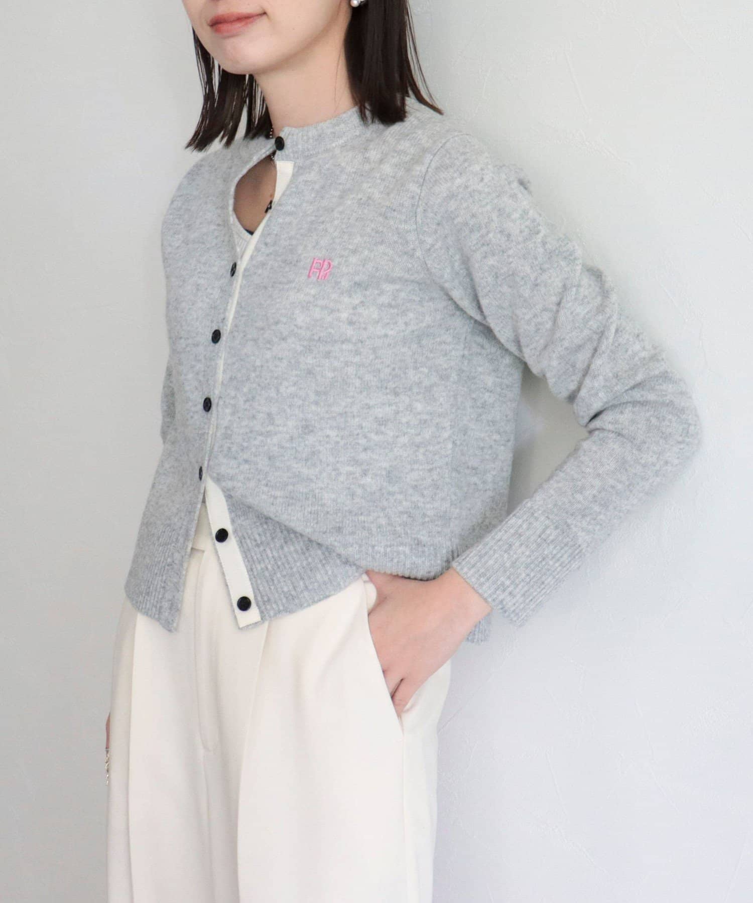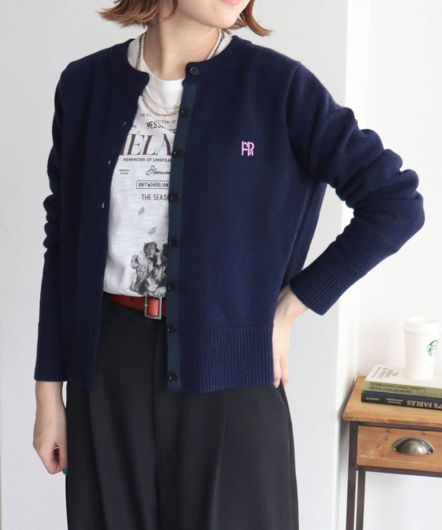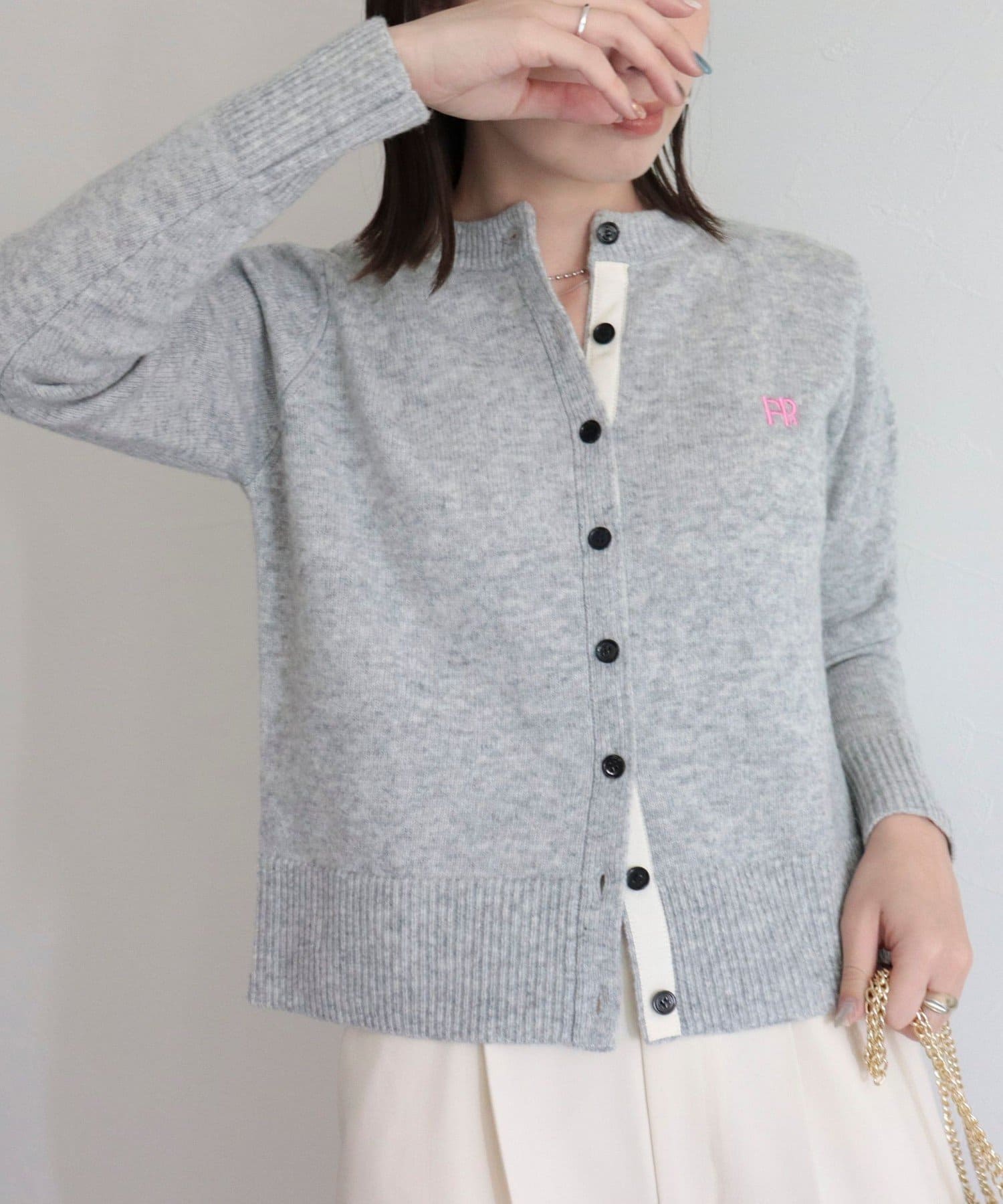 ・夏の半袖カーディガンでもおなじみFR刺繍入りのニットカーディガン