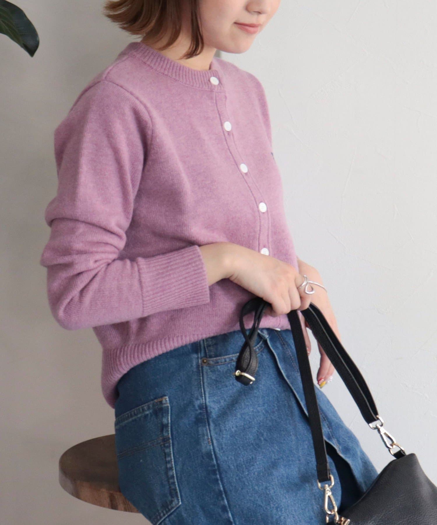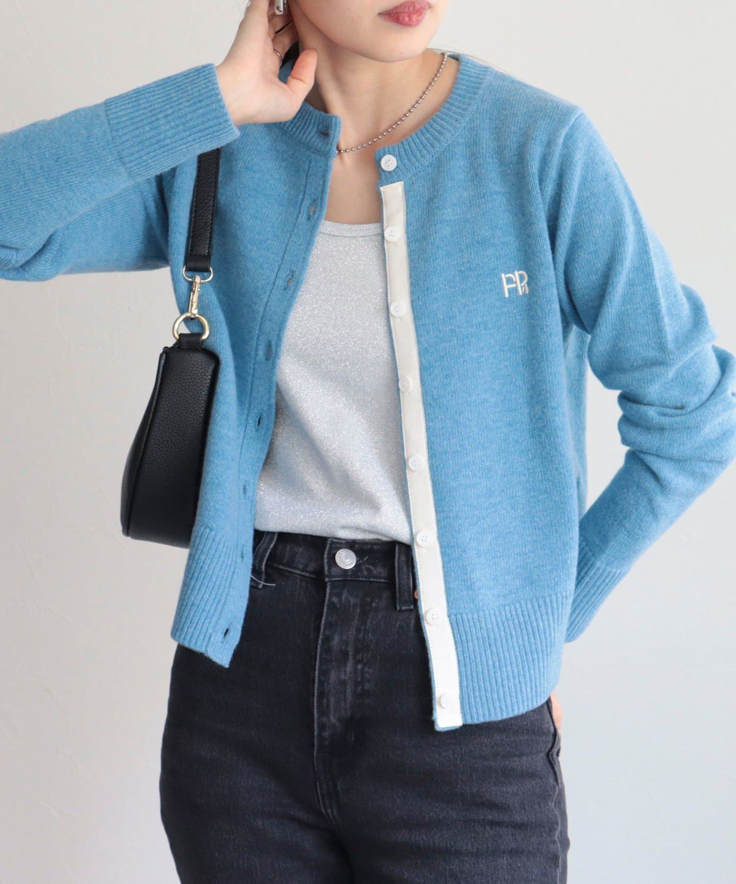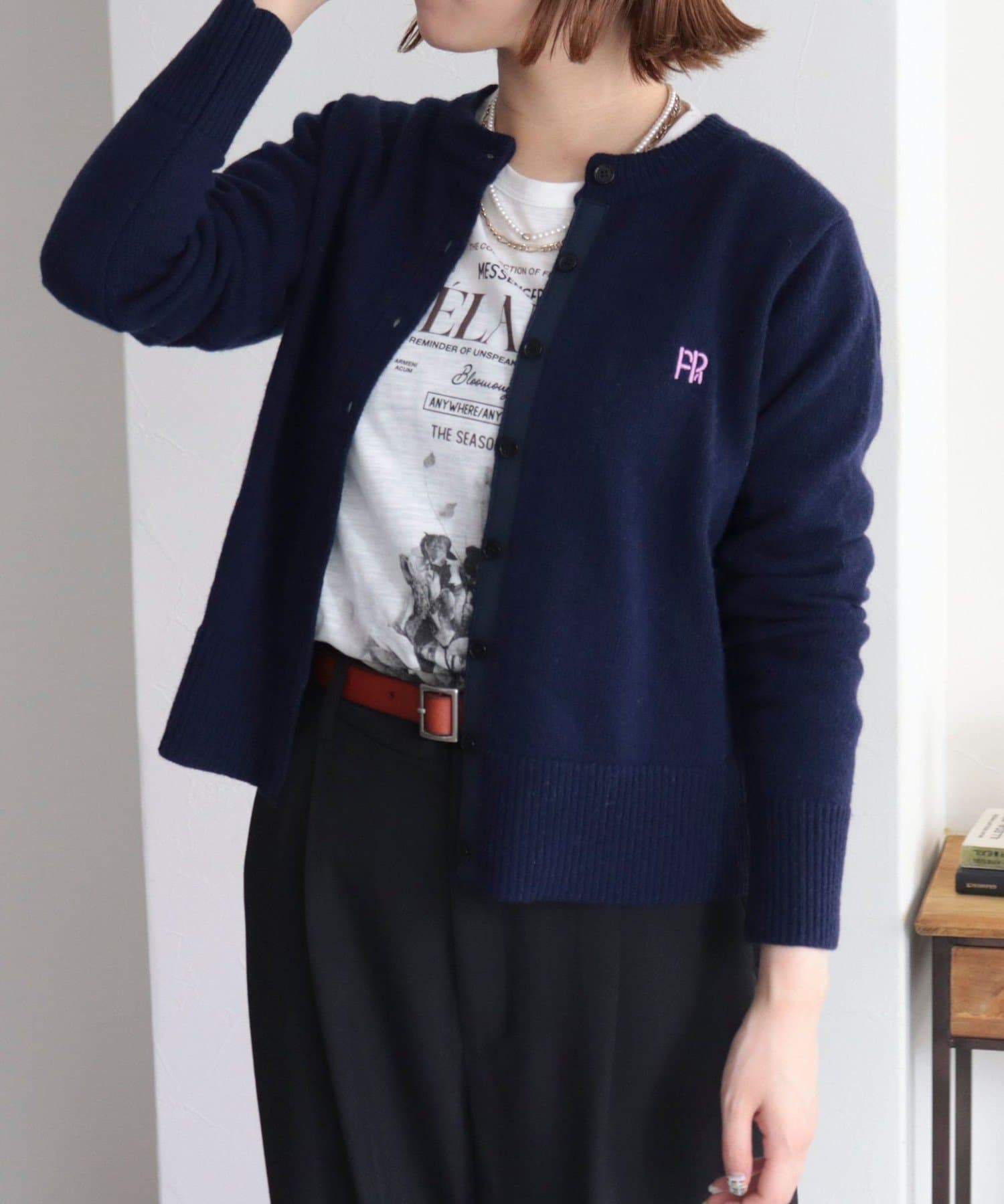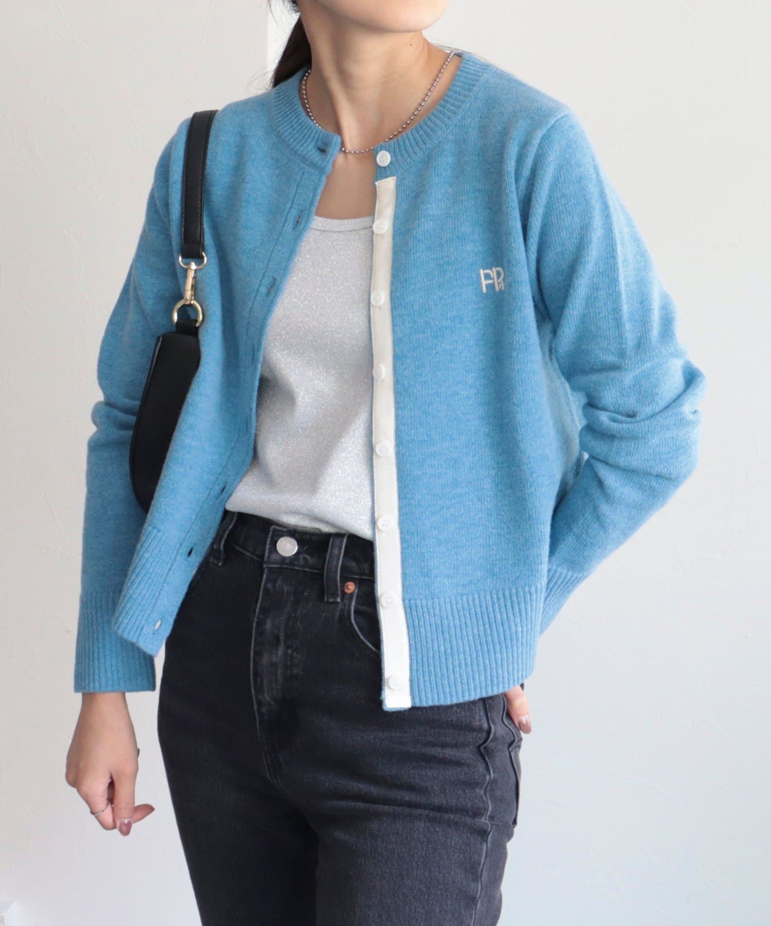 ・夏の半袖カーディガンでもおなじみFR刺繍入りのニットカーディガン
