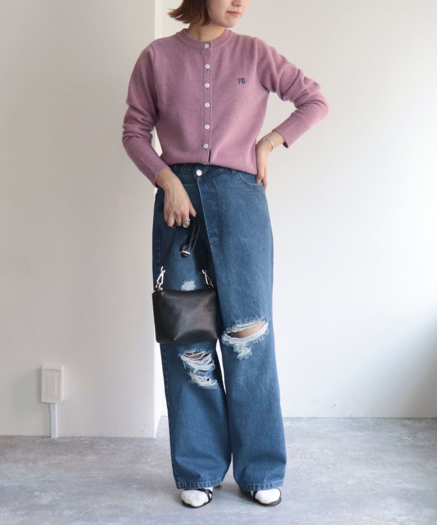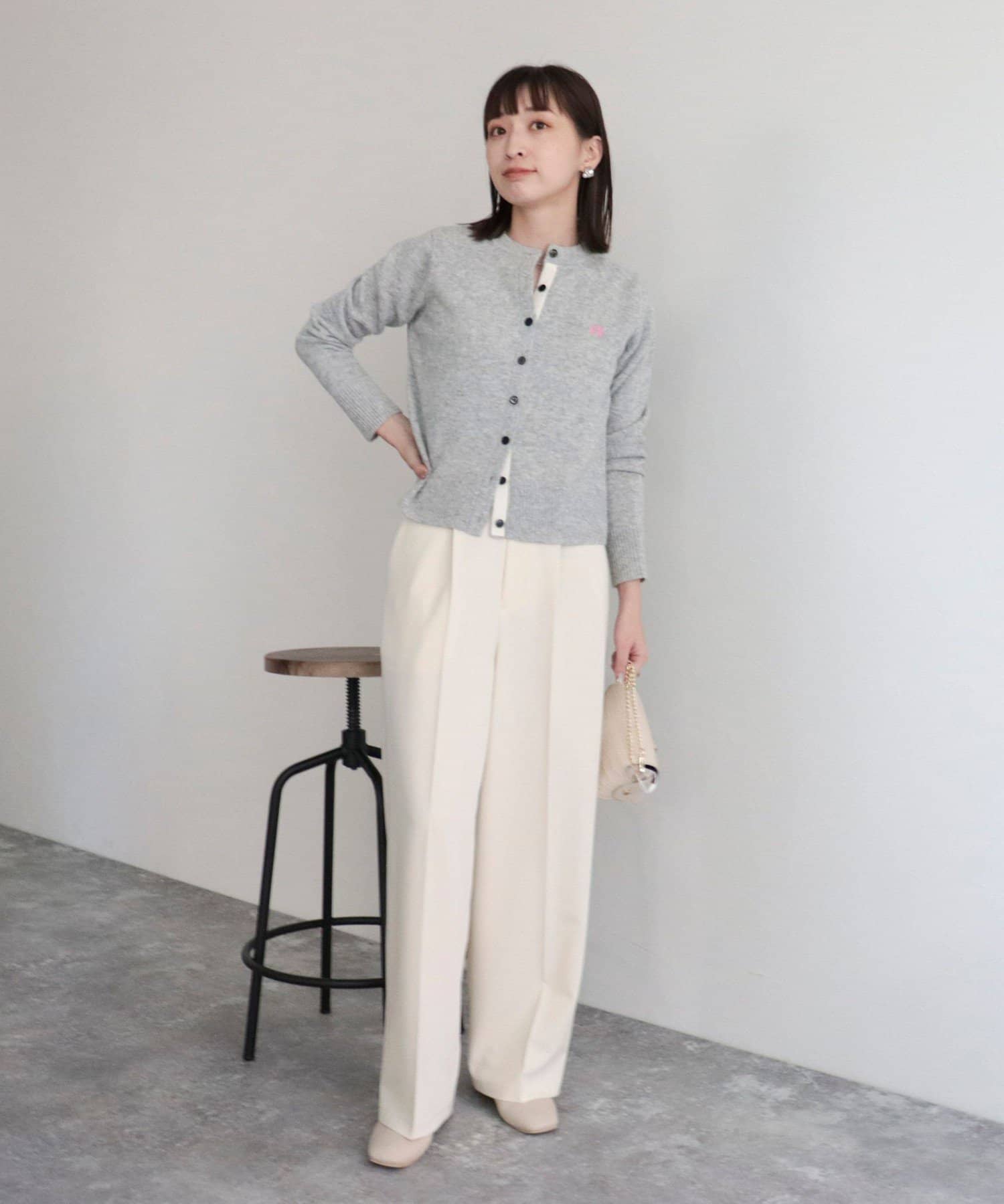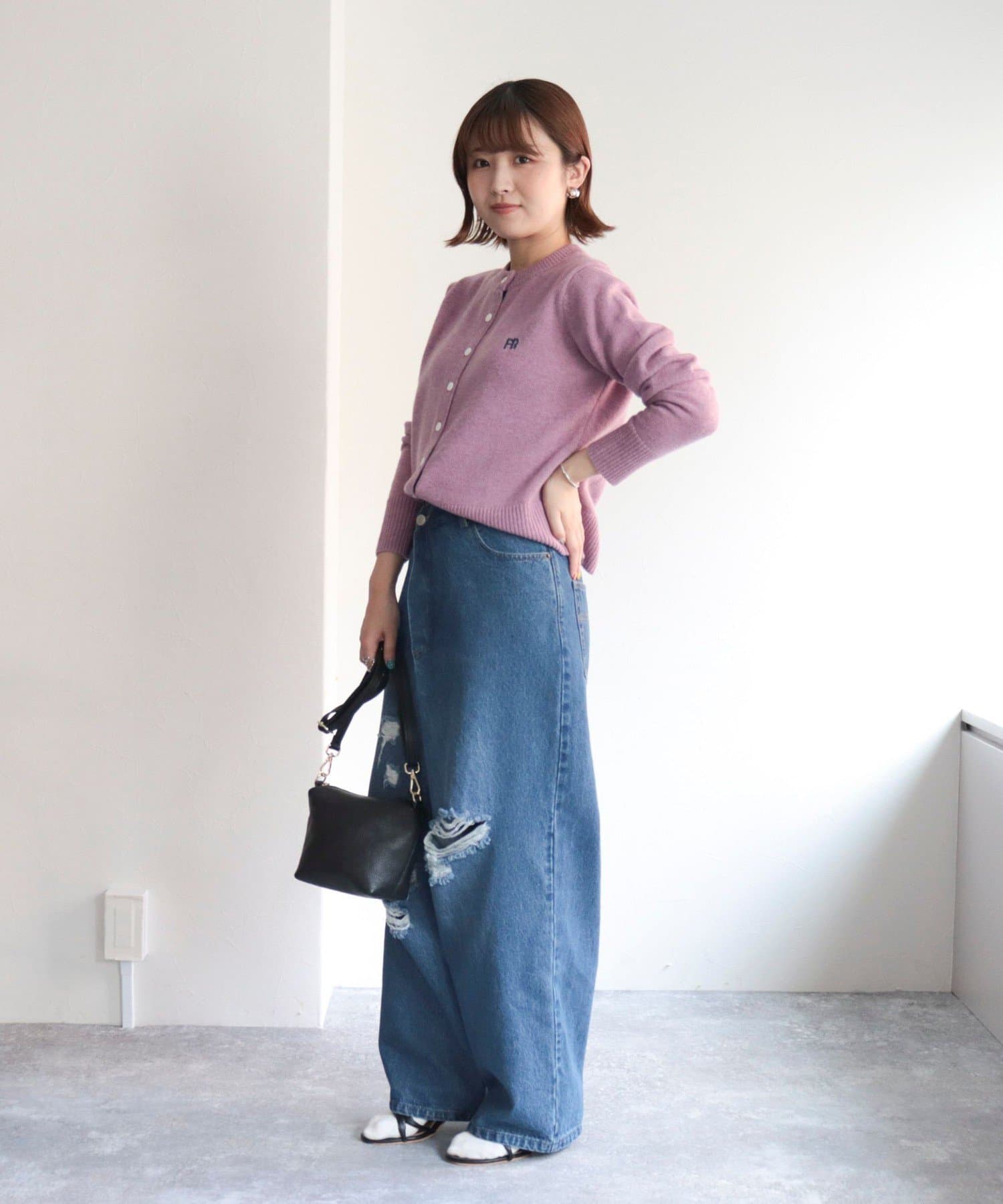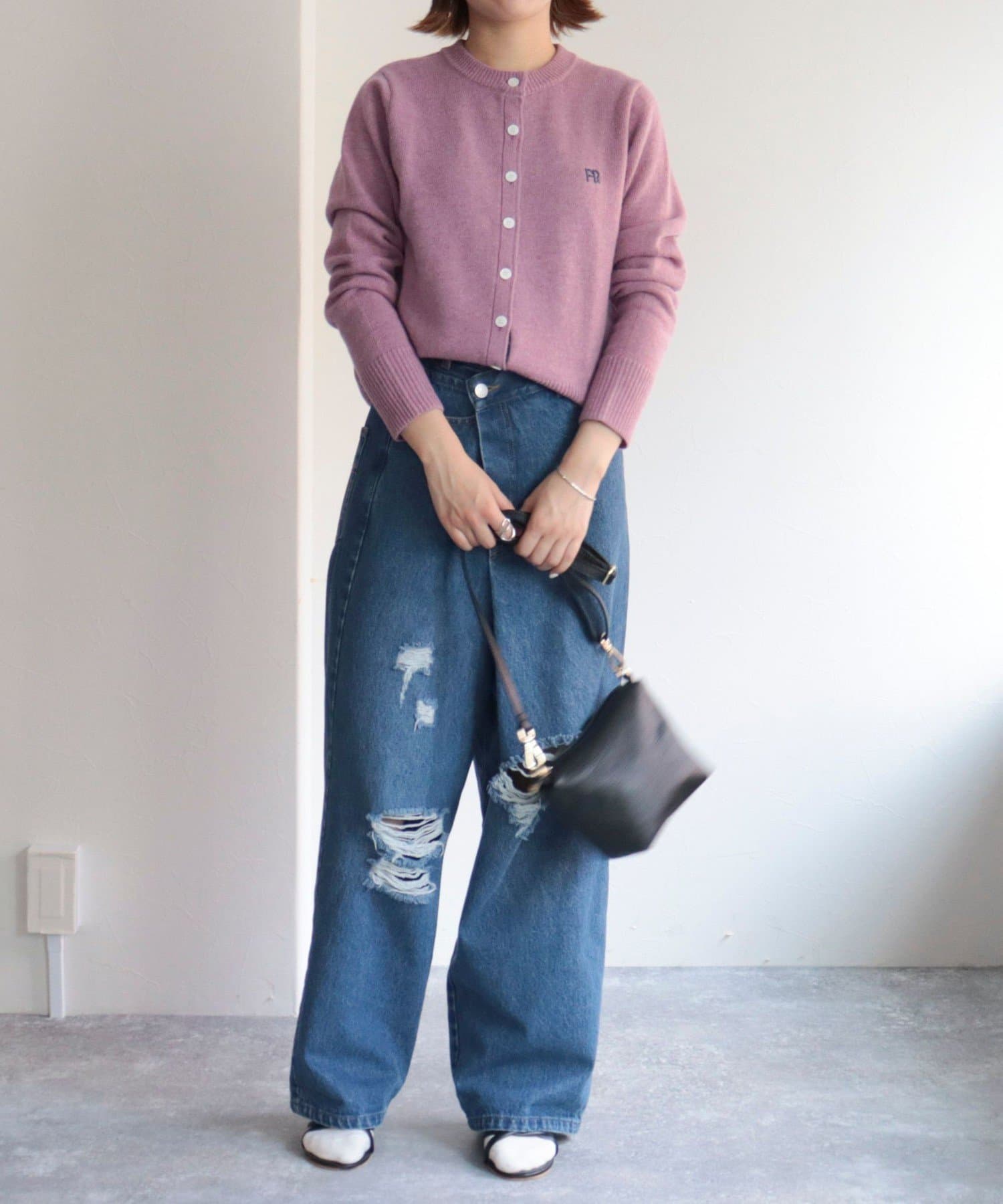 ・夏の半袖カーディガンでもおなじみFR刺繍入りのニットカーディガン