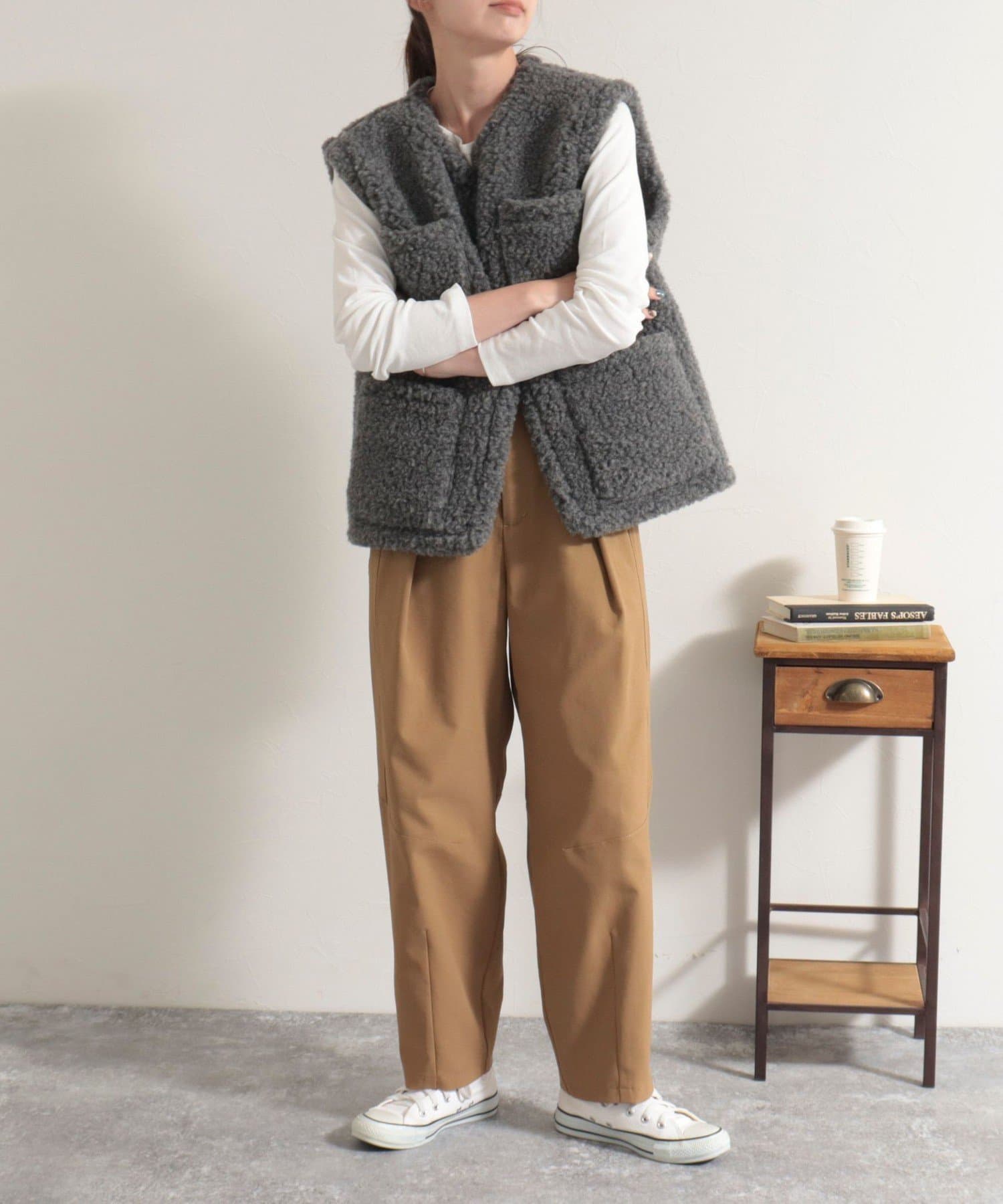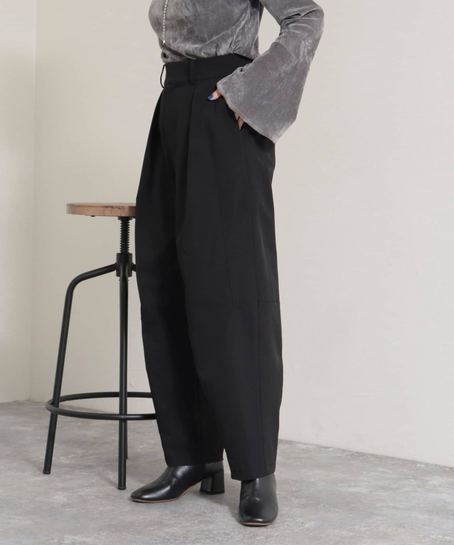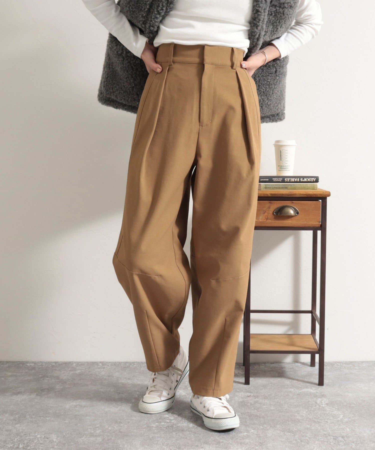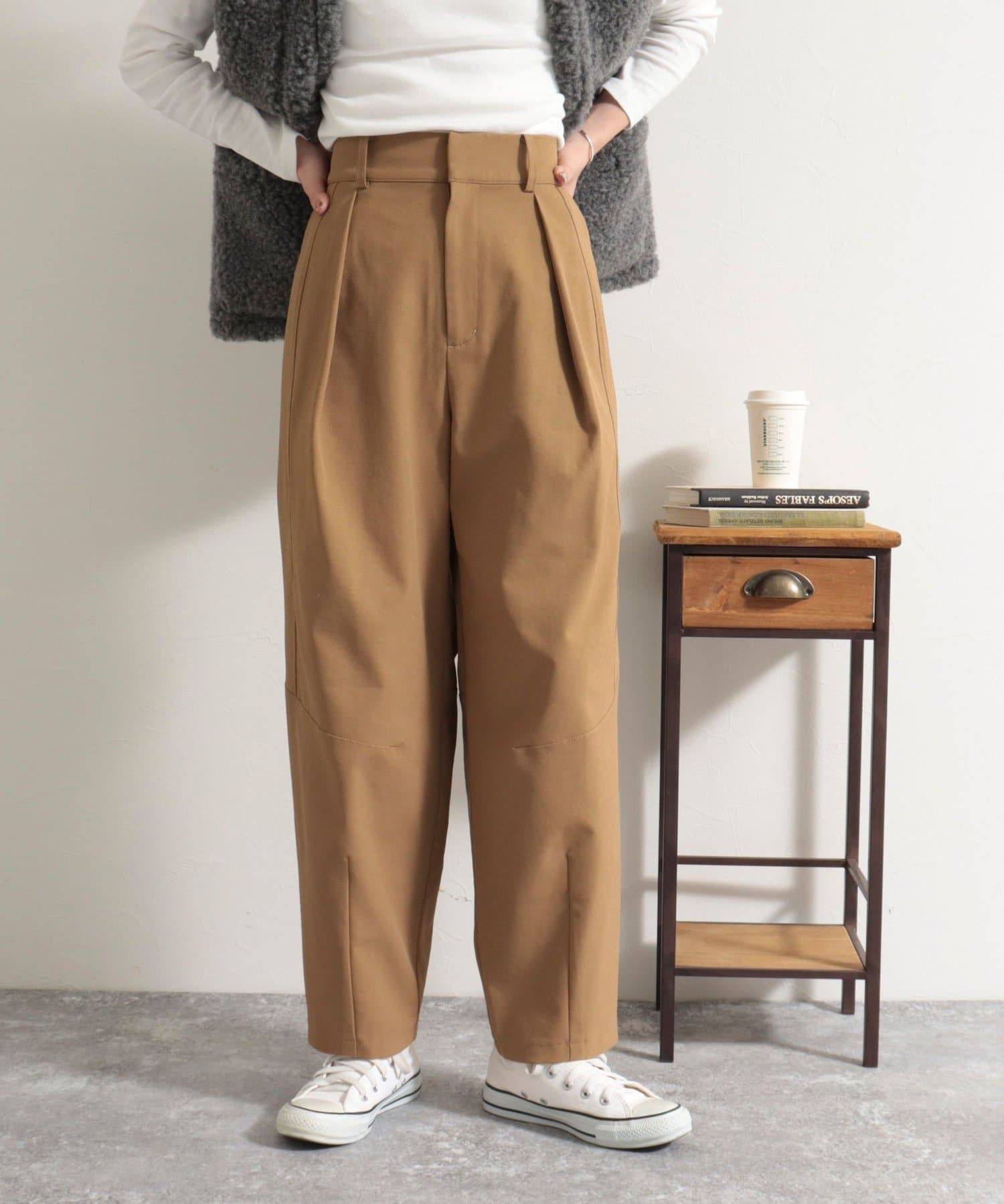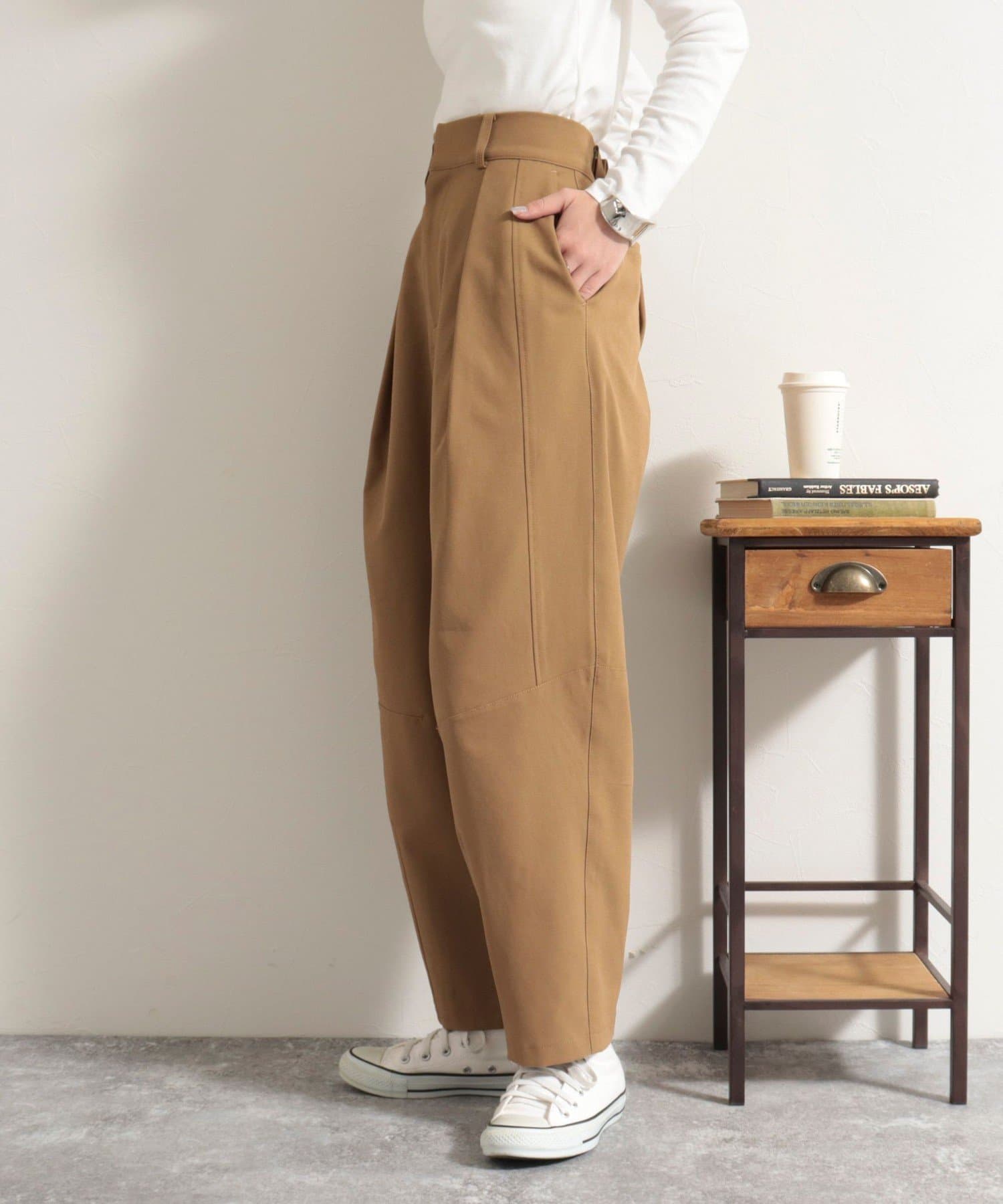 ・膝位置にタックを入れることで生まれるカーブデザインがポイントのアイテムです