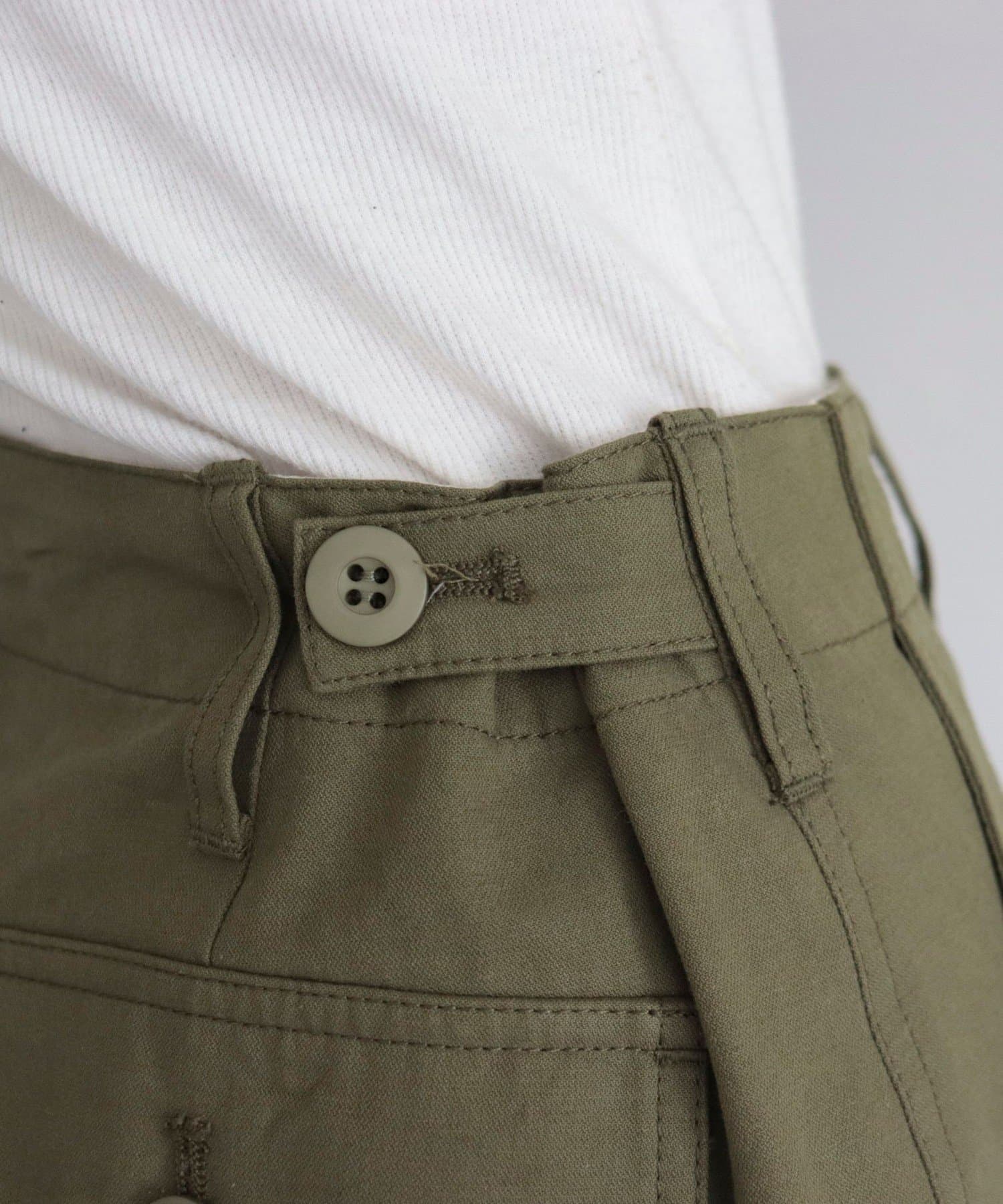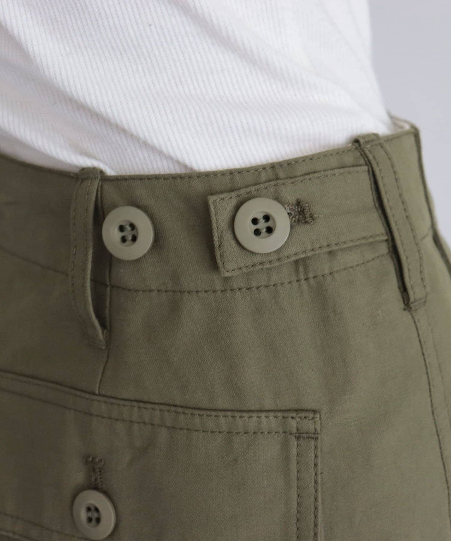 ・両サイドのボタンでウエストの調節が可能なのでベルトいらずなのもポイント