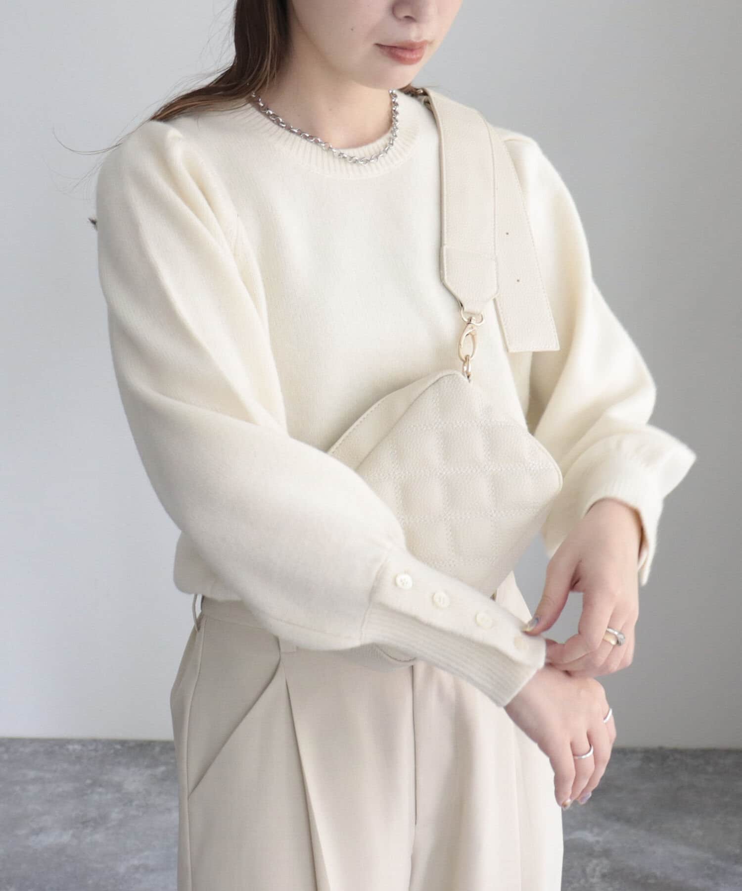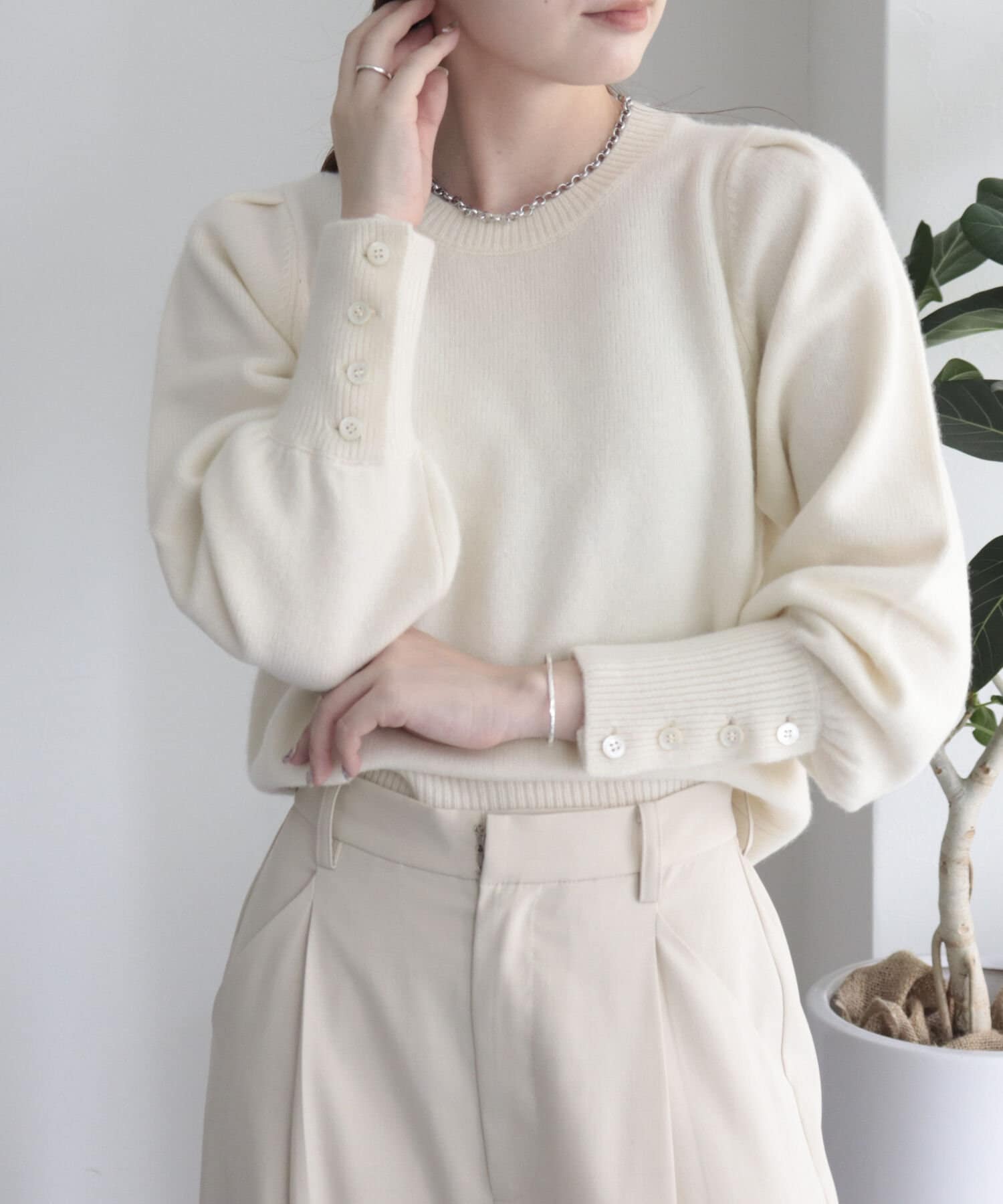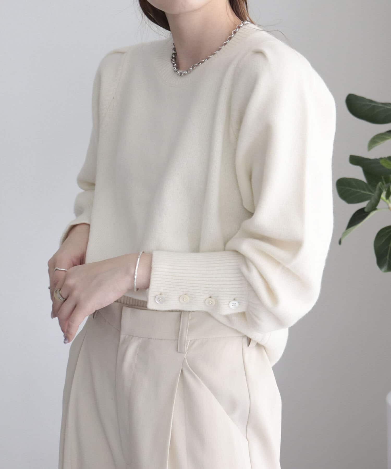 ・ゆったりとしたボリューム袖は、袖口のボタンがアクセントに。ボタンを外すとデザインを変えて楽しめます