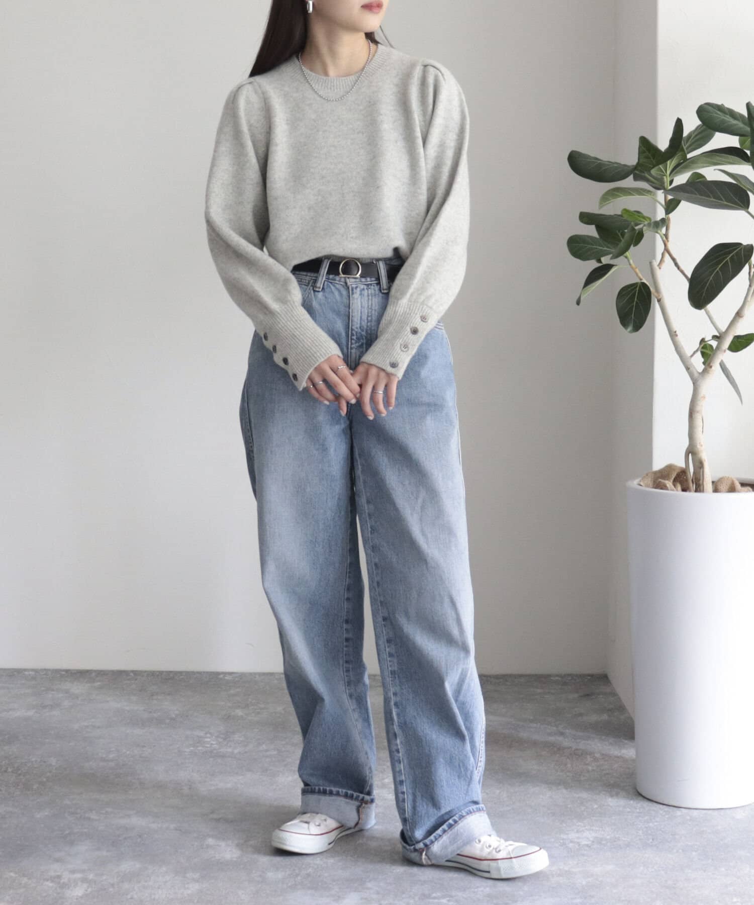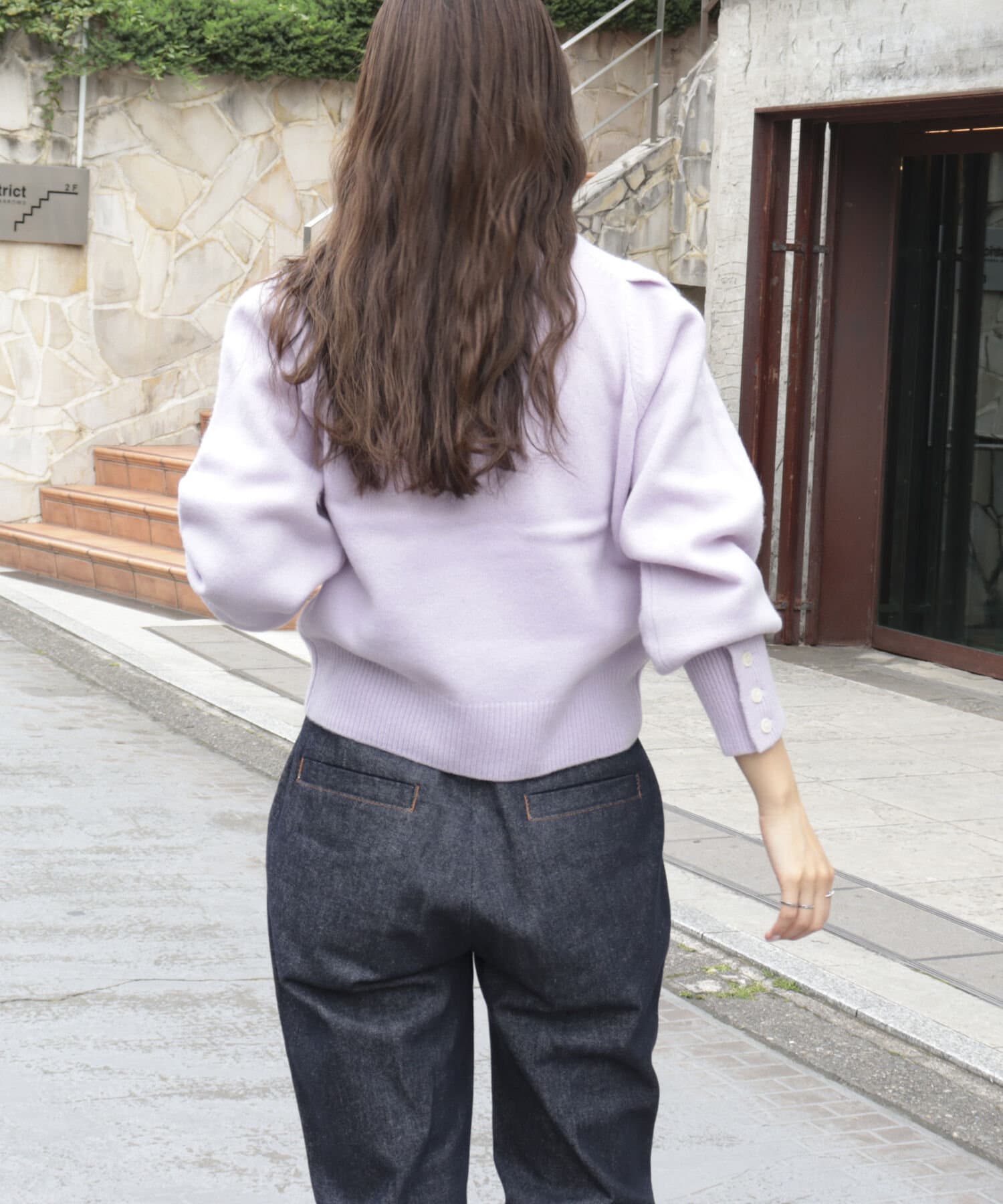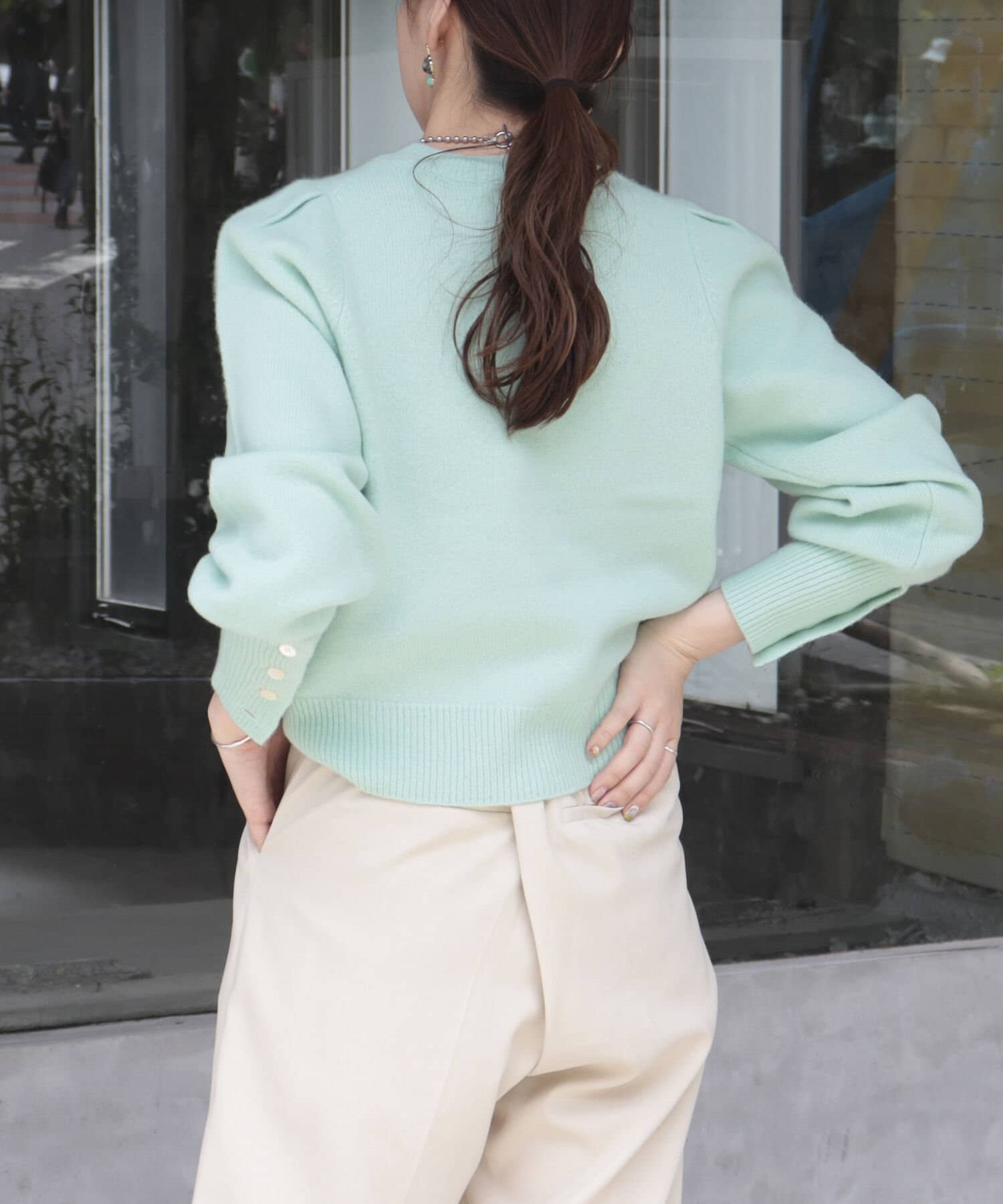 ・ゆったりとしたボリューム袖は、袖口のボタンがアクセントに。ボタンを外すとデザインを変えて楽しめます