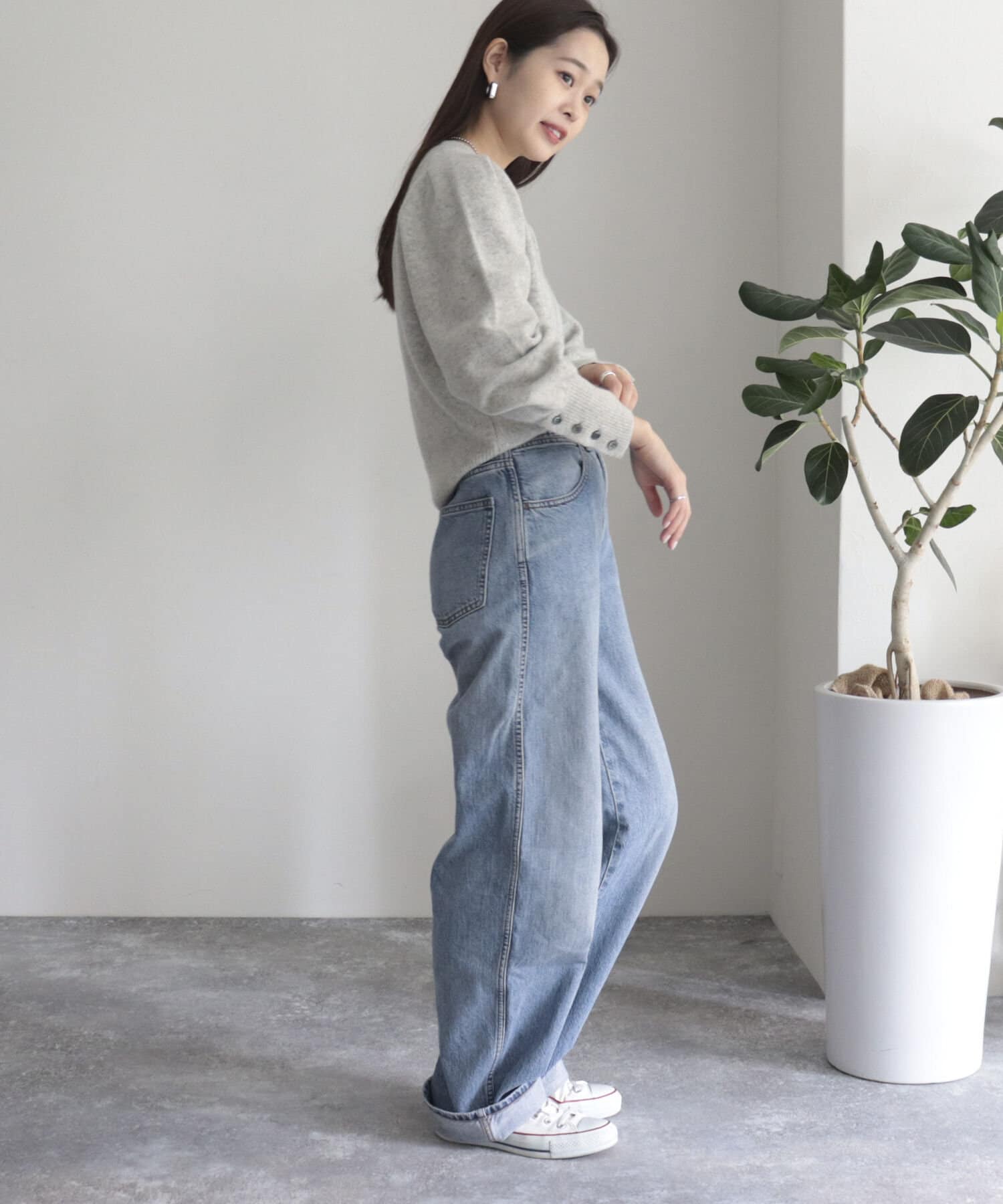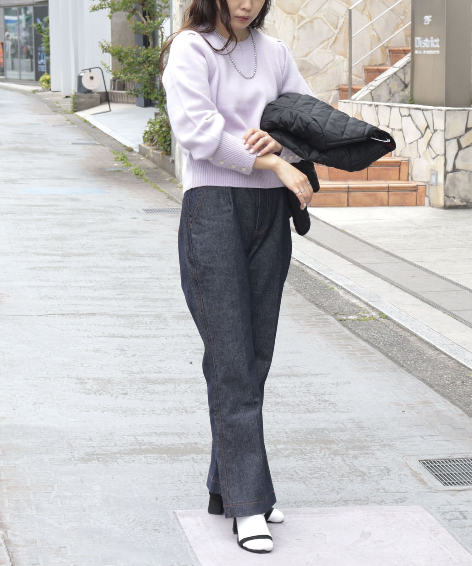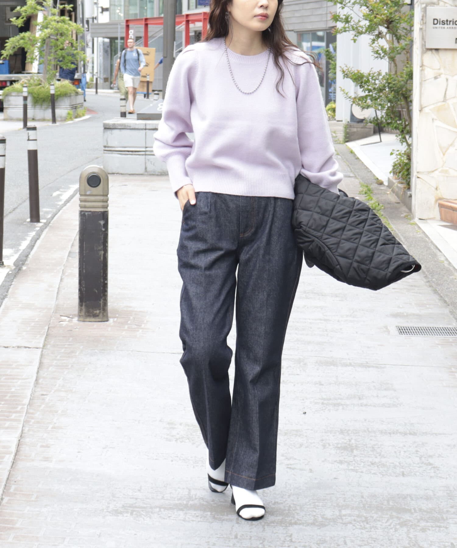 ・シンプルなデザインなのでカジュアルなデニムからキレイ目なスカートまで、幅広いコーディネートに映える着回し力抜群のアイテムです